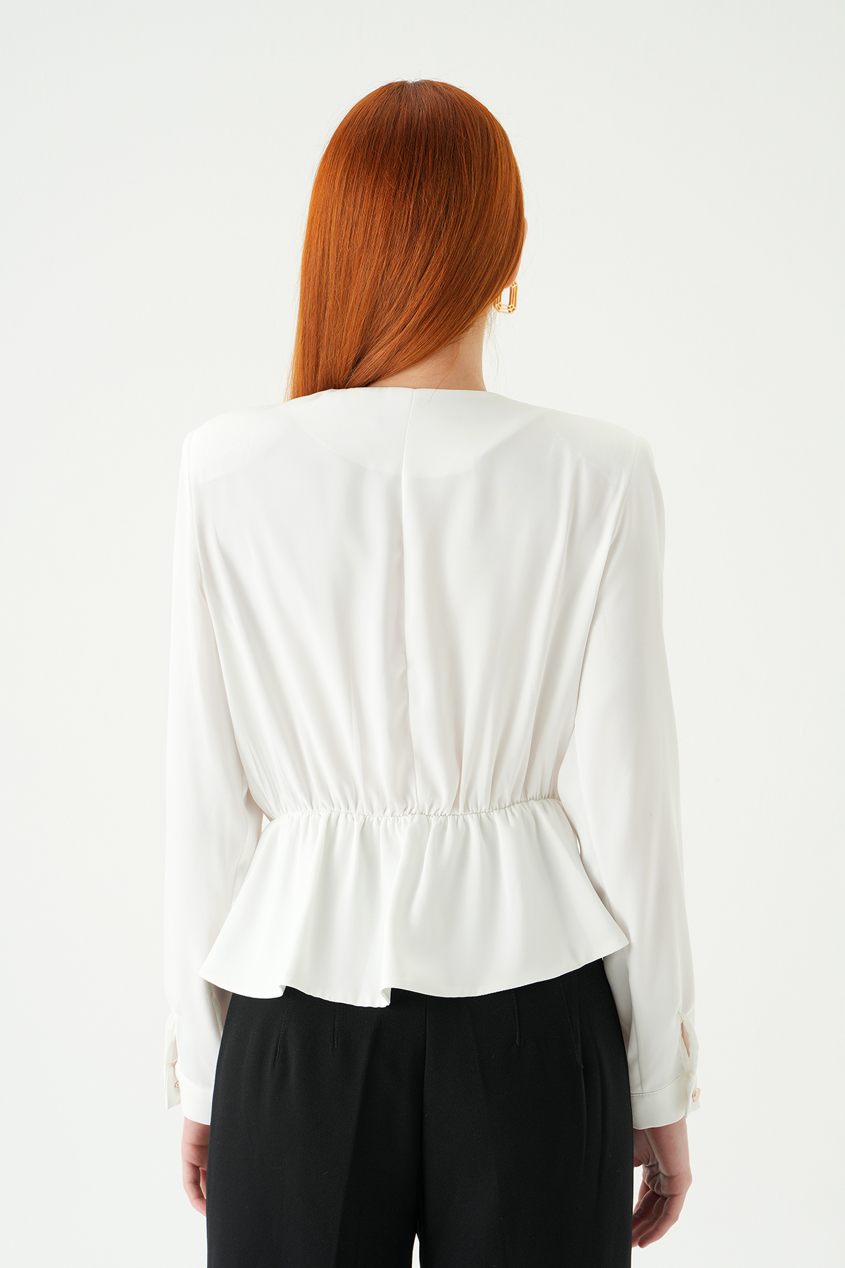 Beyaz V Yaka Sırt Detay Bluz 2827