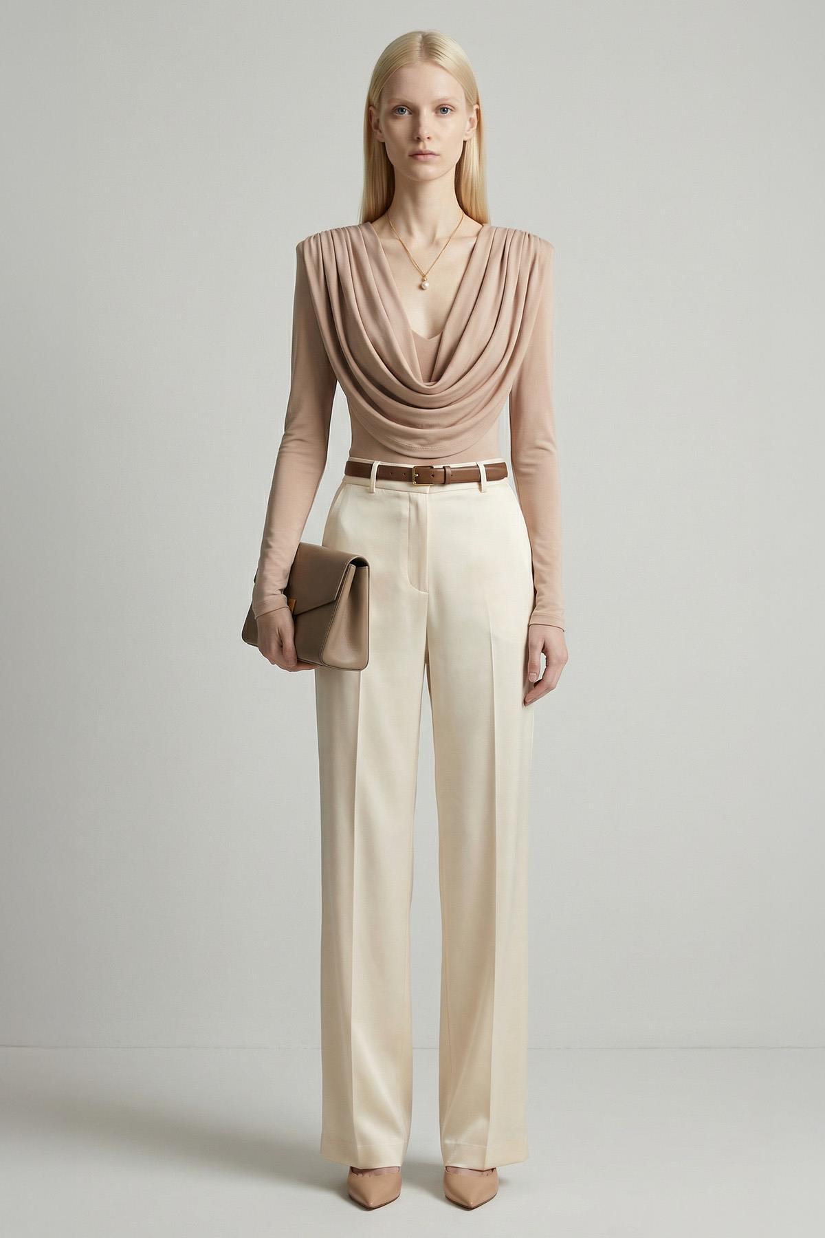Bej Degaje Yaka Uzun Kol Bluz 251282