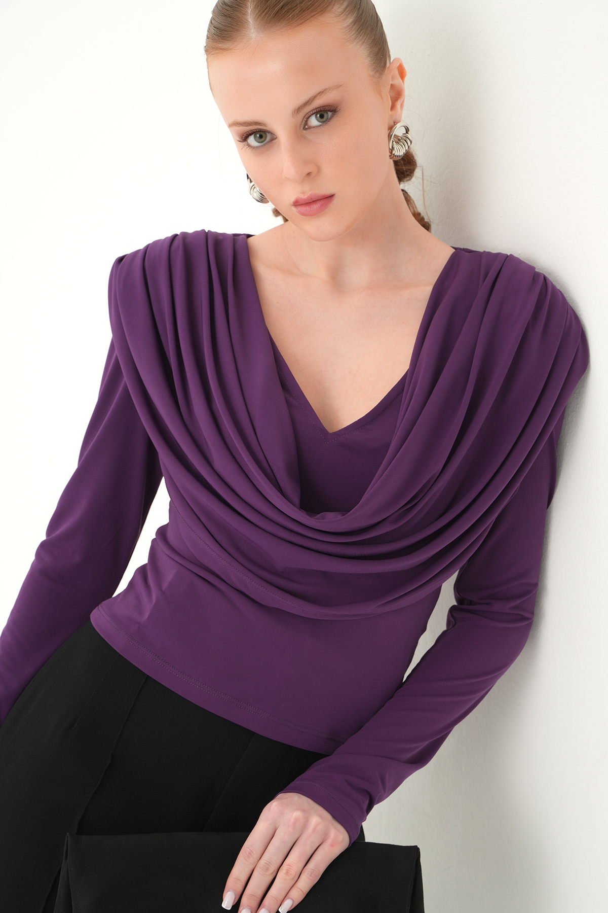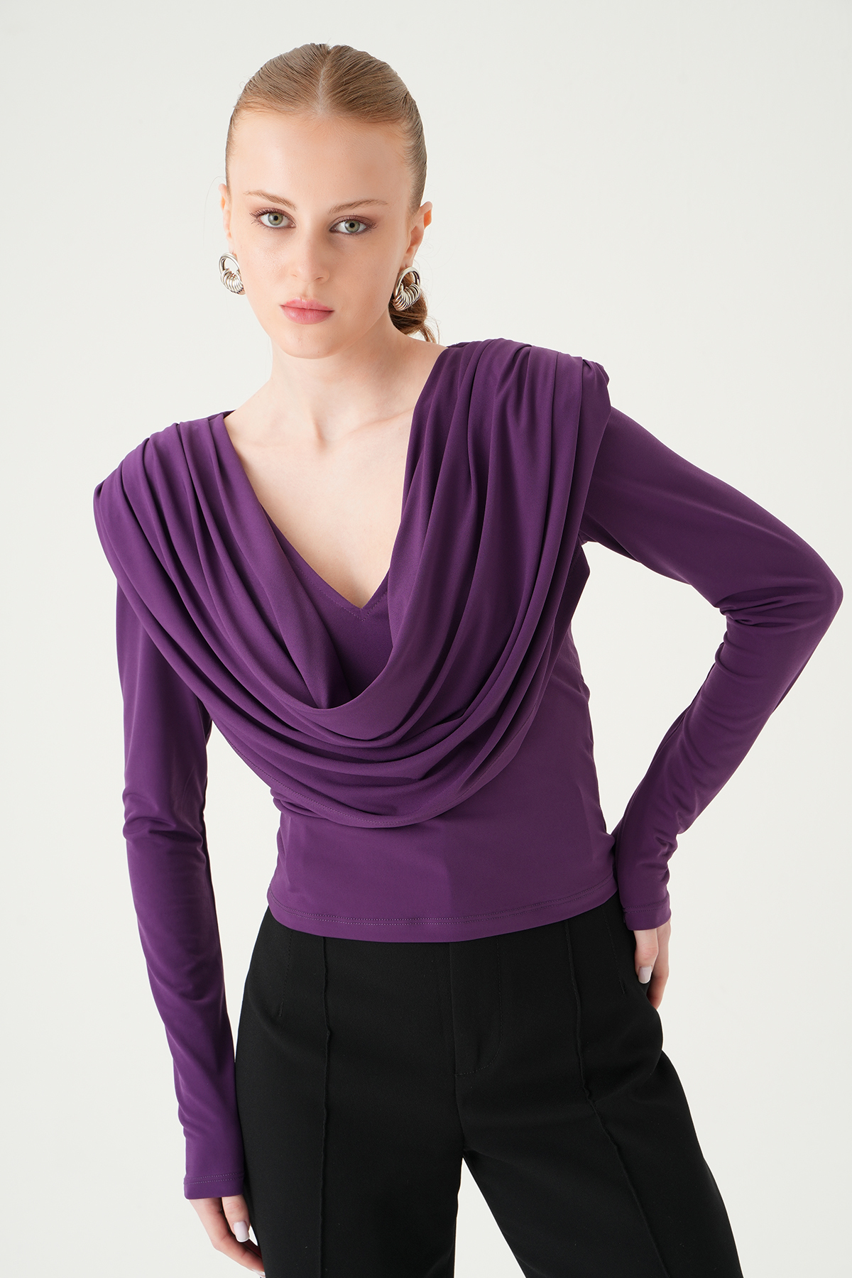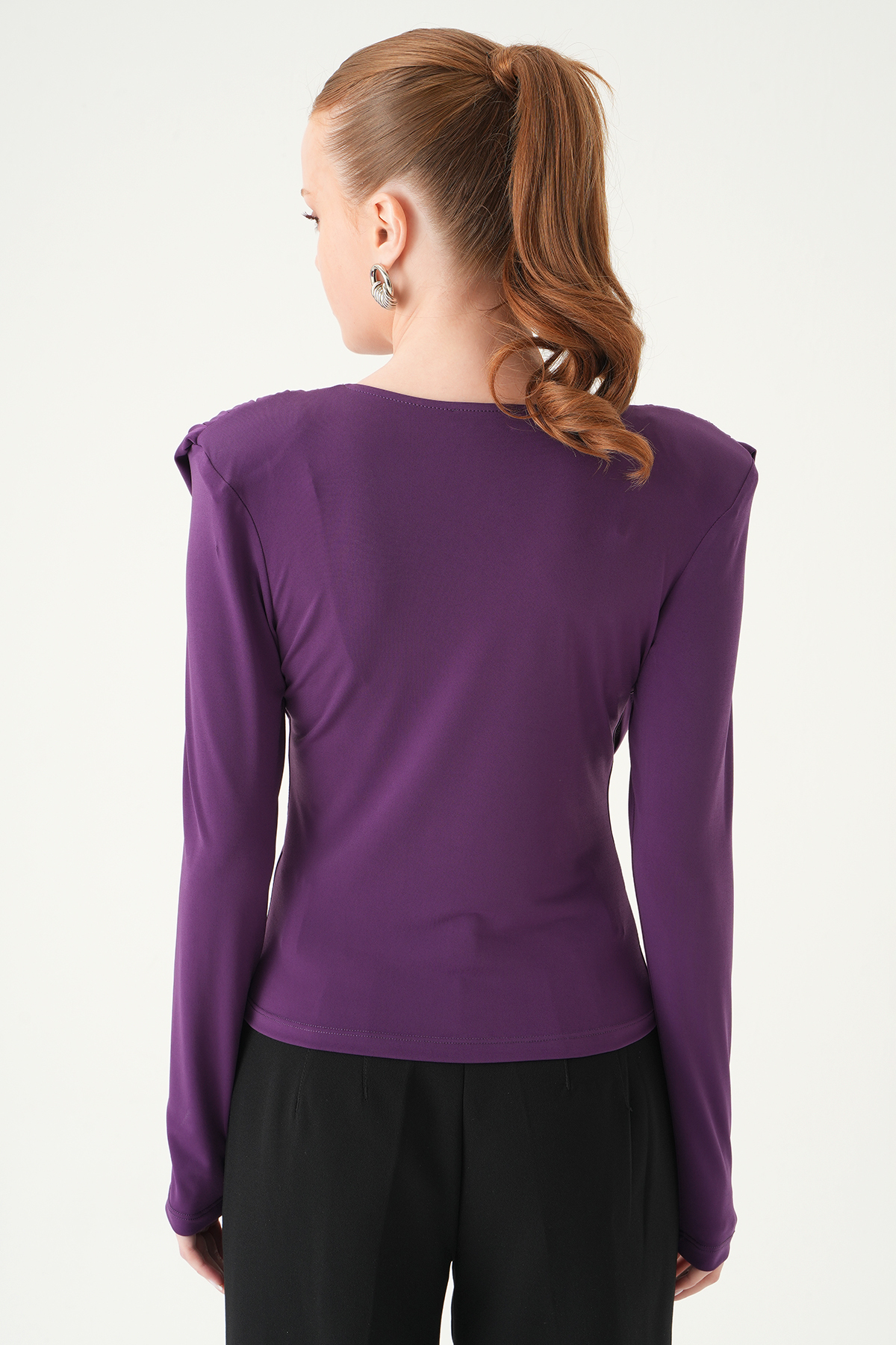 Mor Degaje Yaka Uzun Kol Bluz 251282