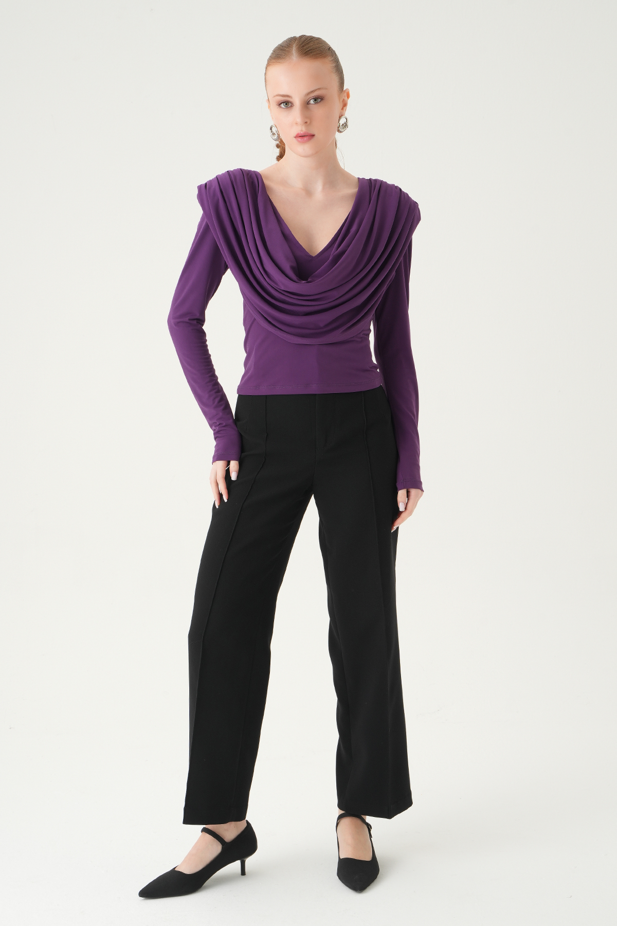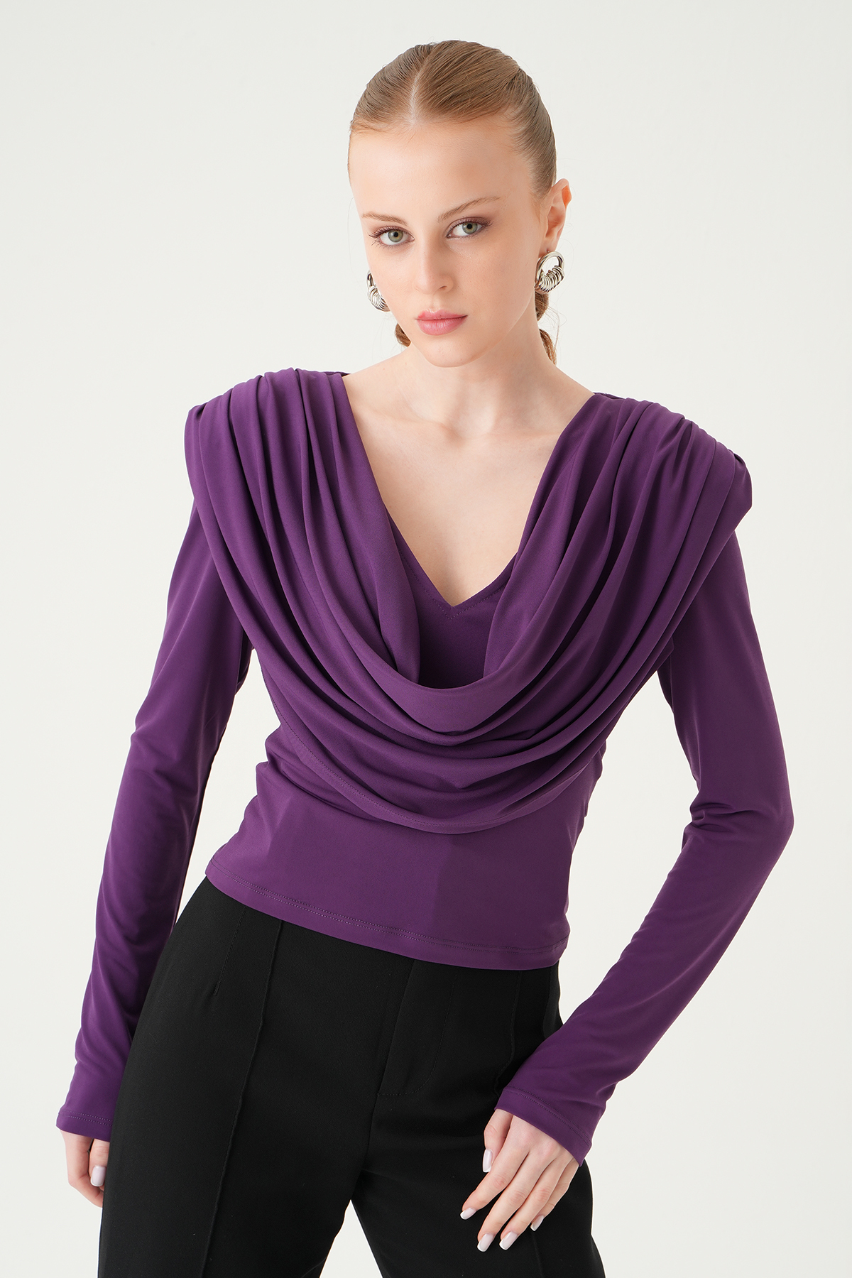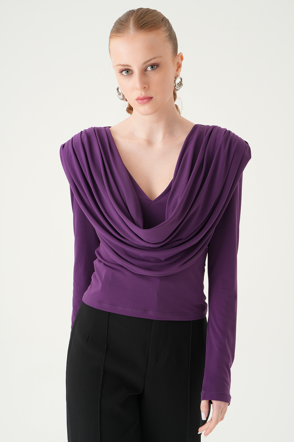 Mor Degaje Yaka Uzun Kol Bluz 251282