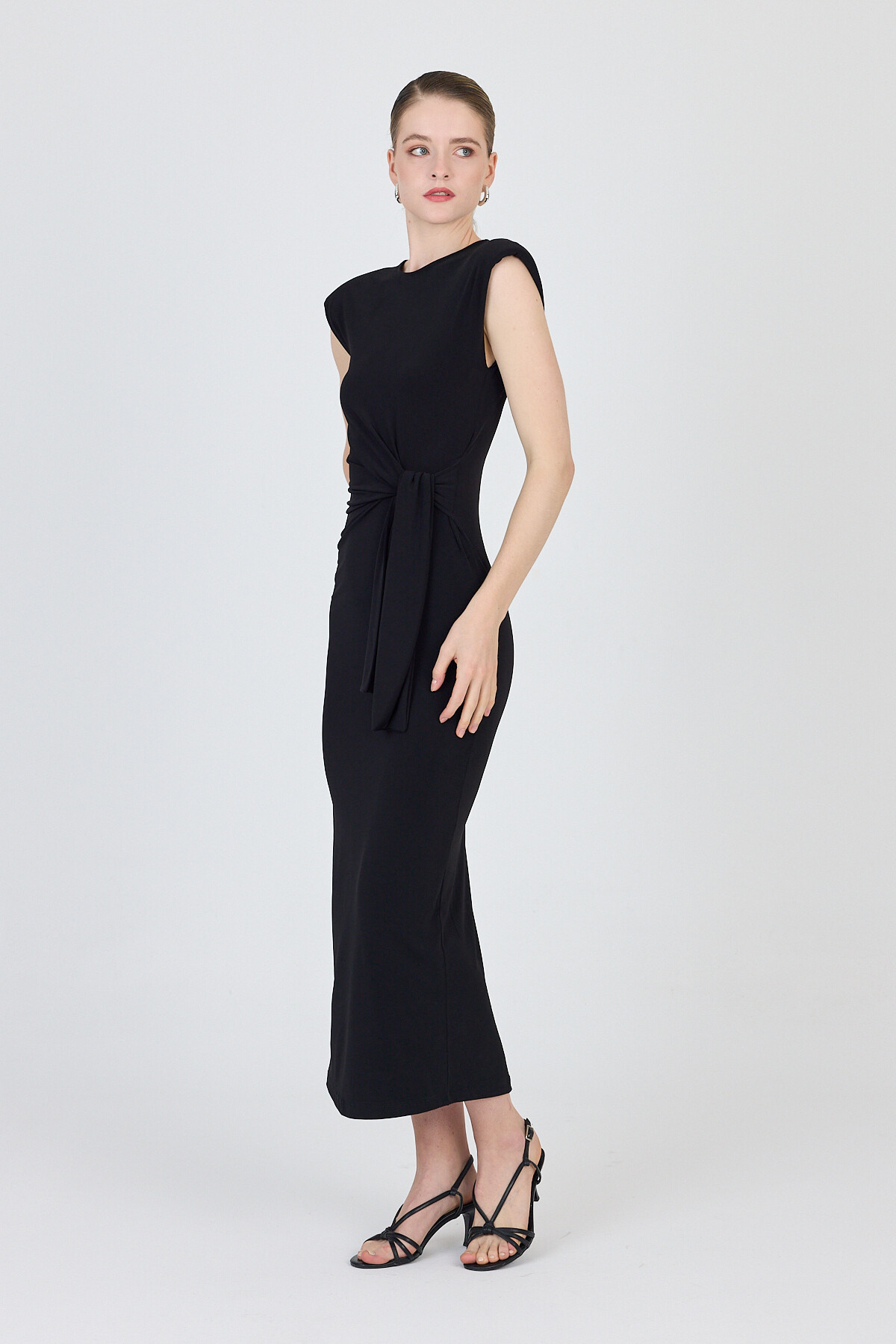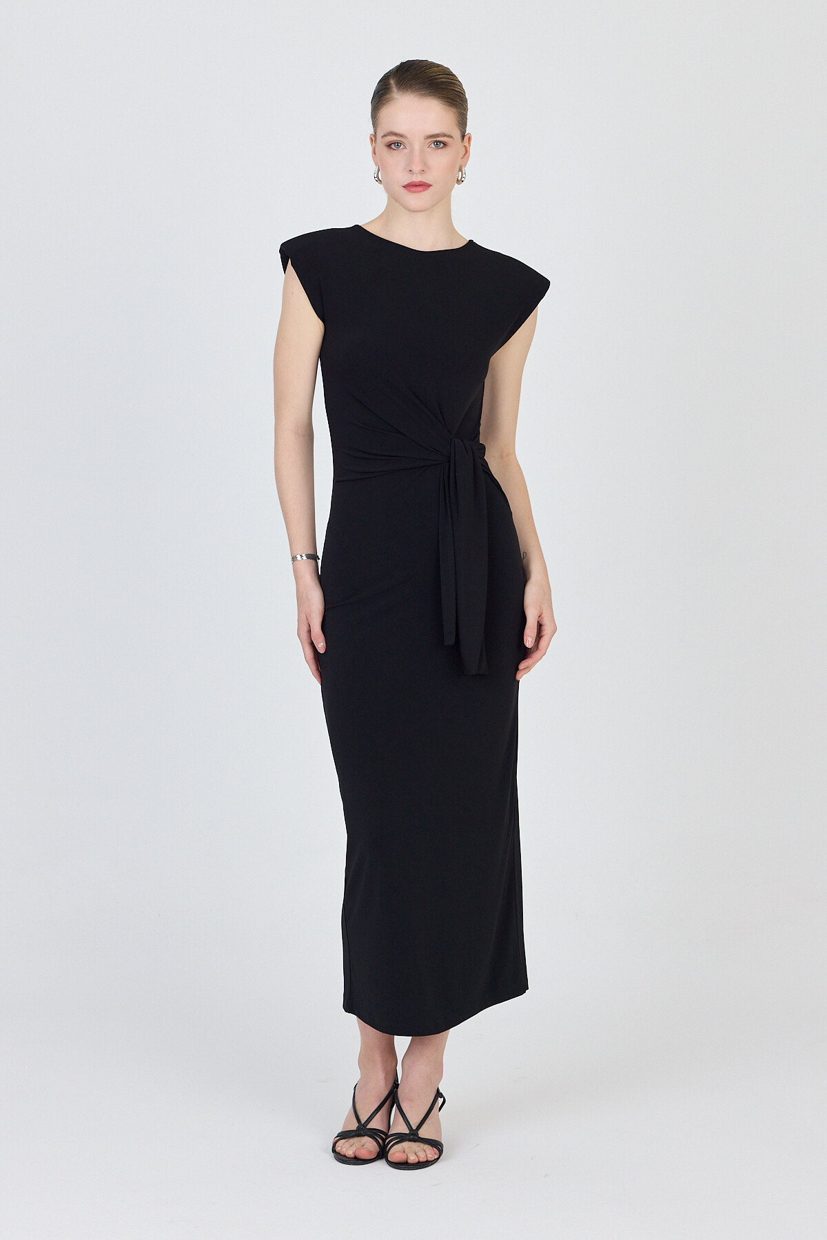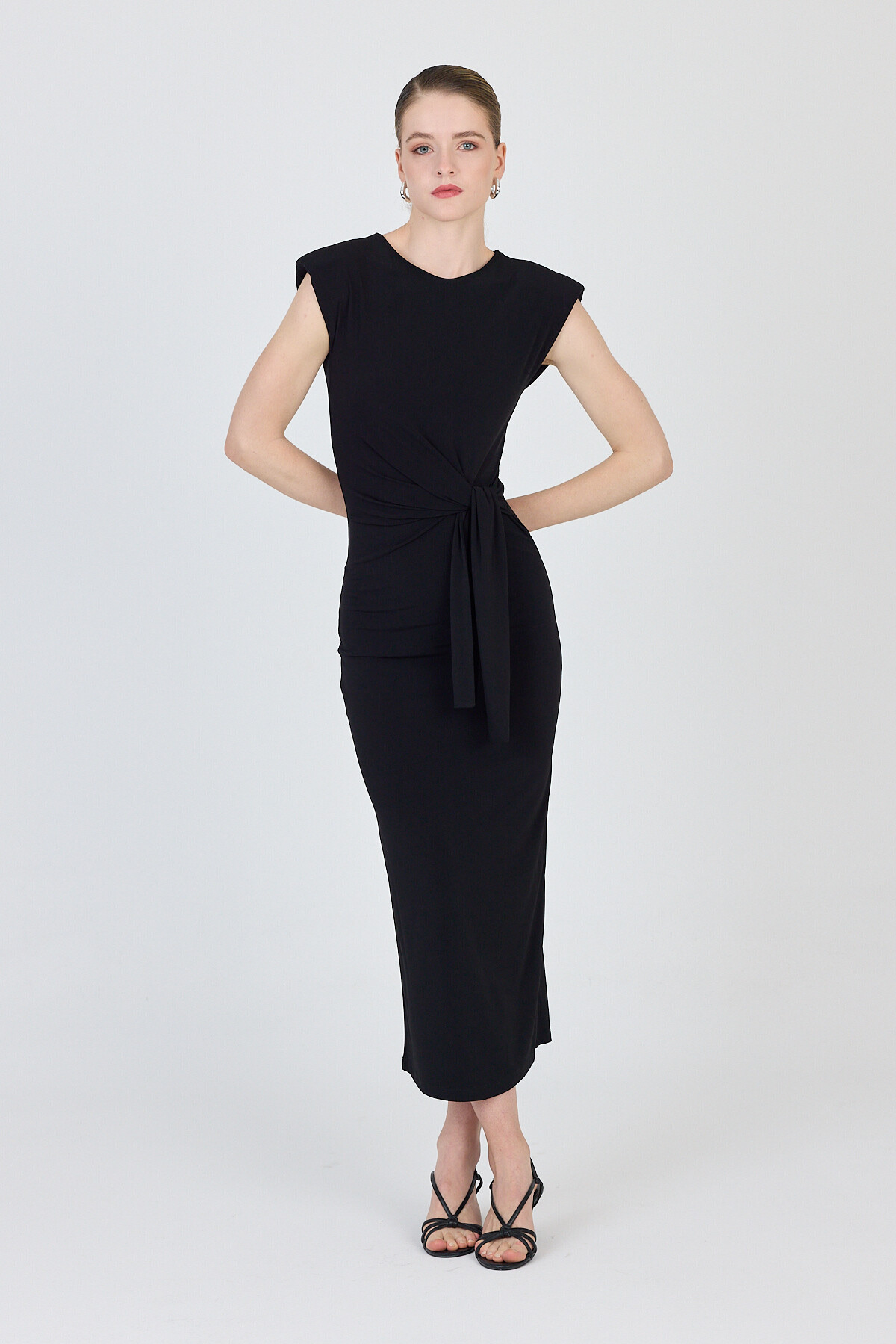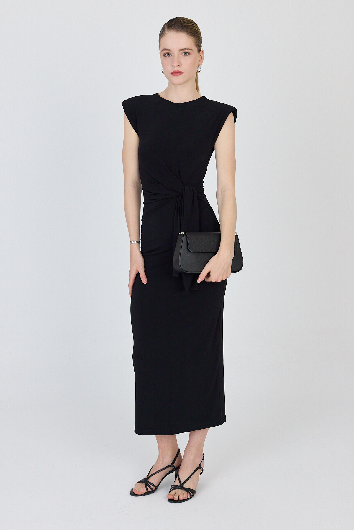 Siyah Önü Bağlamalı Vatkalı Midi Elbise 251623