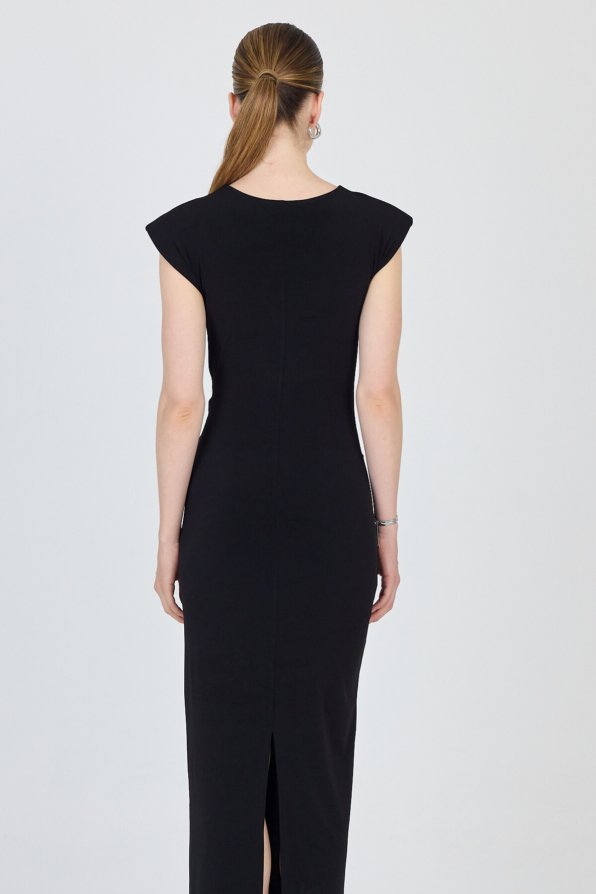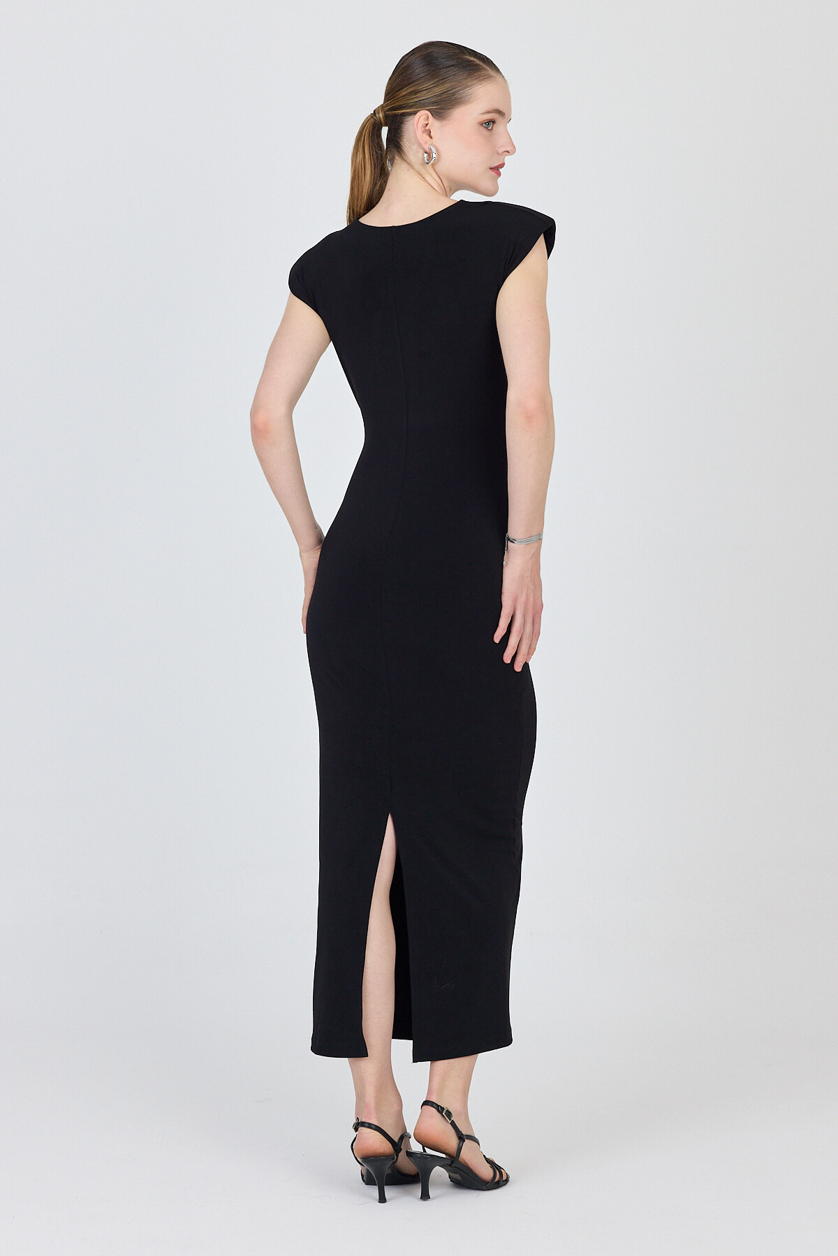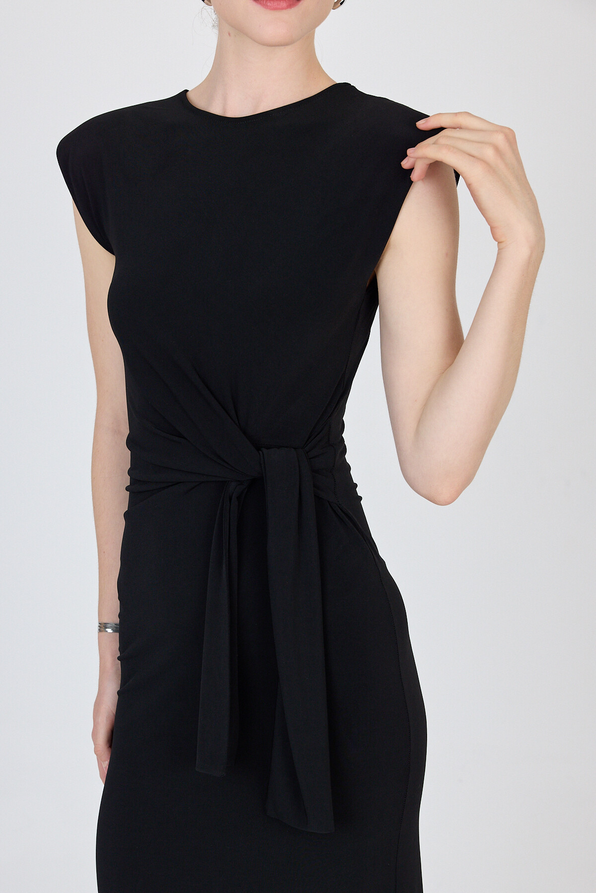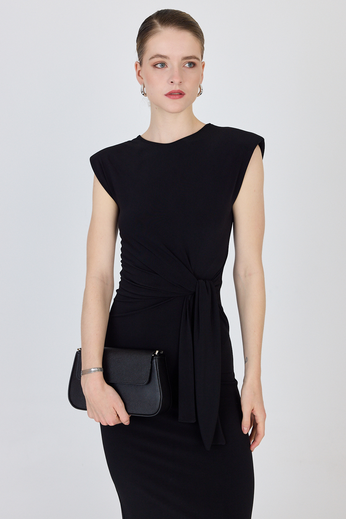 Siyah Önü Bağlamalı Vatkalı Midi Elbise 251623