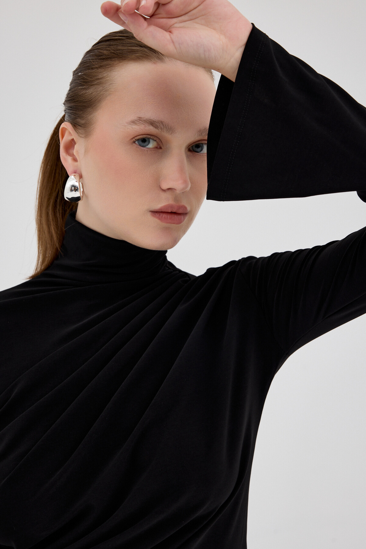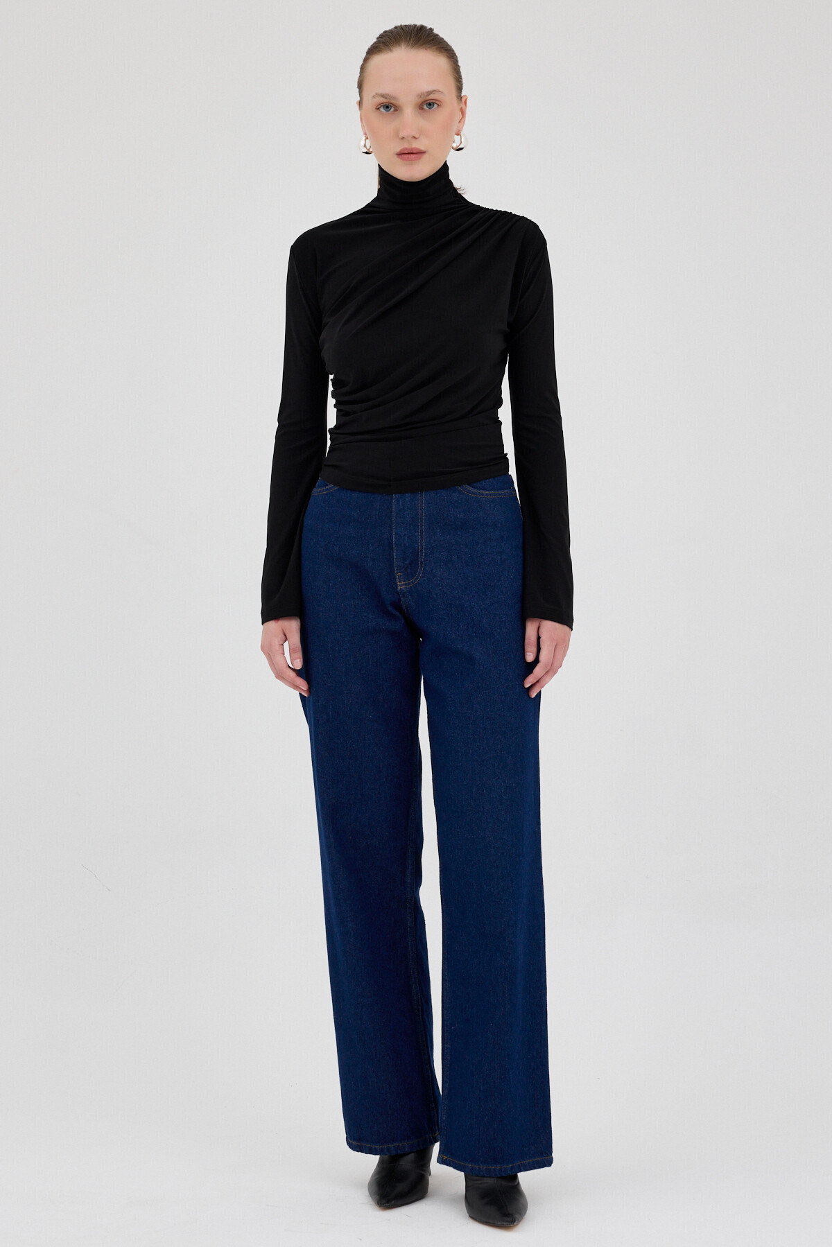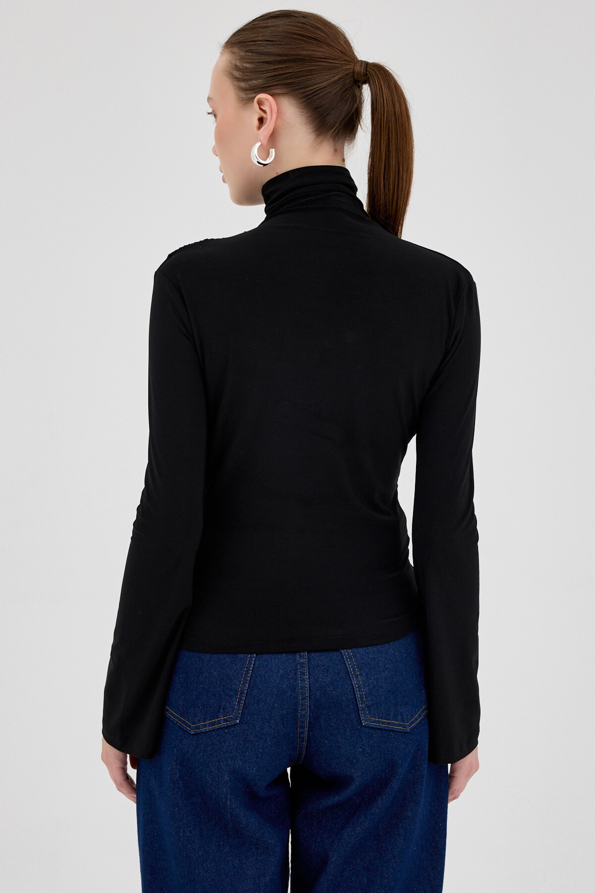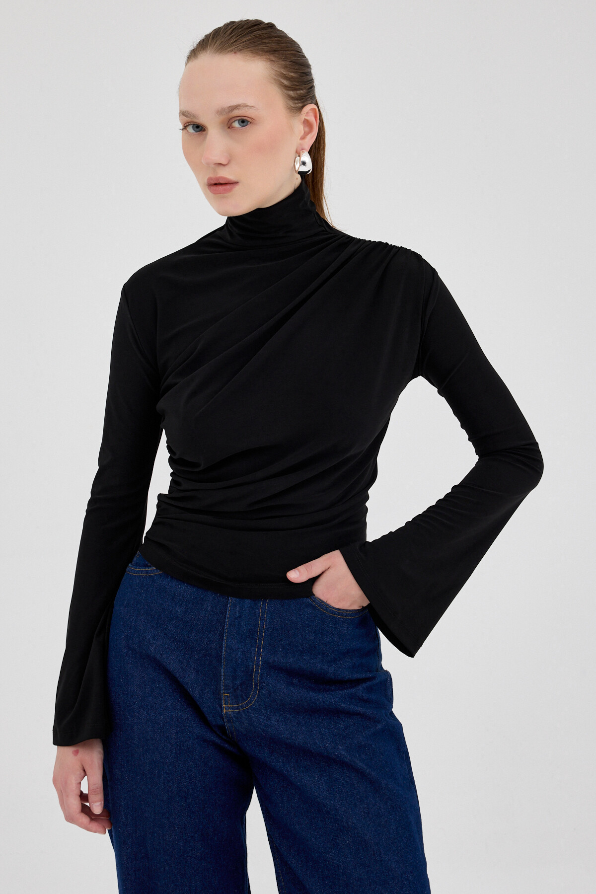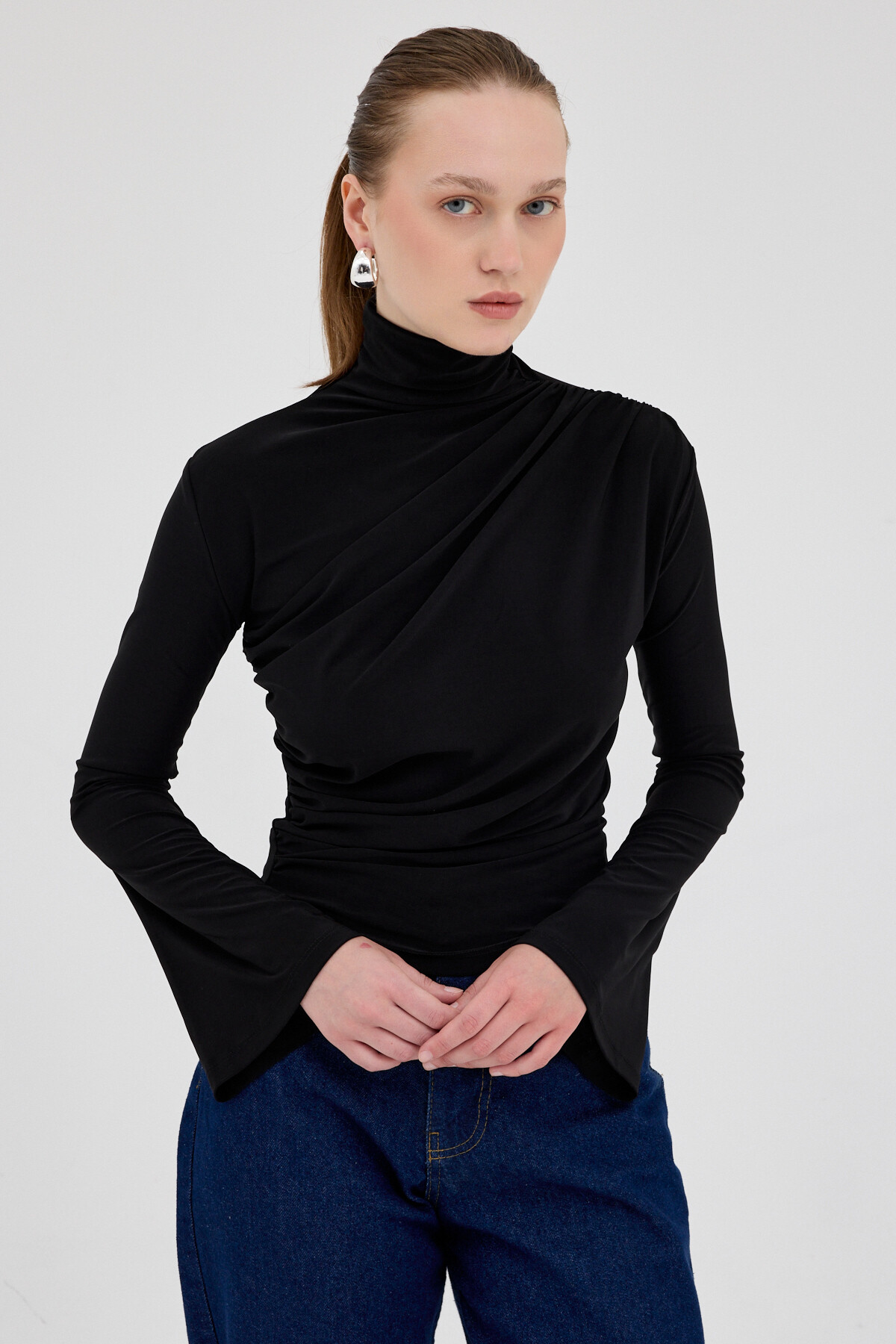 Siyah Balıkçı Yaka Drapeli Bluz 2517