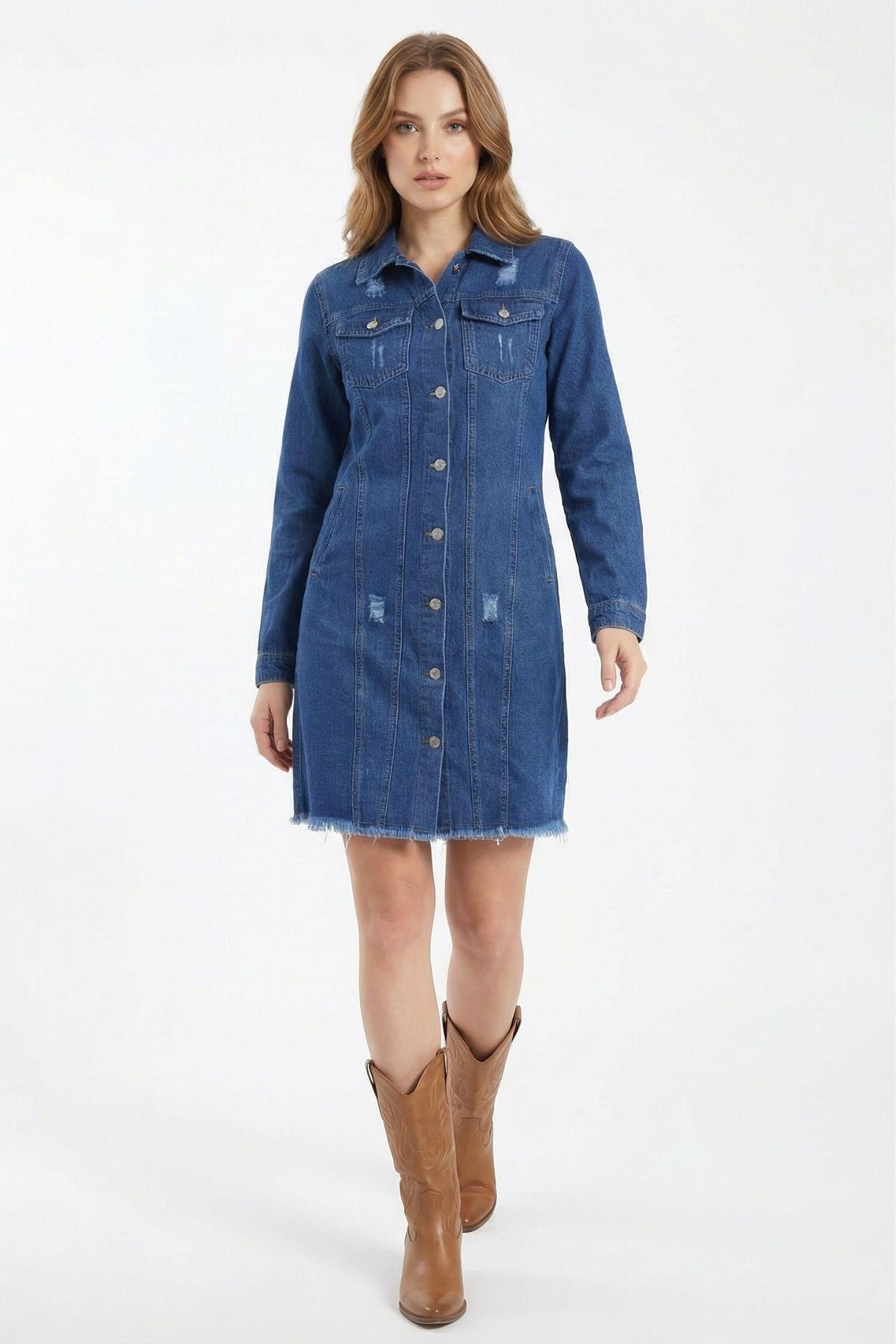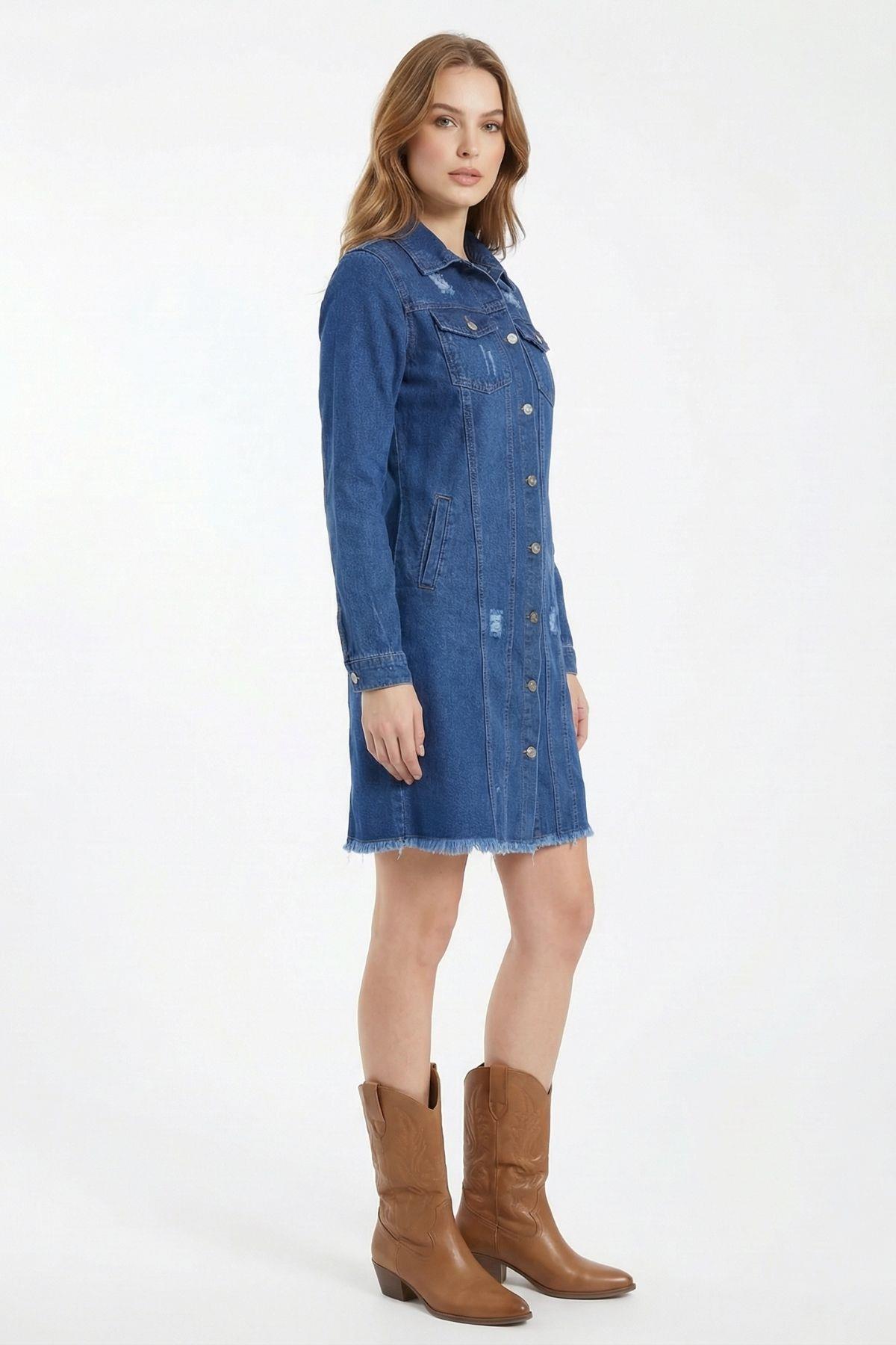 2519 Püsküllü Uzun Kot Ceket Koyu Mavi - RAYS 2519 Püsküllü Uzun Kot Ceket Koyu Mavi - RAYS (1)