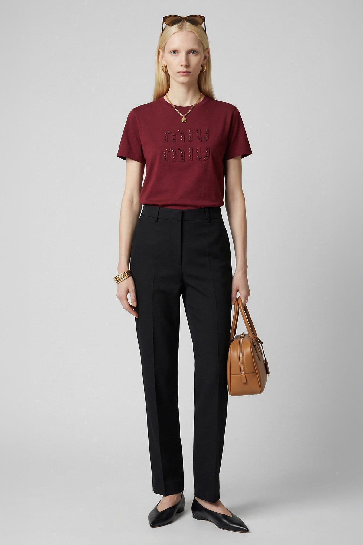 25220 Kabartma Miu Miu Yazılı Tişört