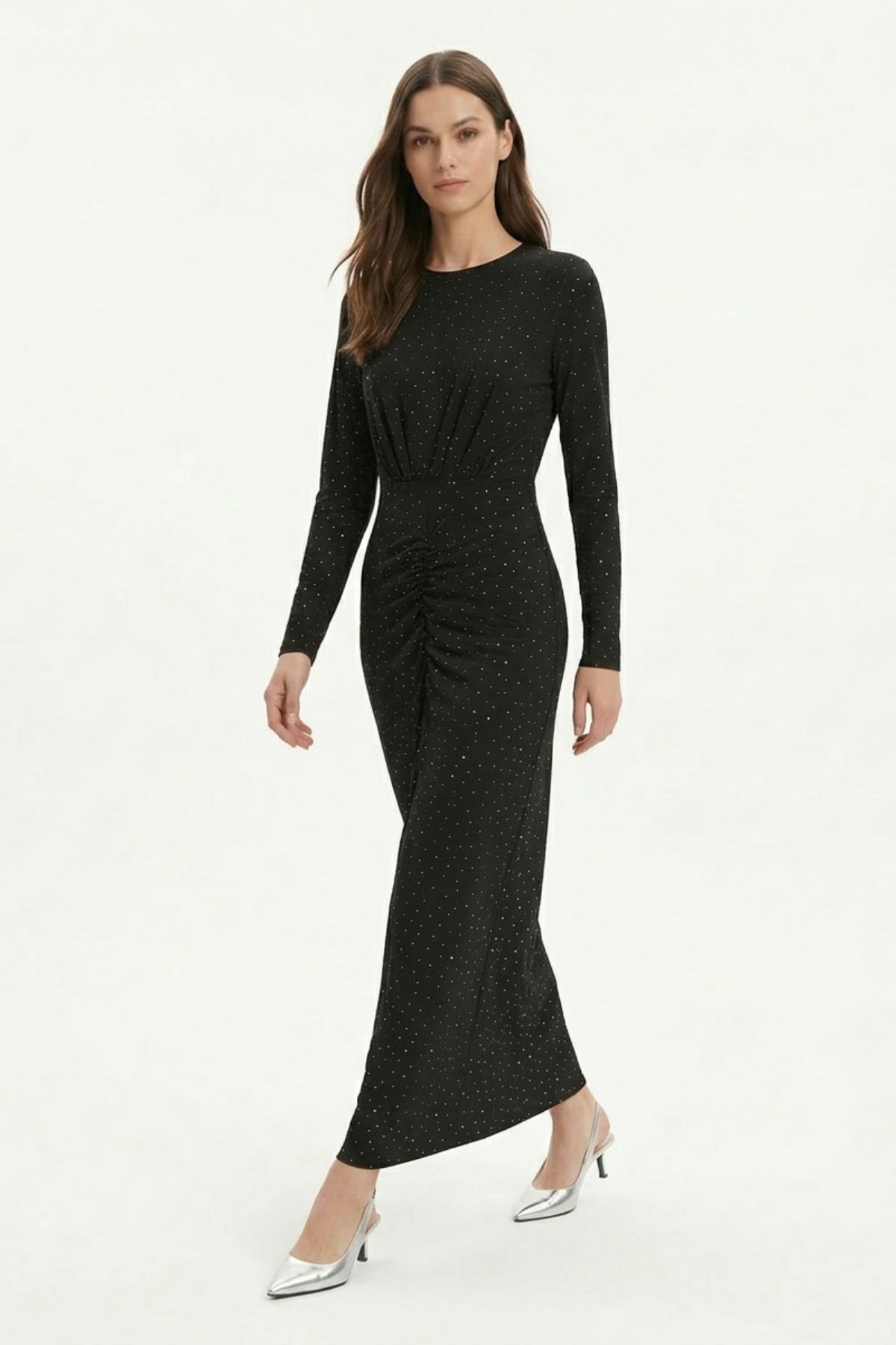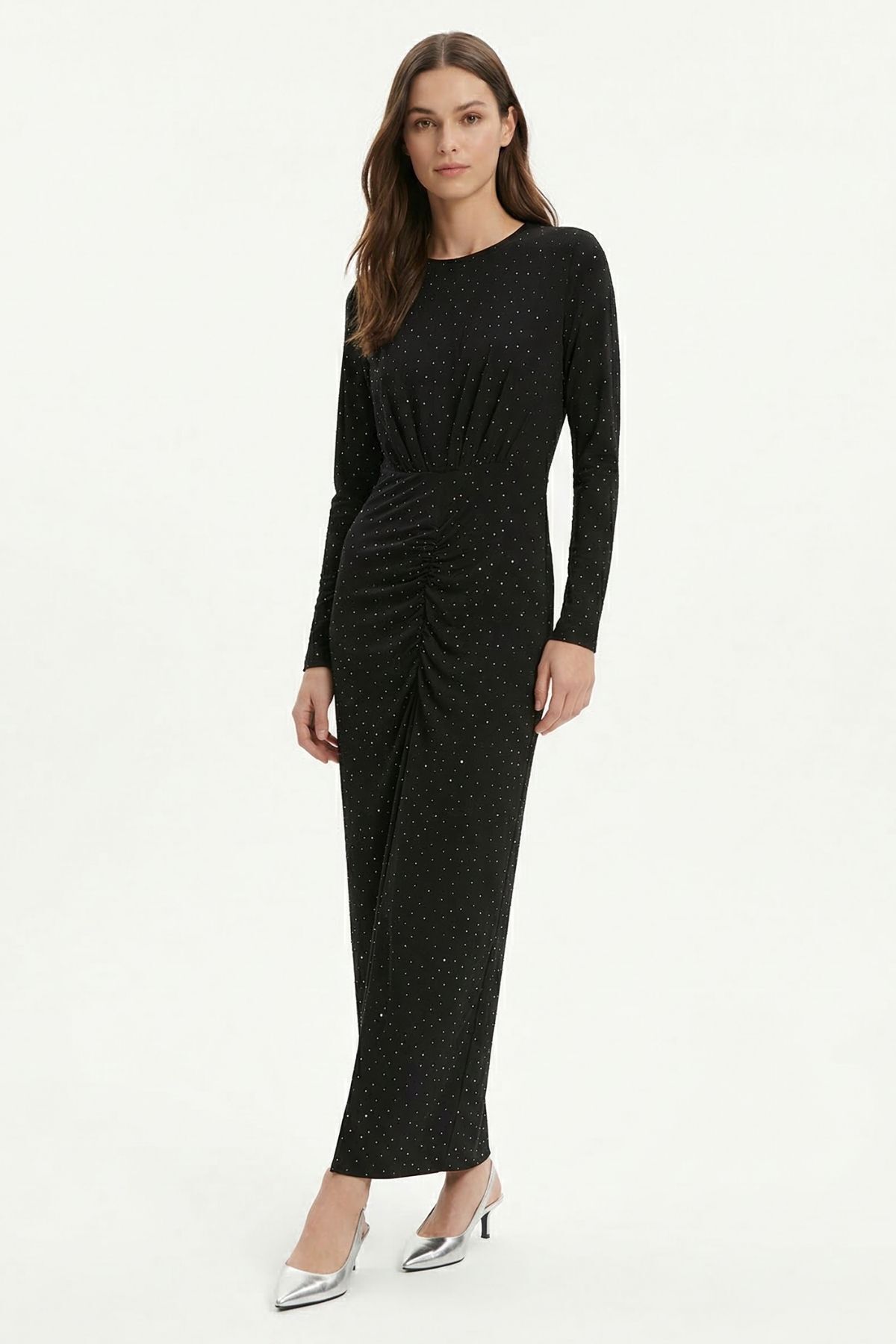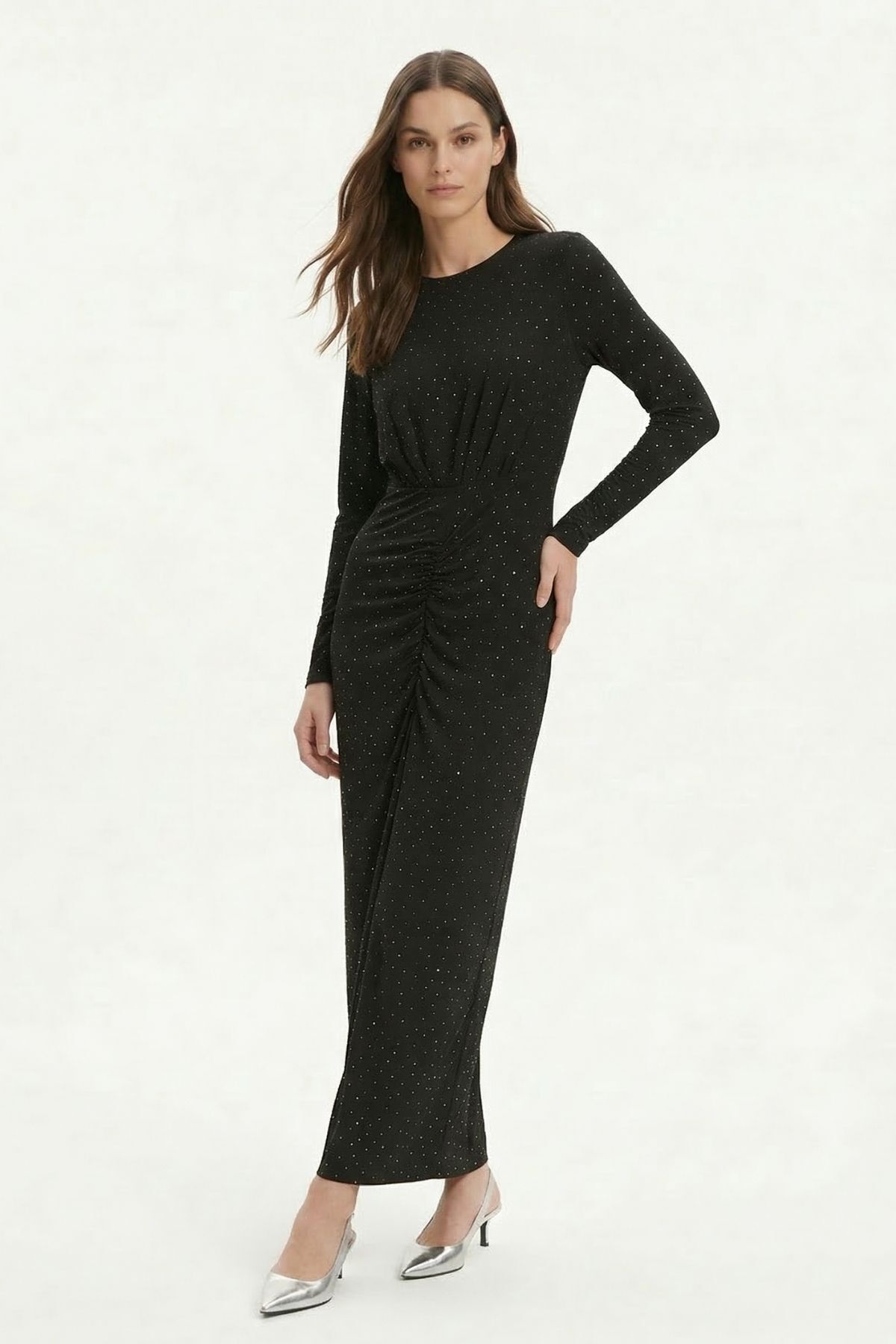 Siyah Ön Büzgülü Taşlı Elbise 252787