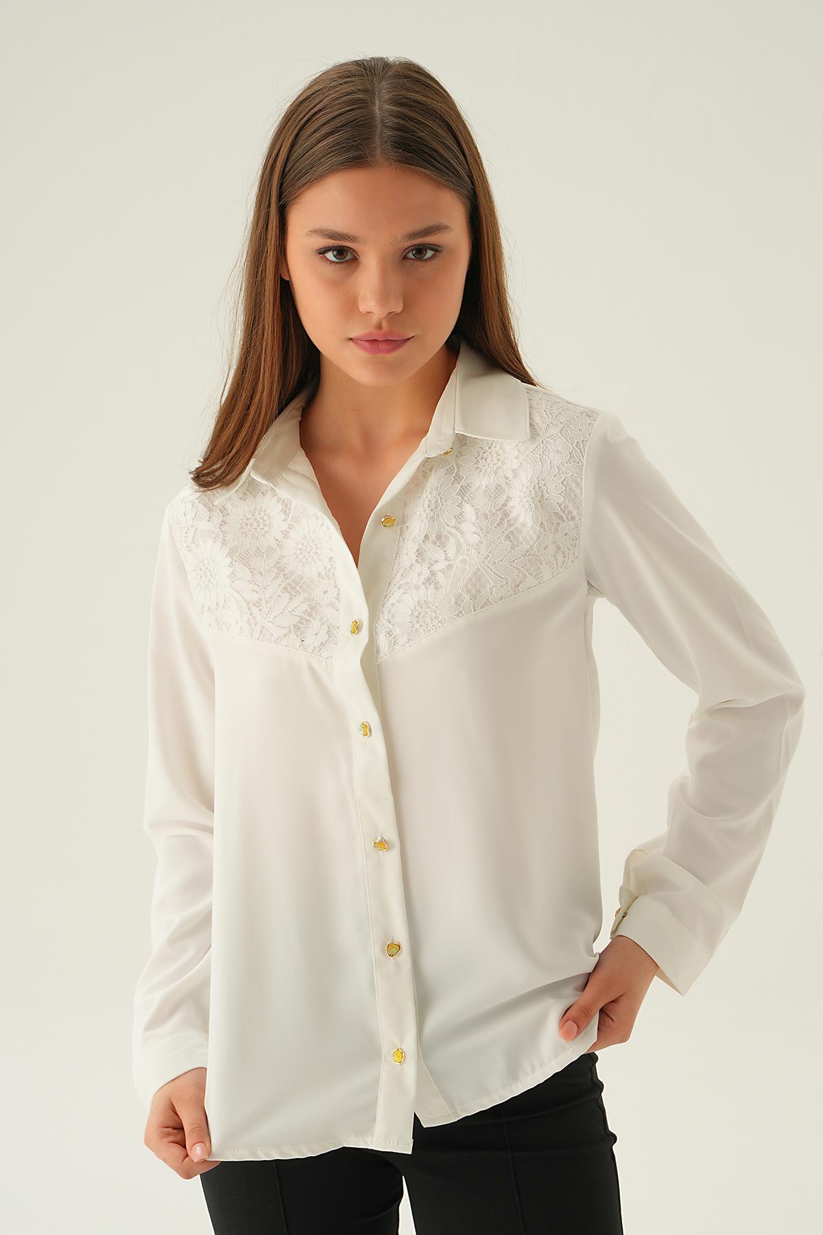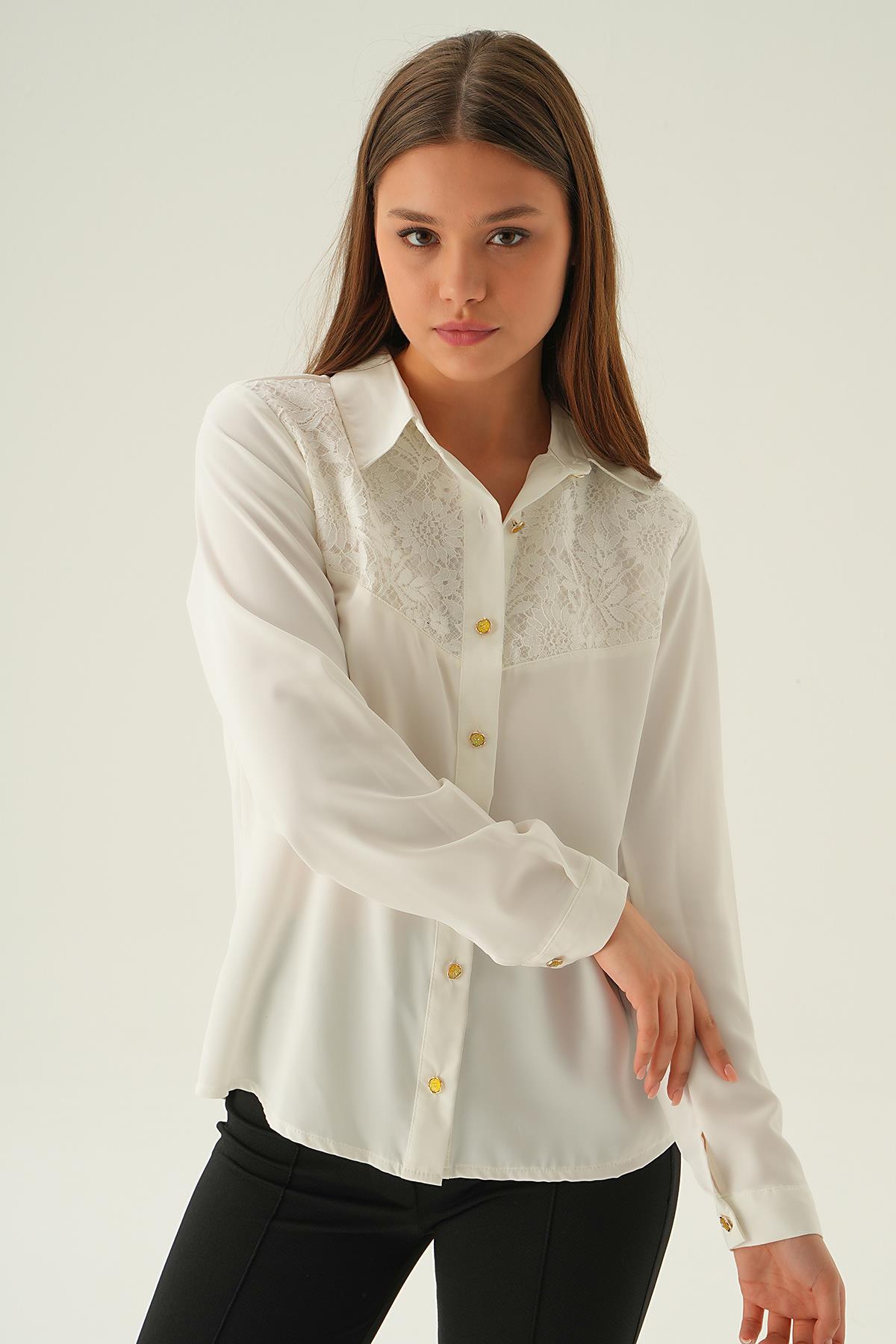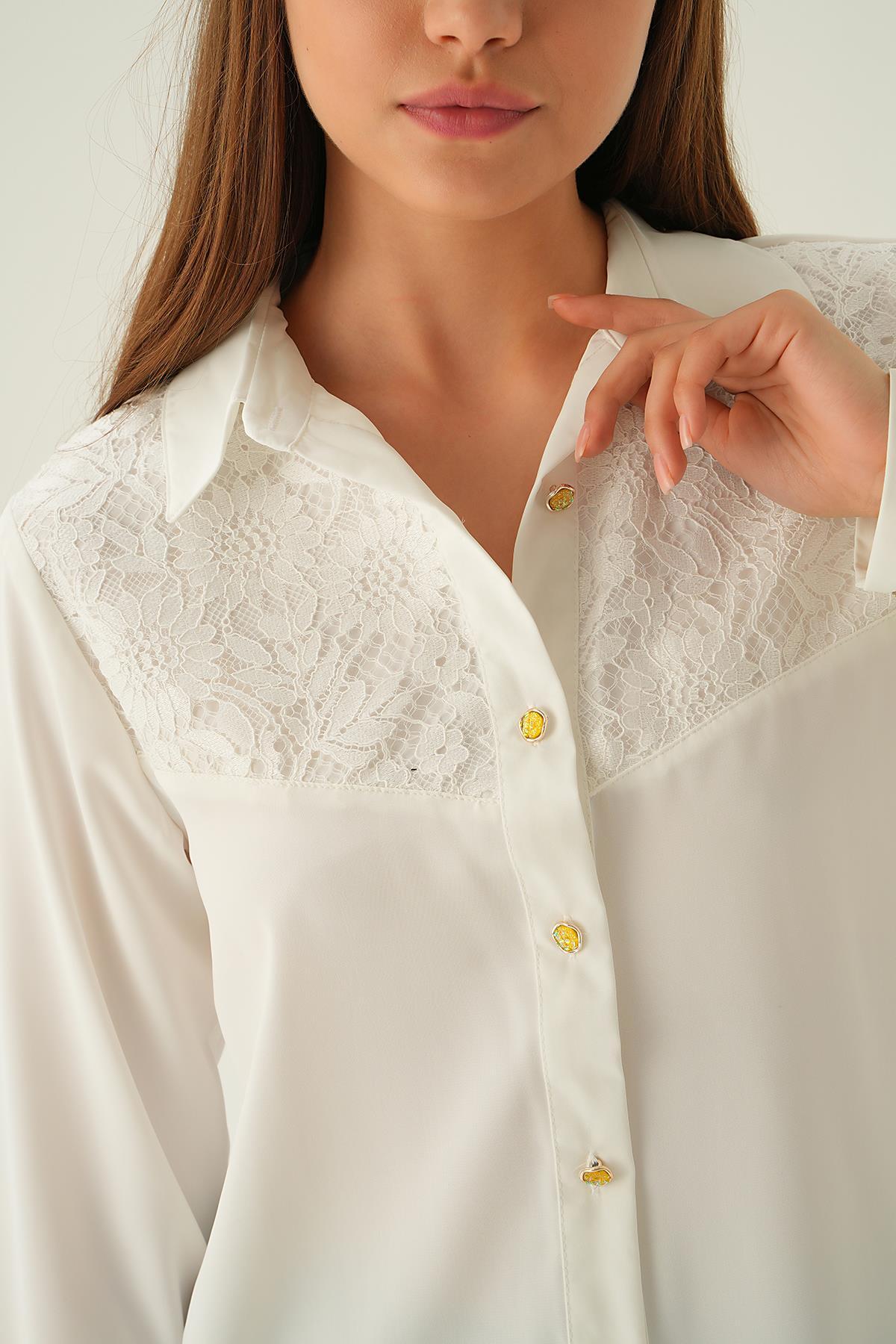 Krem Dantel Detay Gömlek 25511
