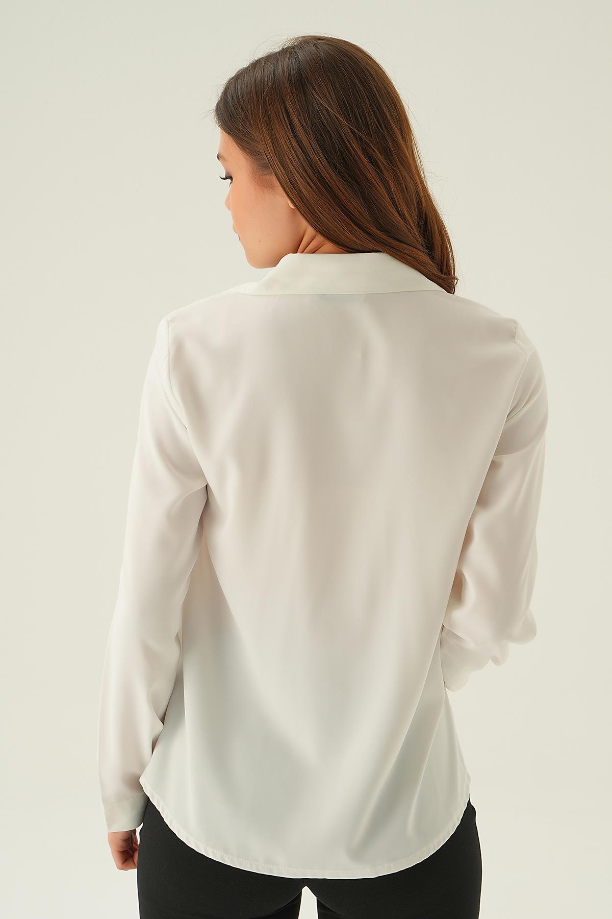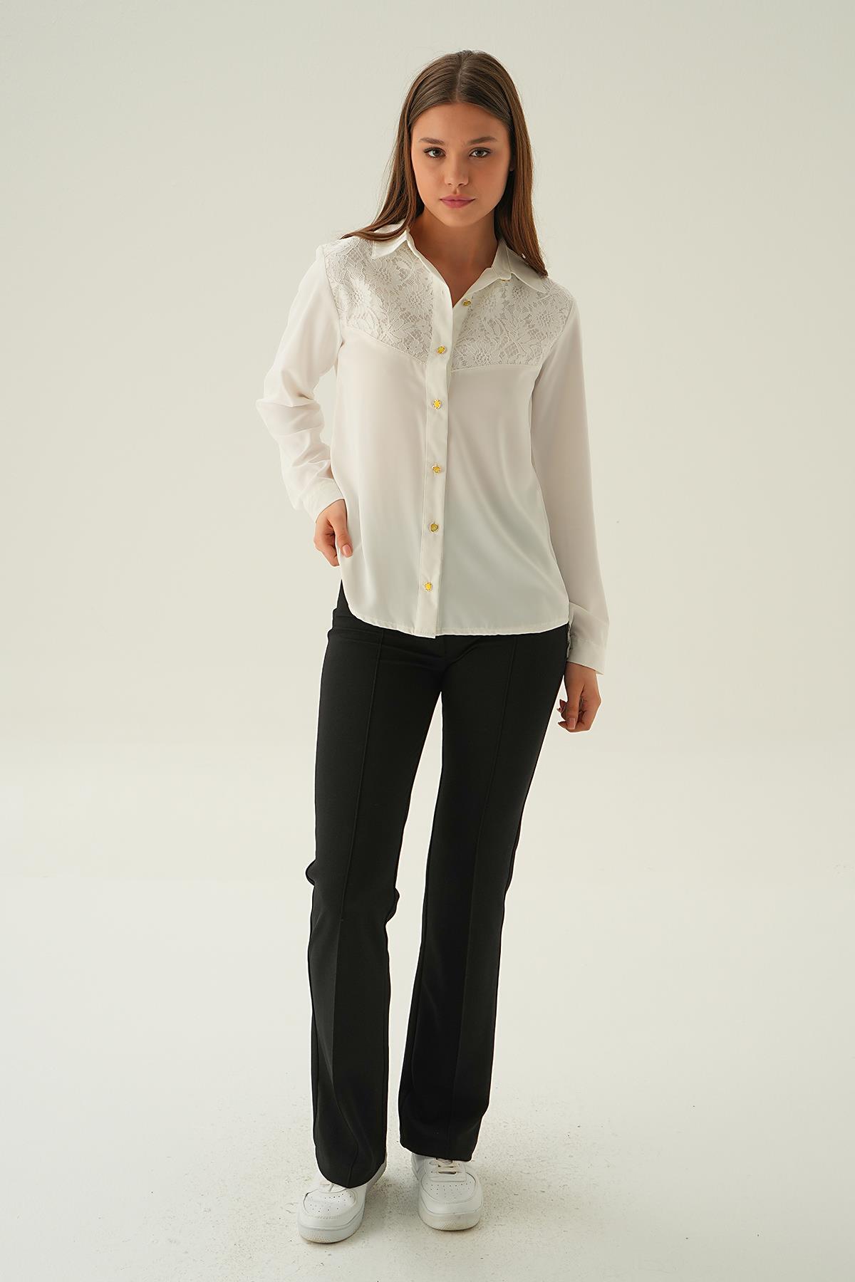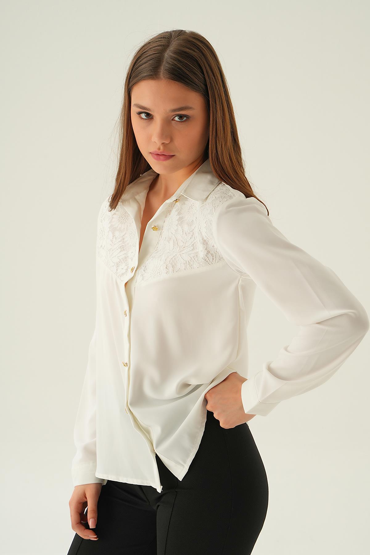 Krem Dantel Detay Gömlek 25511