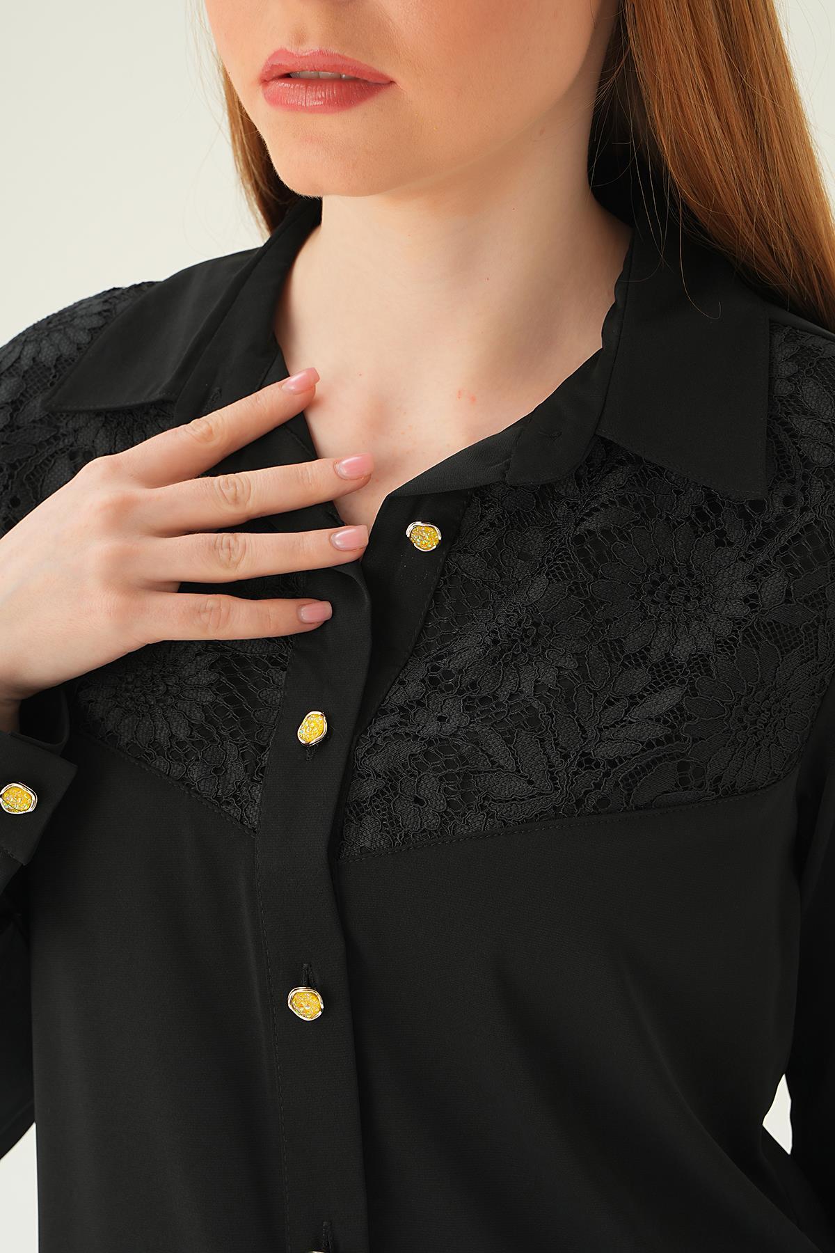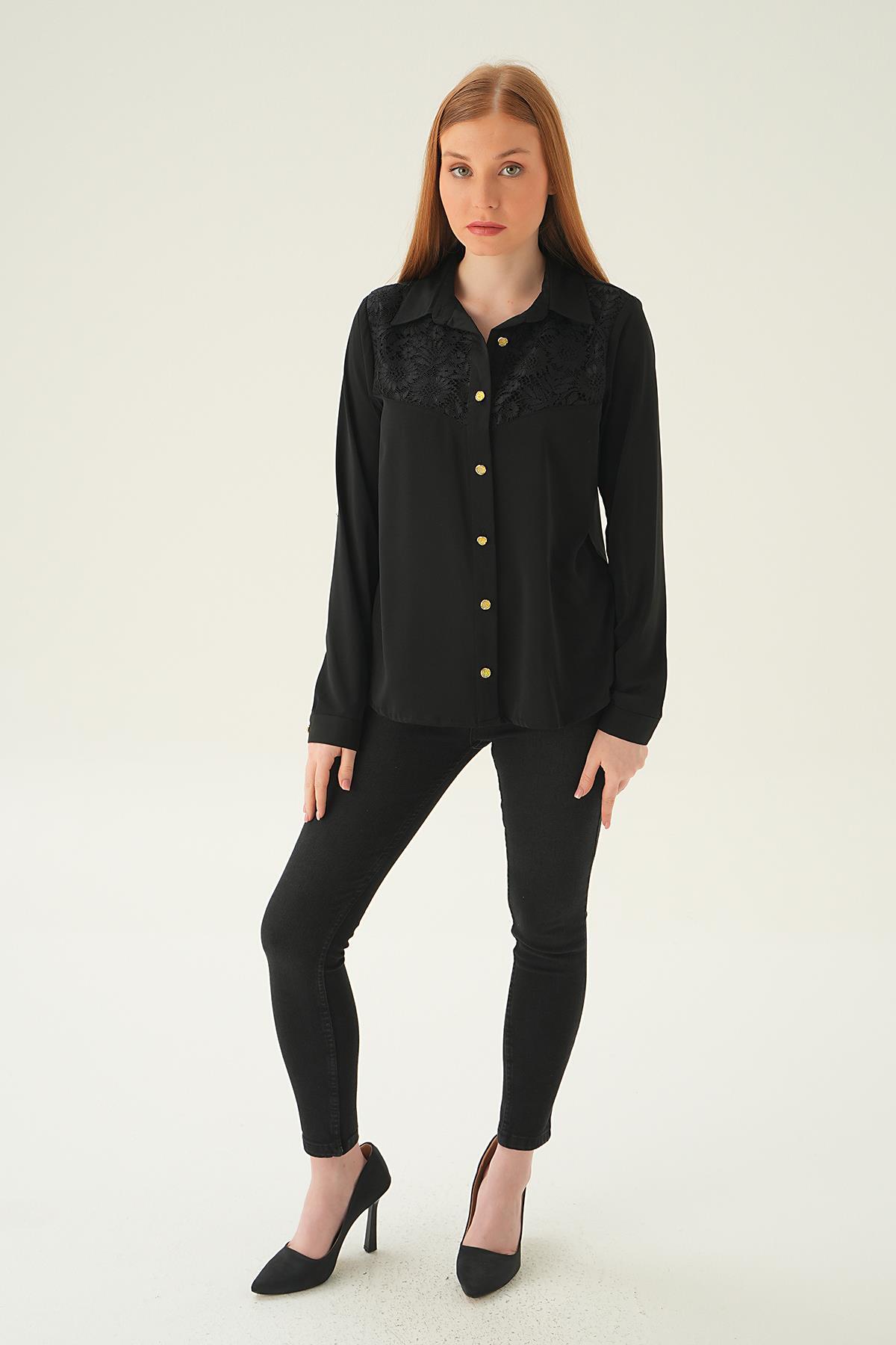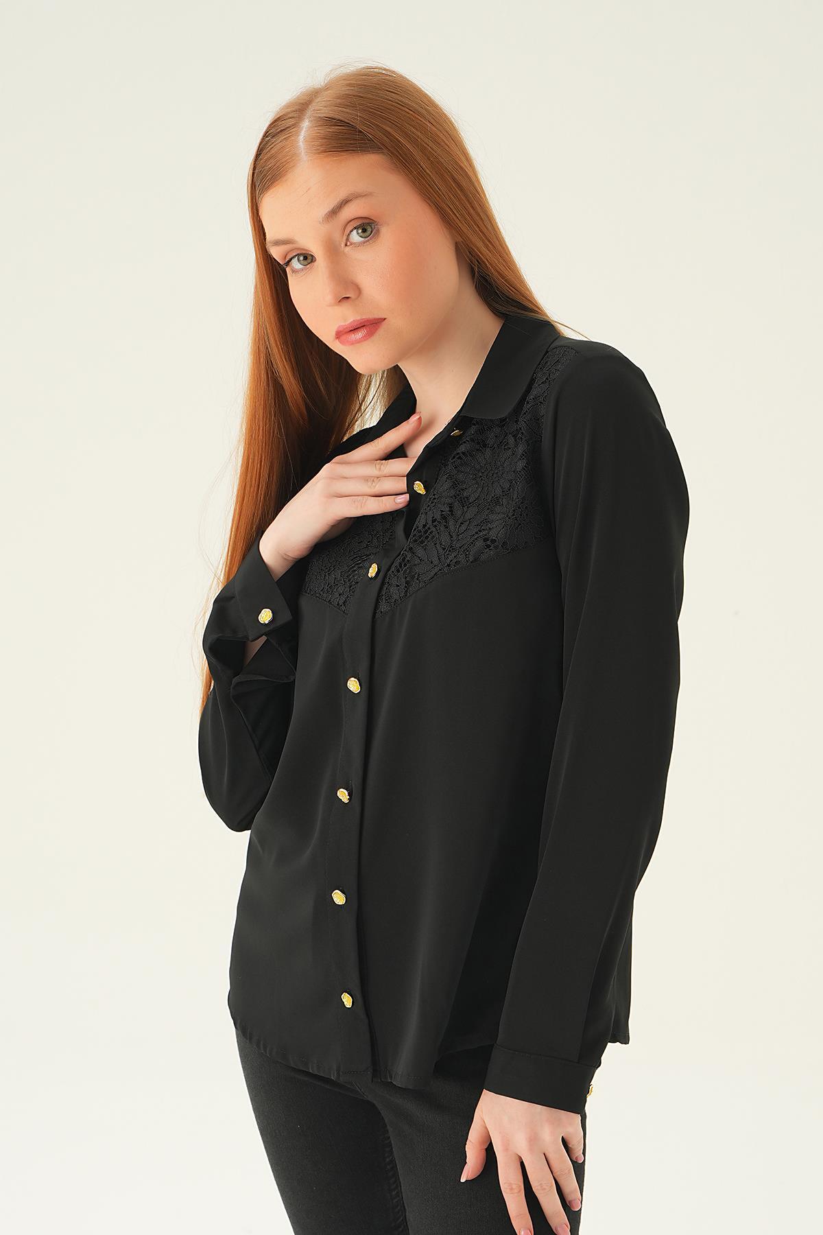 Siyah Dantel Detay Gömlek 25511