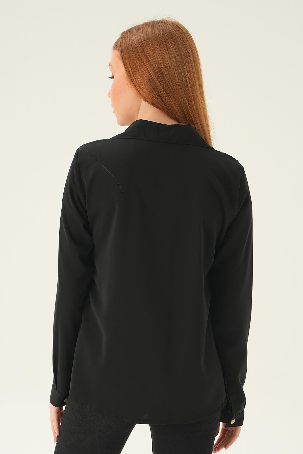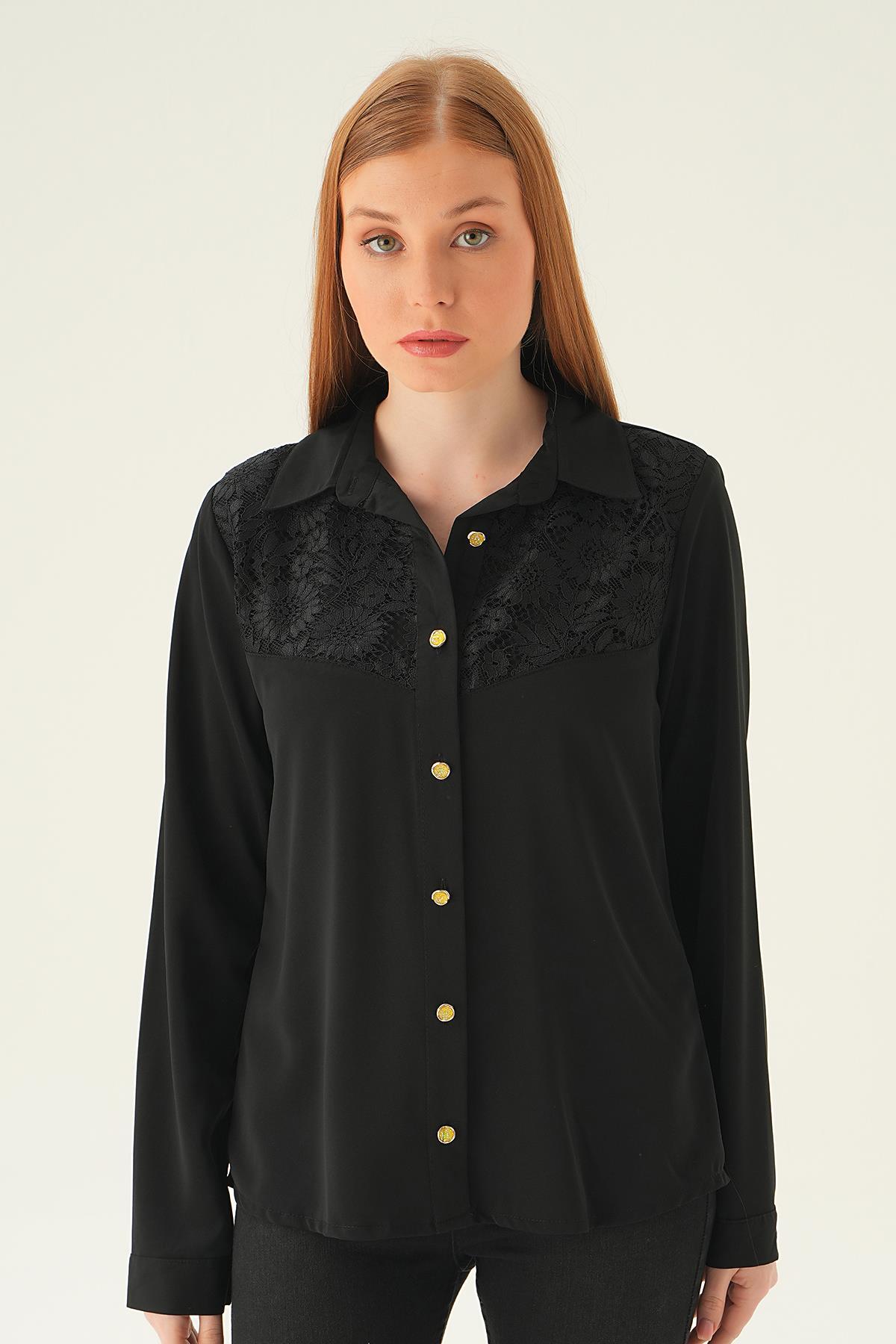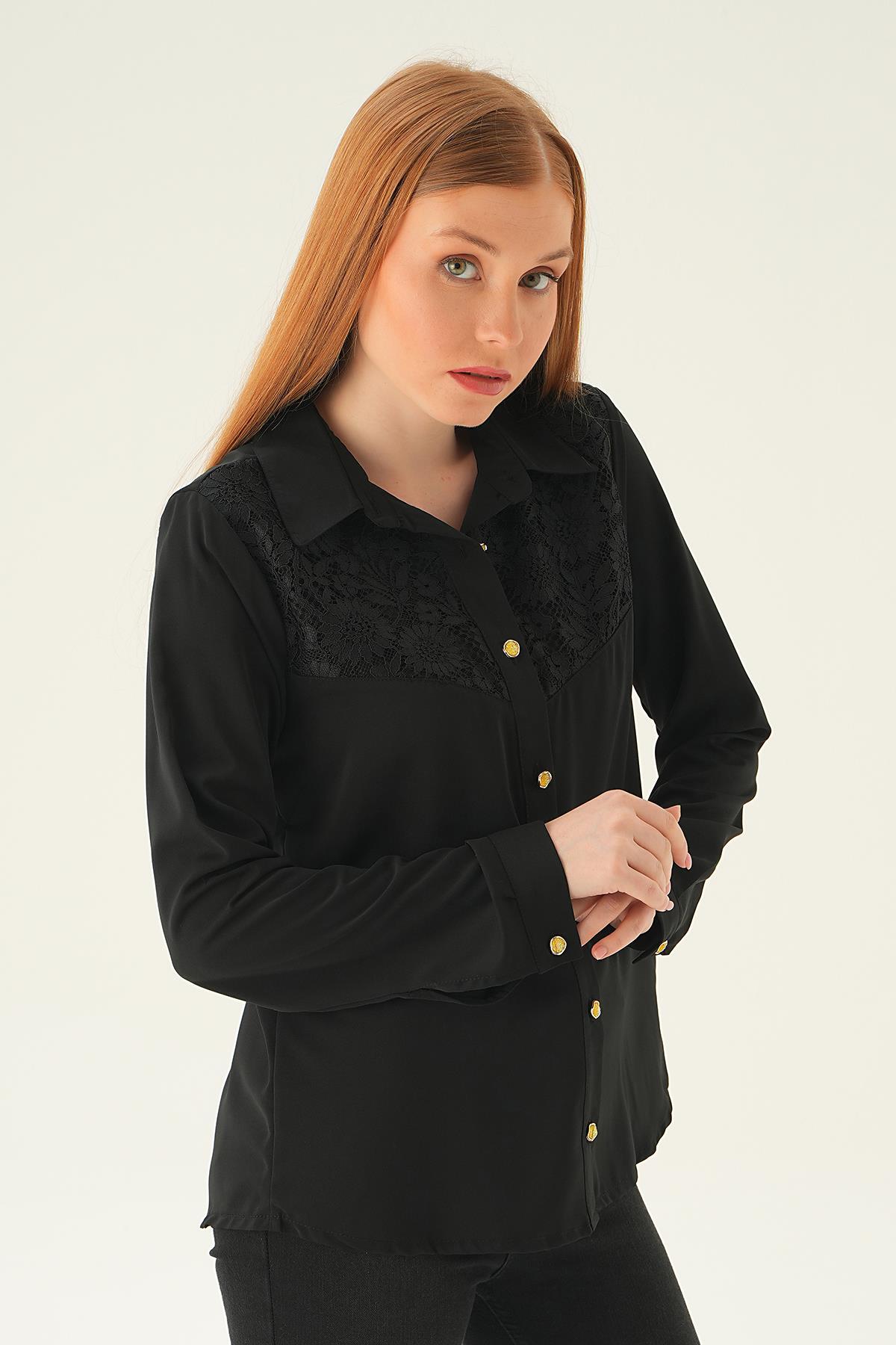 Siyah Dantel Detay Gömlek 25511