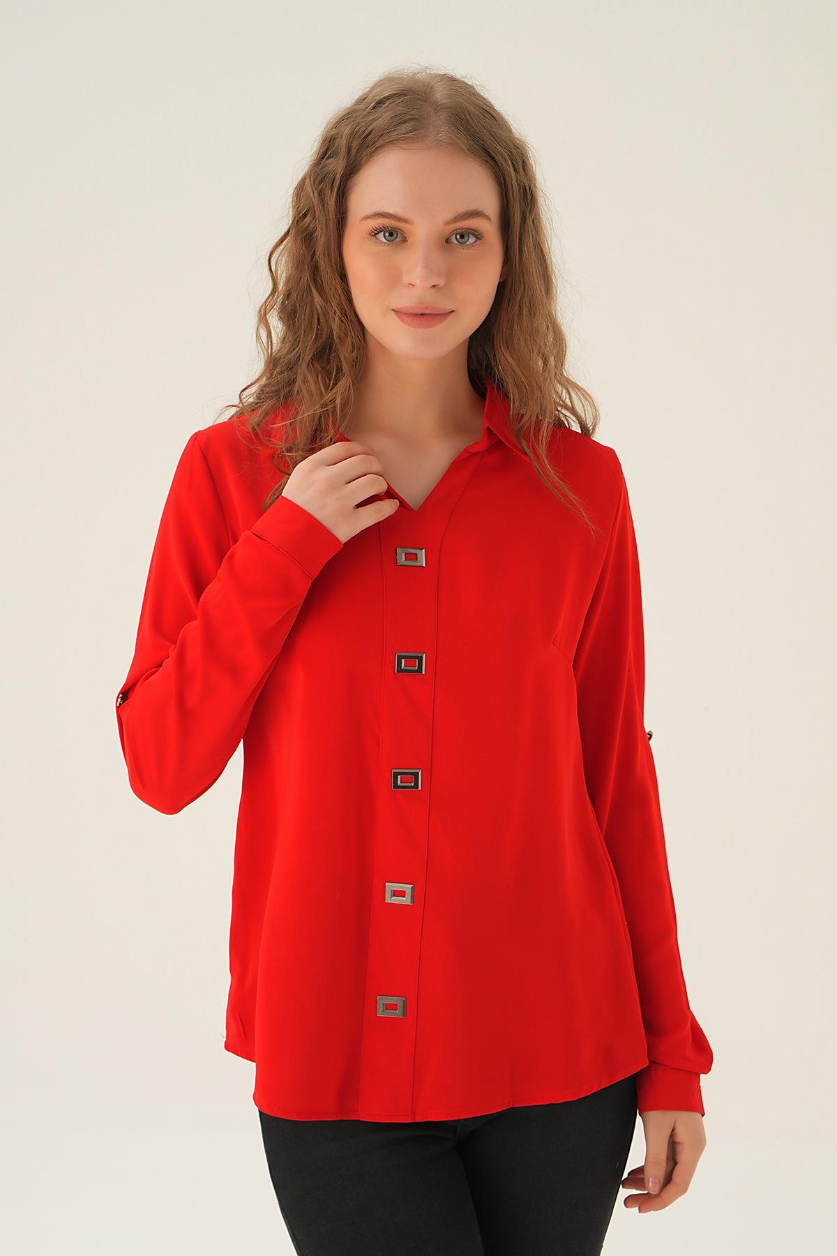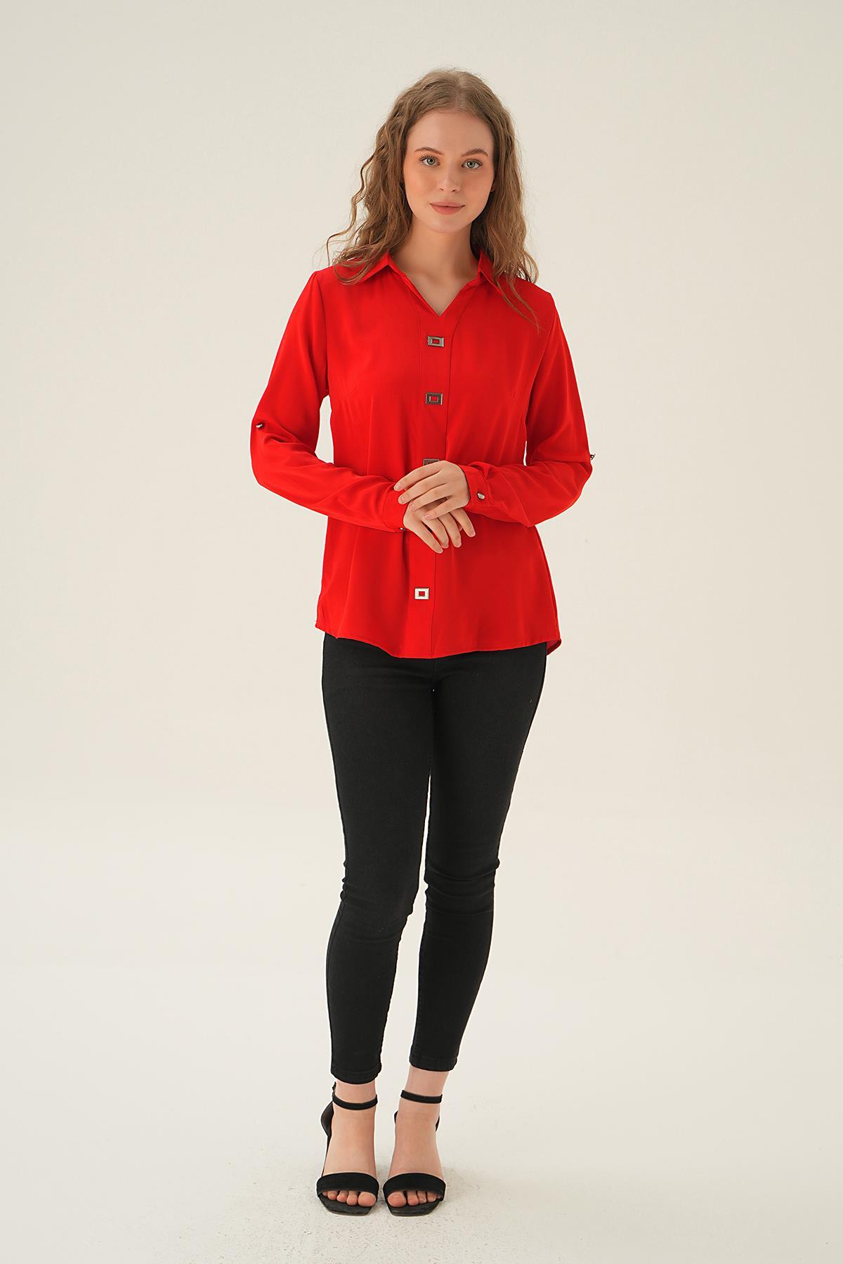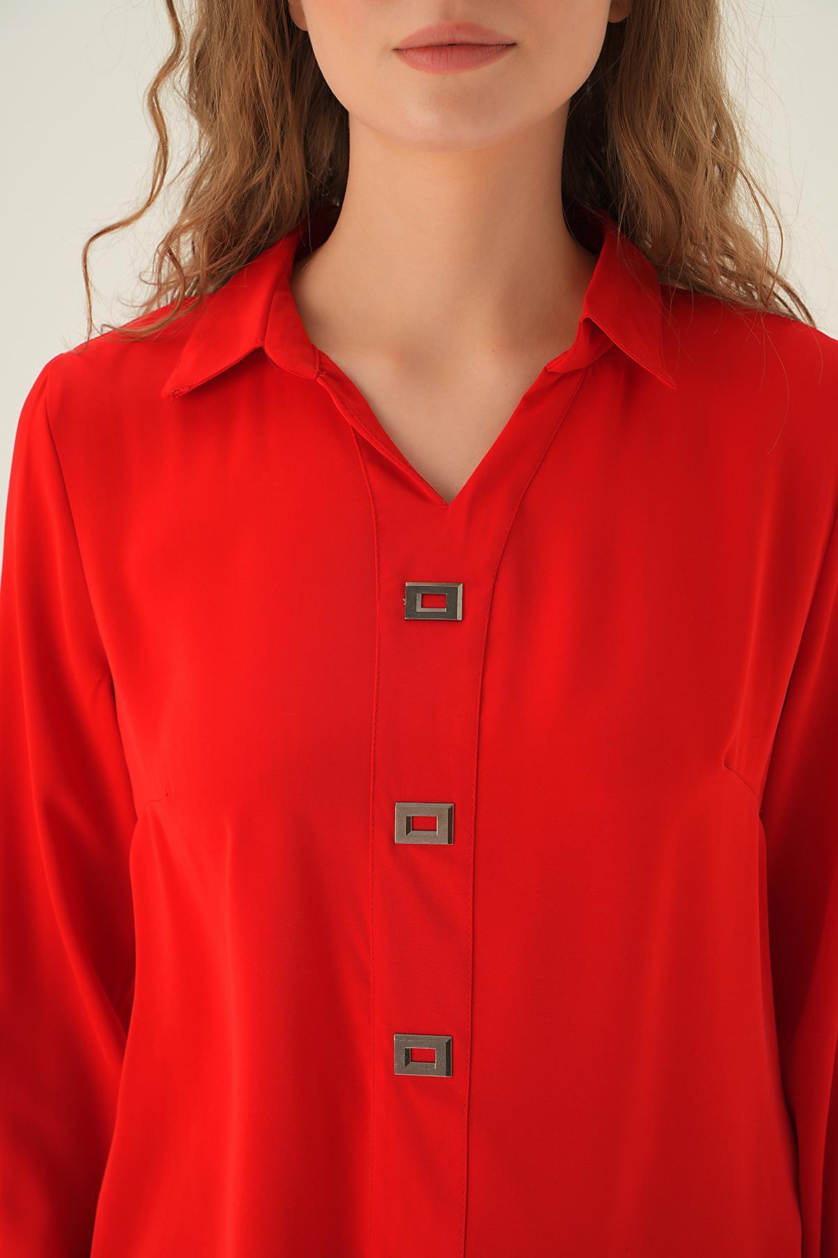 Kırmızı Polo Yaka Düğme Detay Tunik 25538