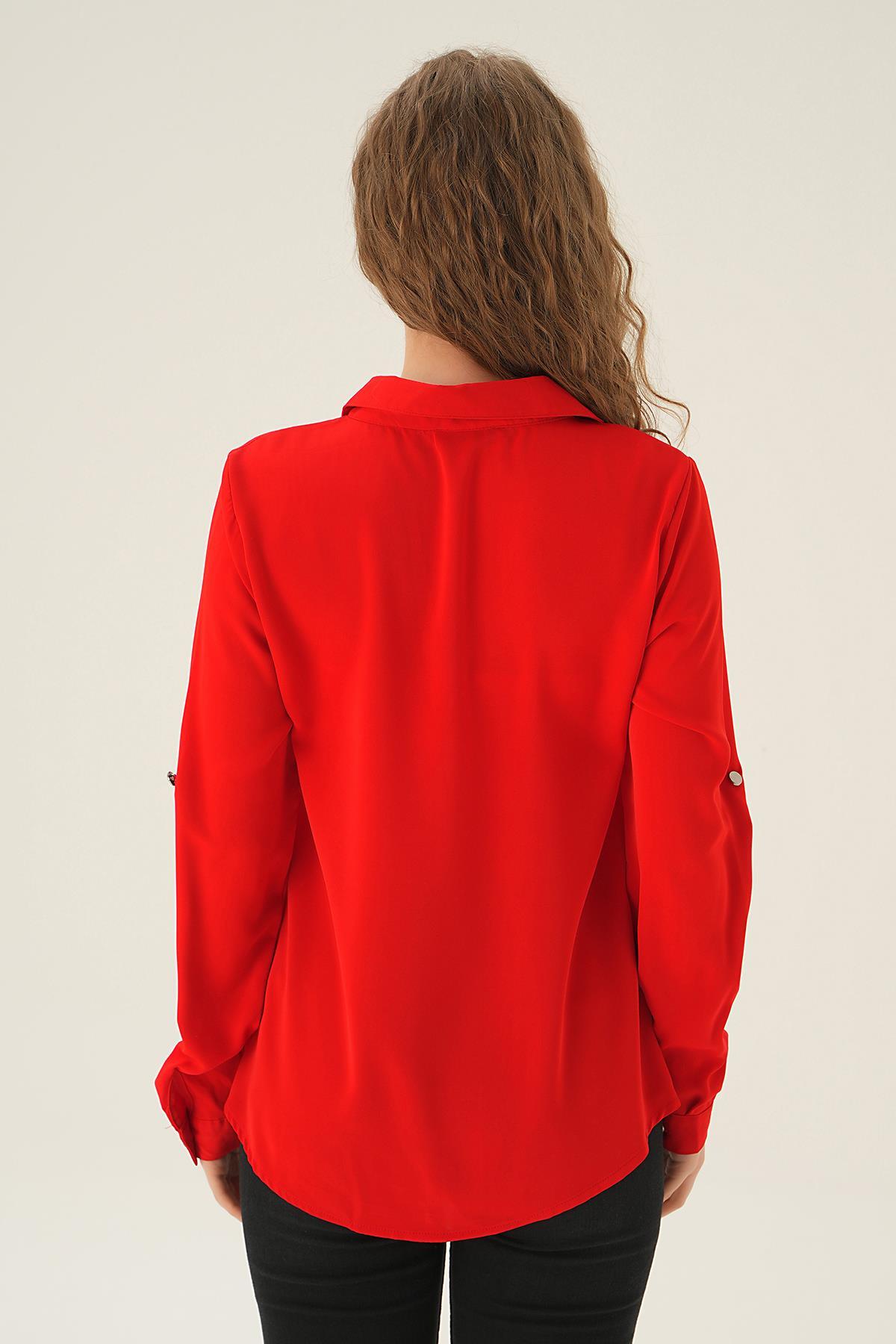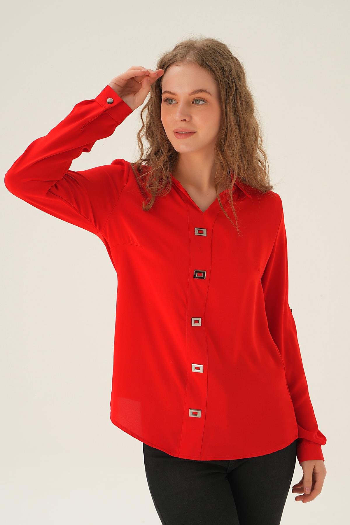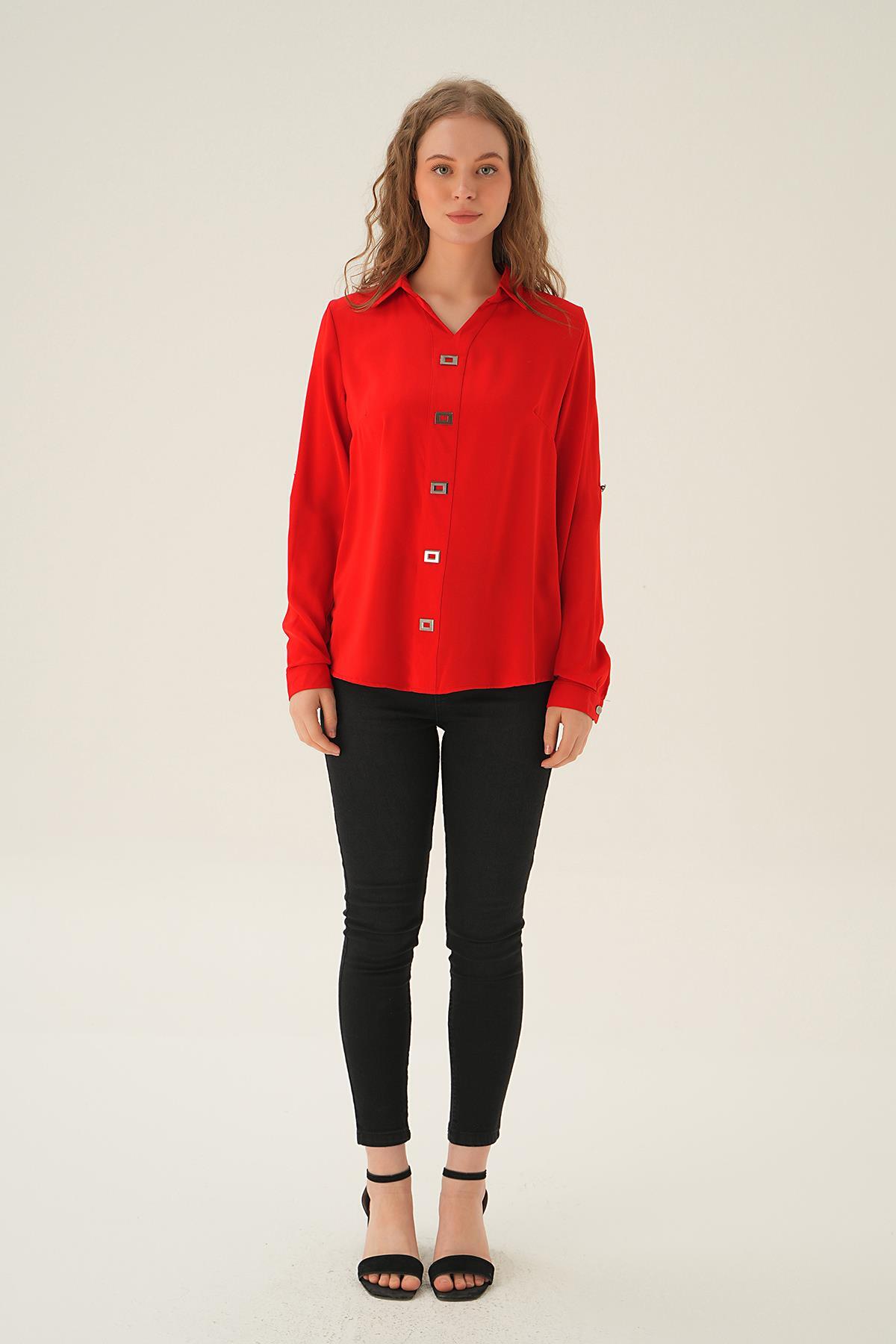 Kırmızı Polo Yaka Düğme Detay Tunik 25538