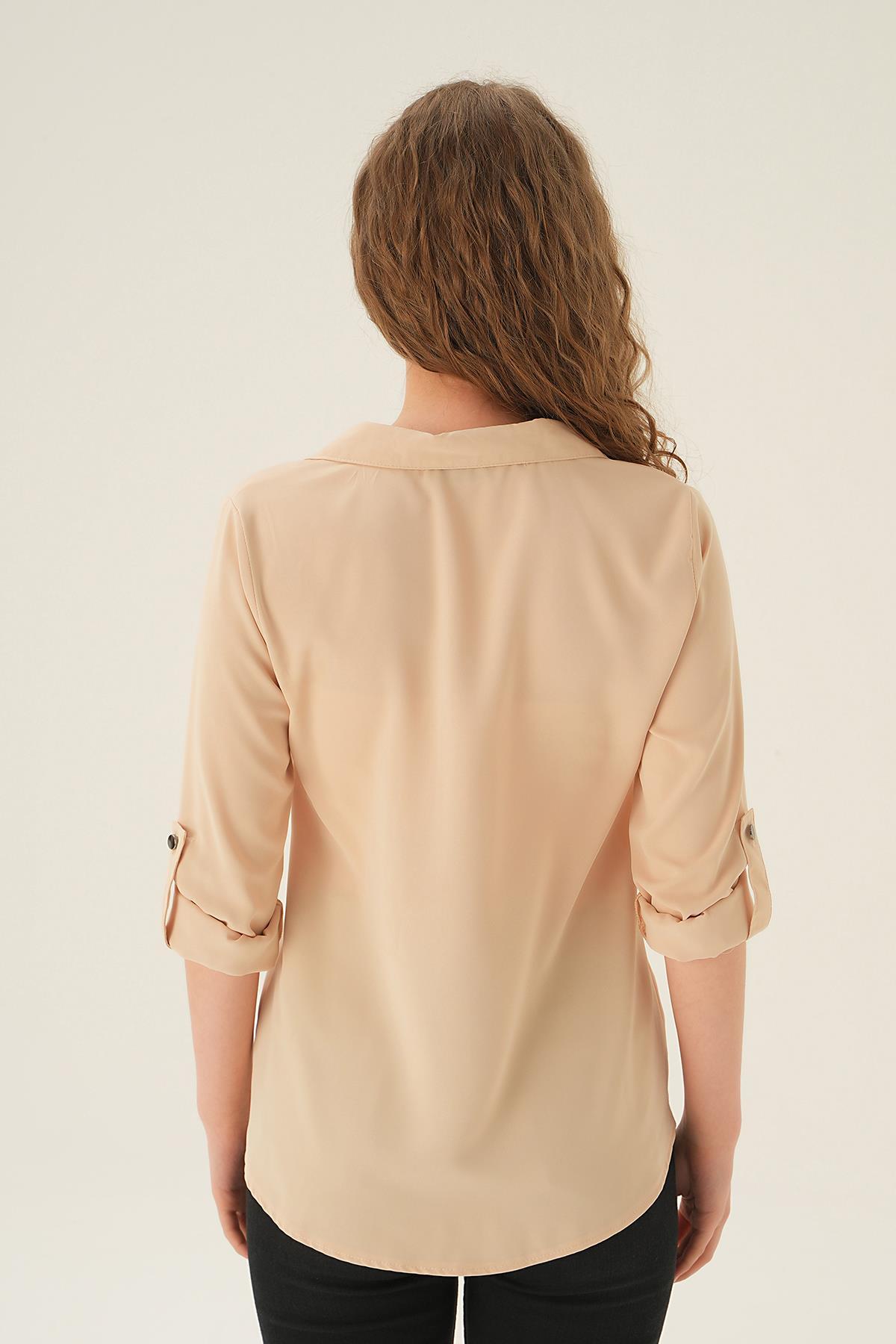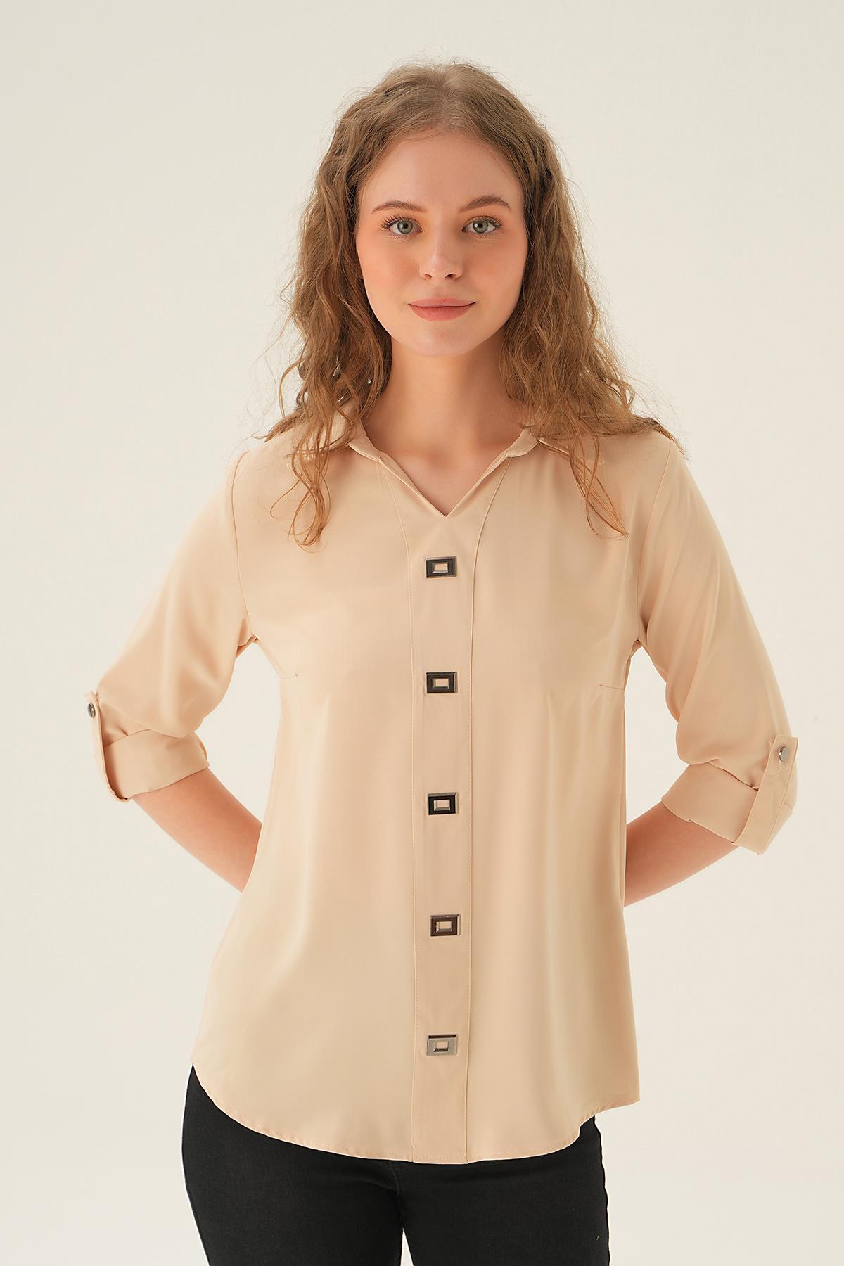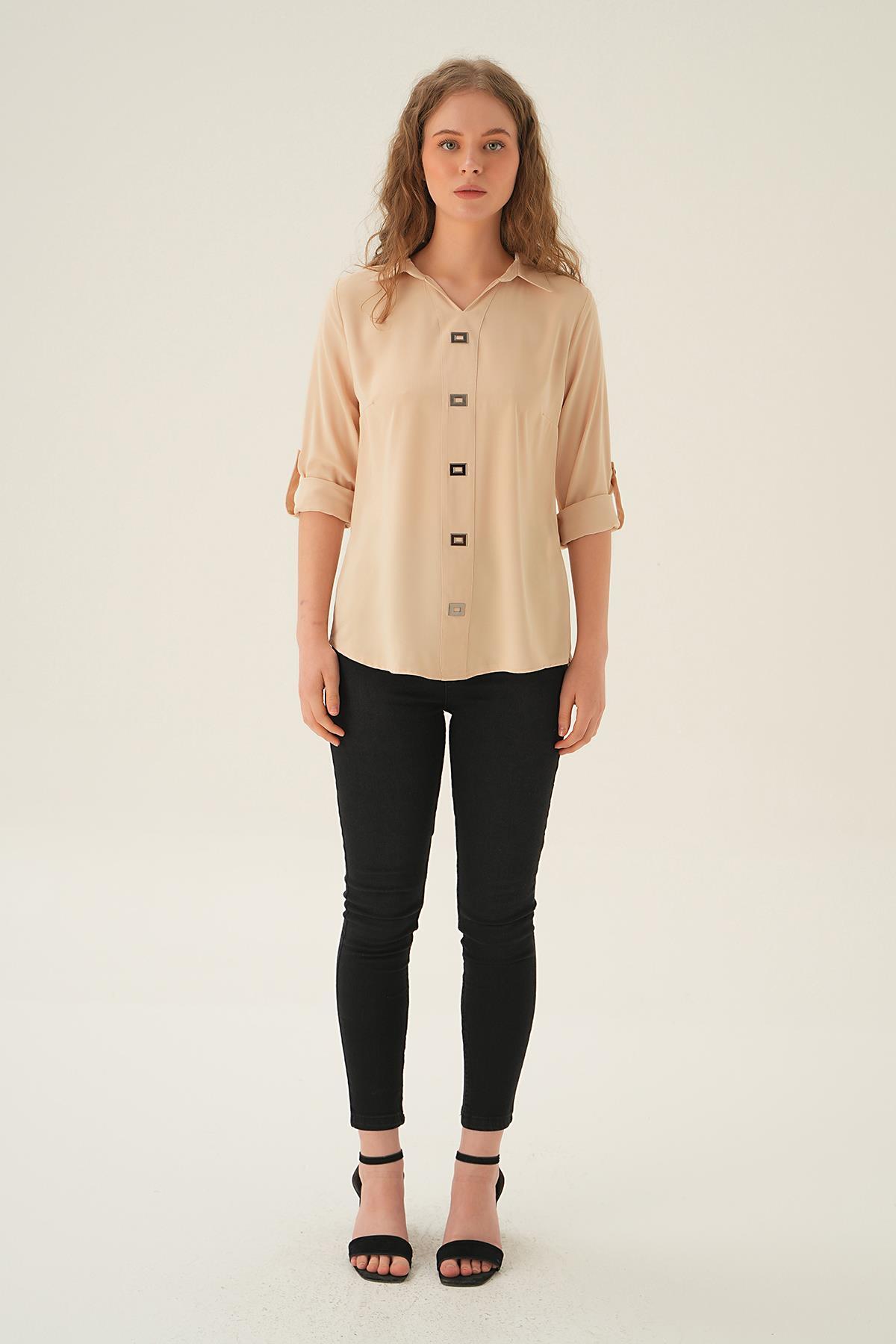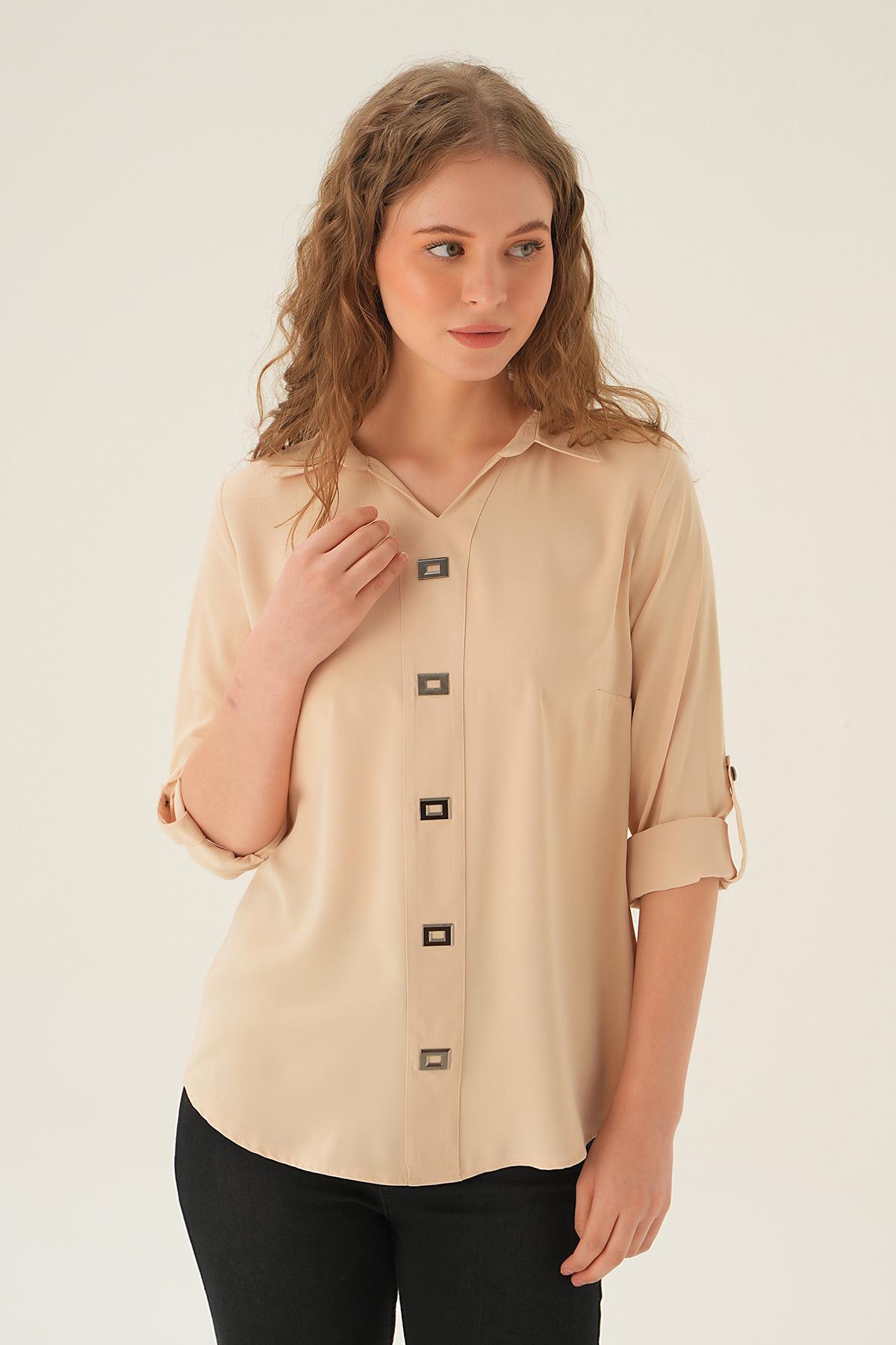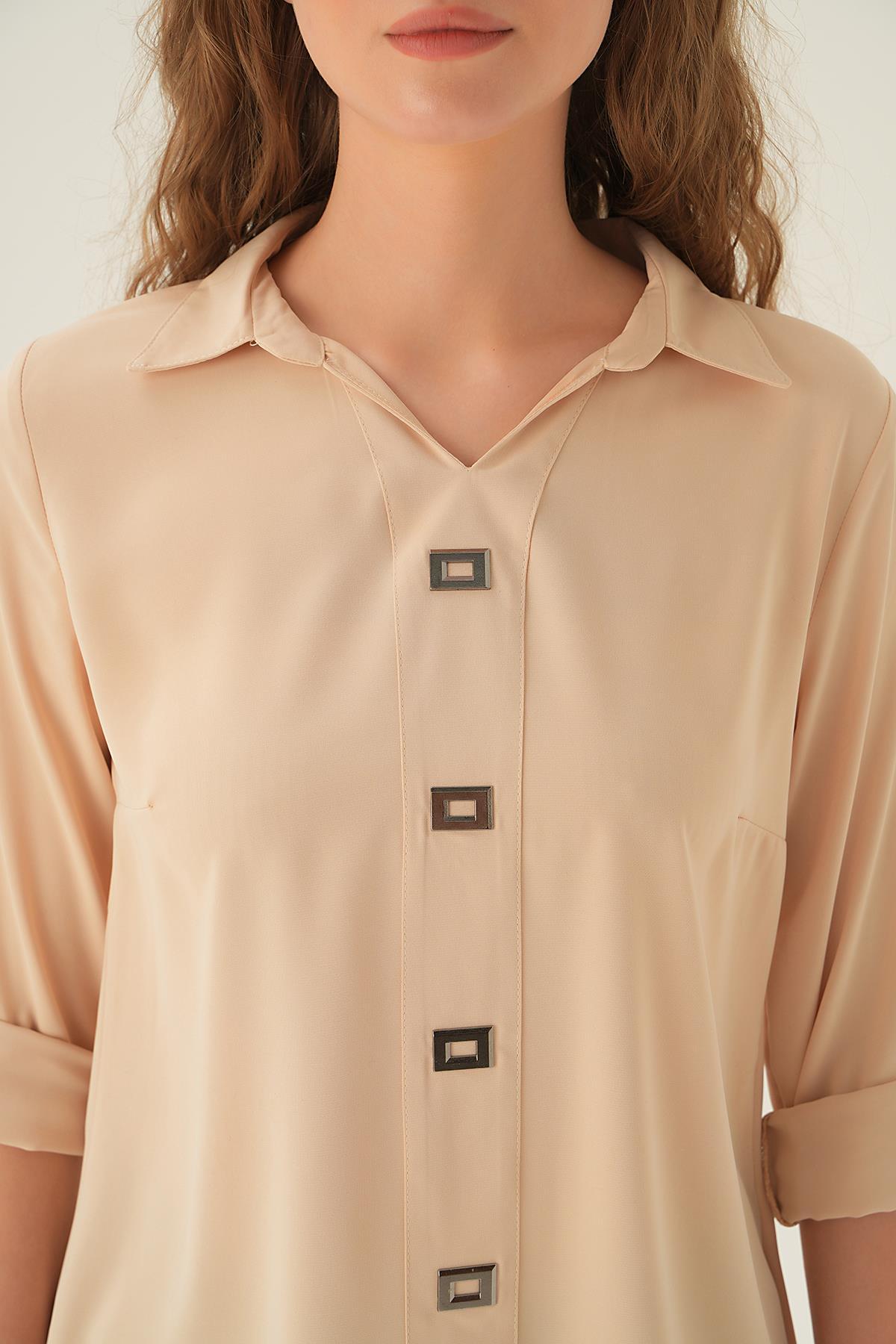 Krem Polo Yaka Düğme Detay Tunik 25538