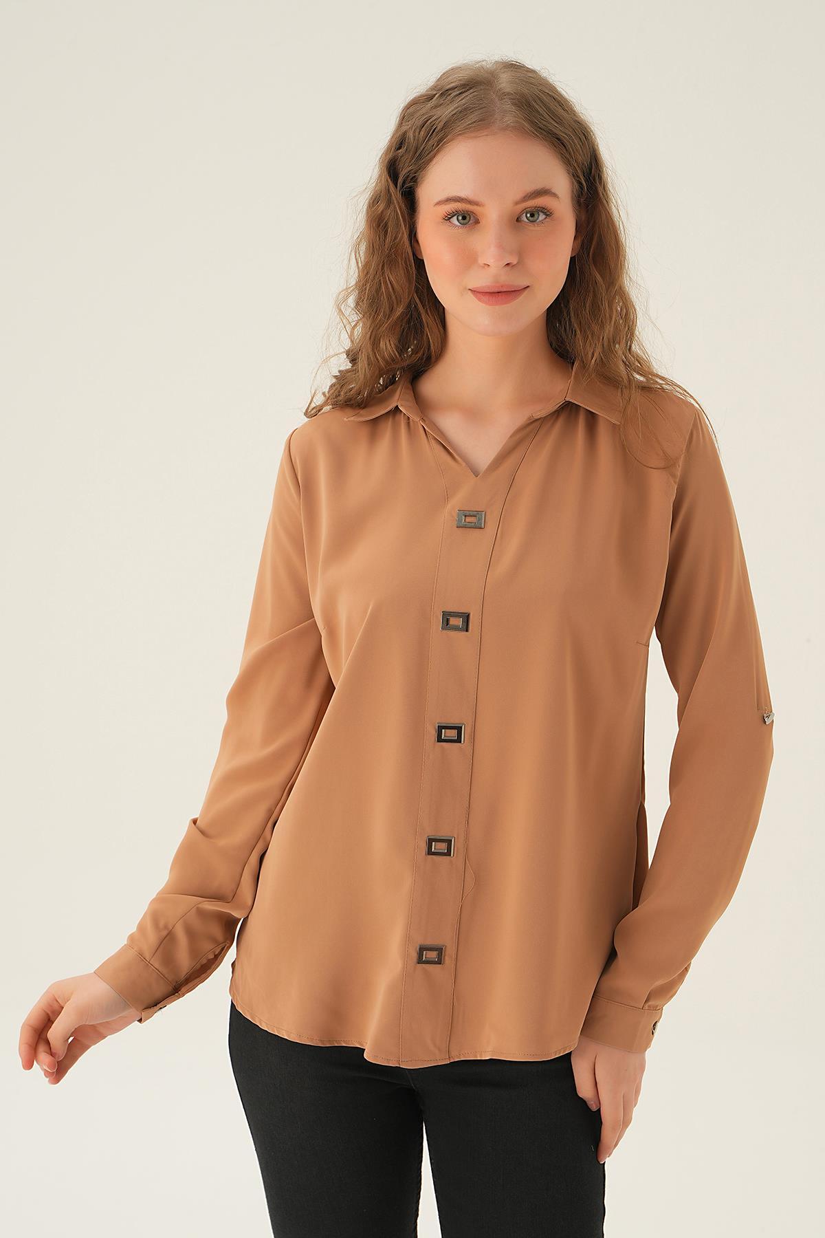 Vizon Polo Yaka Düğme Detay Tunik 25538