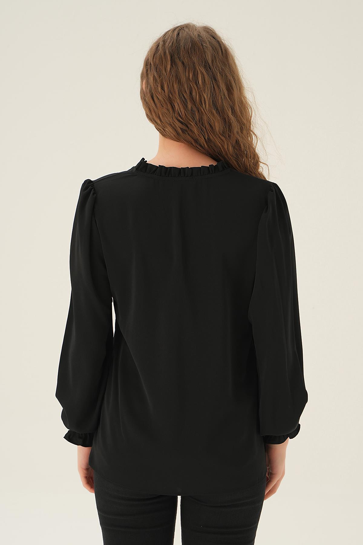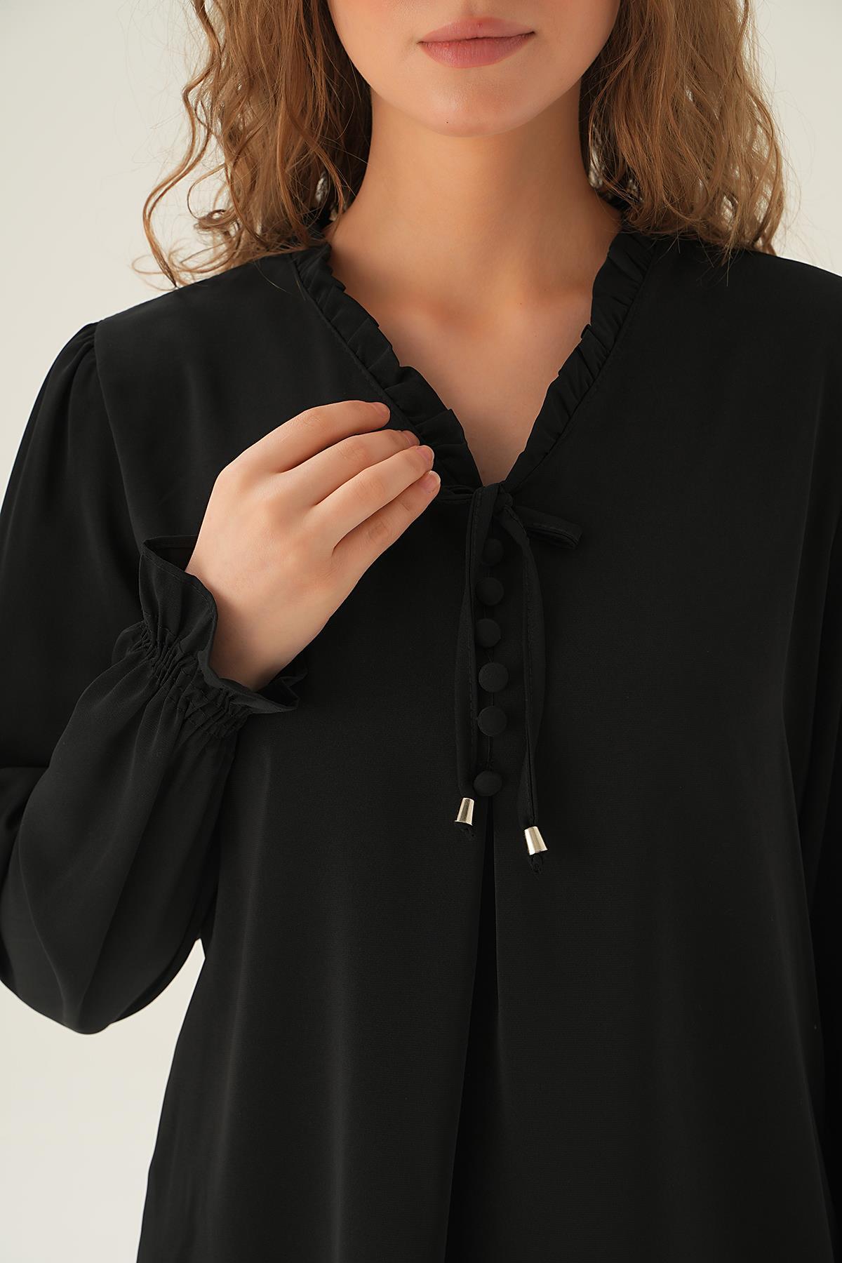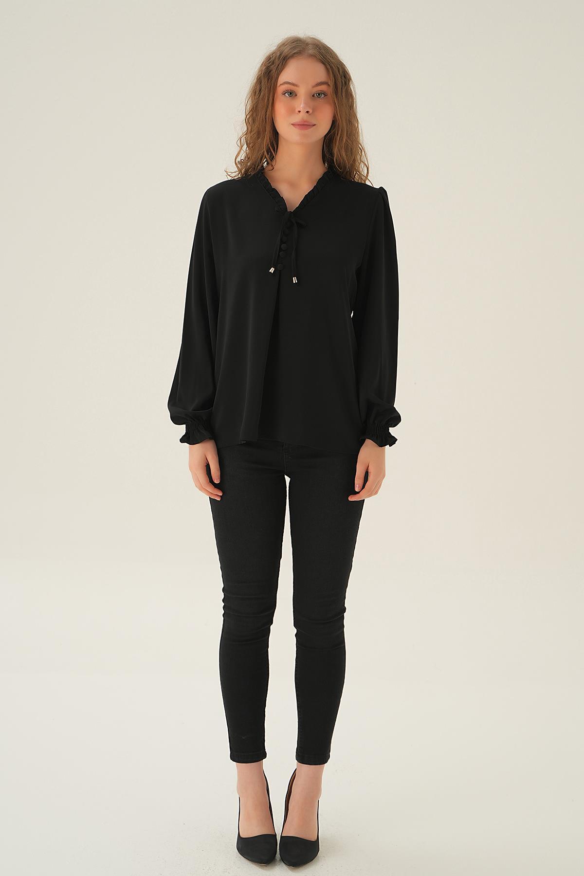 Siyah Yaka Bağlamalı Bluz 25541