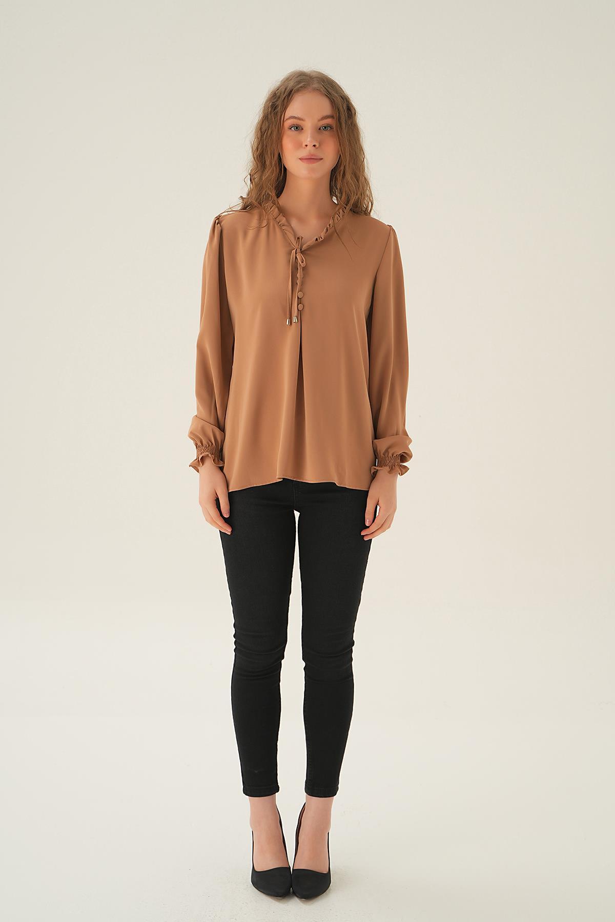 2447 Fermuarlı Uzun Kol Bluz Acı Kahve