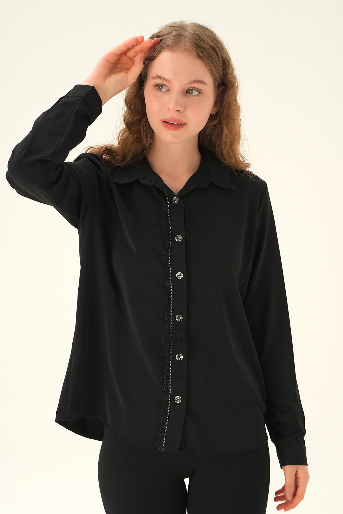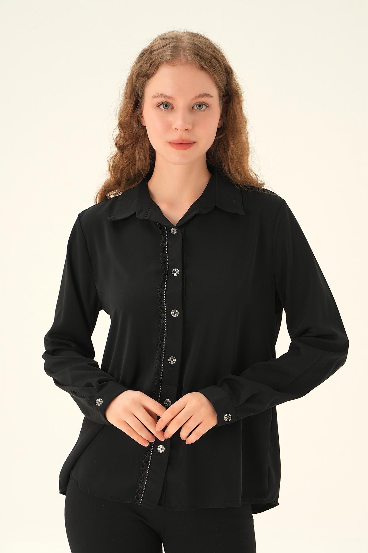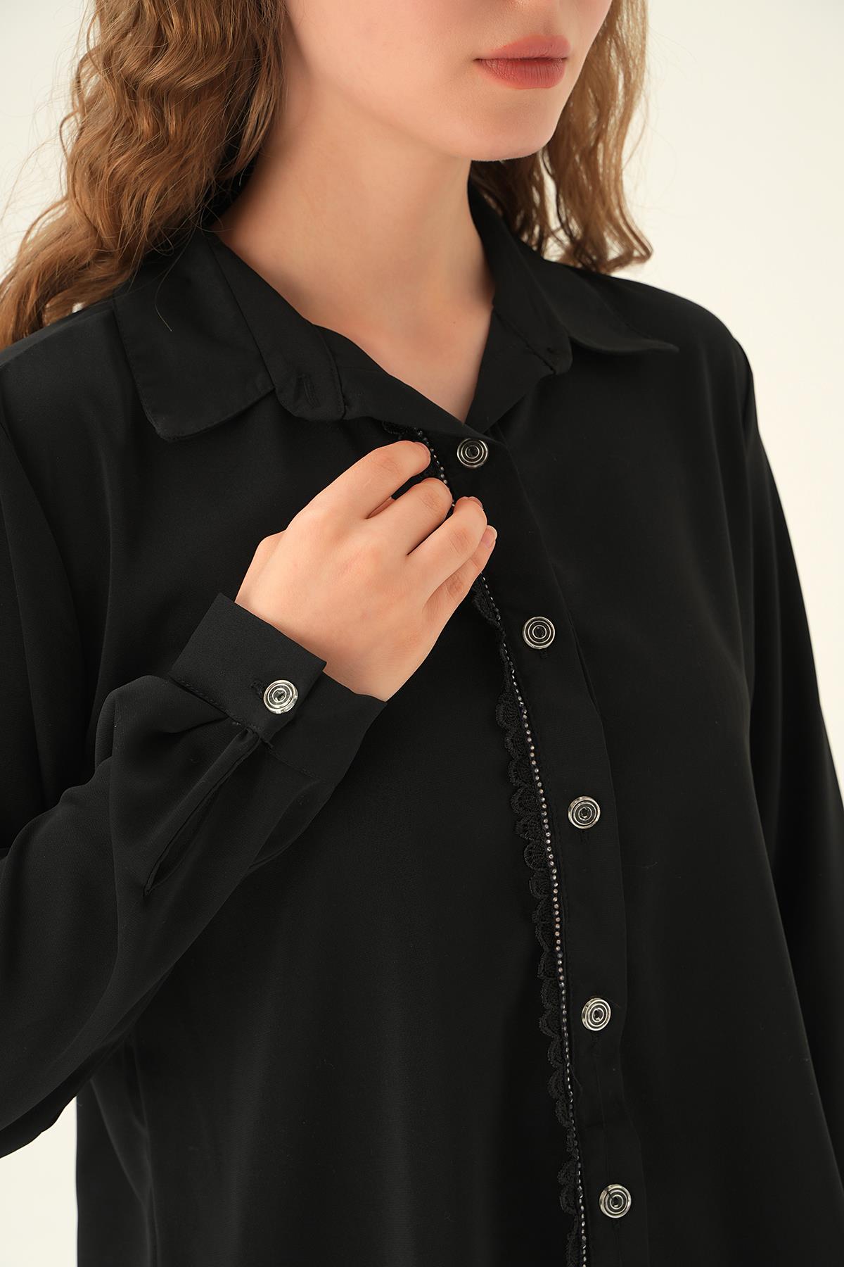 Siyah Dantel Detay Klasik Gömlek 25545