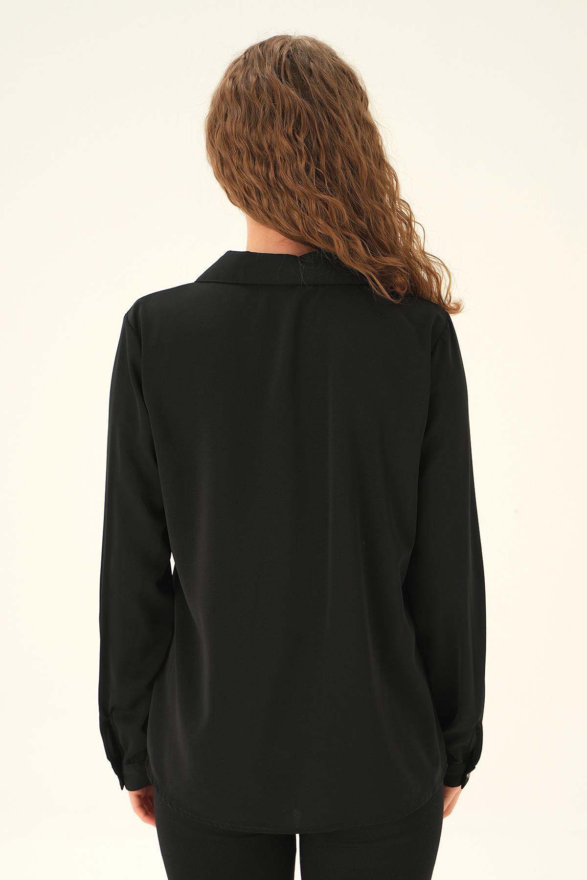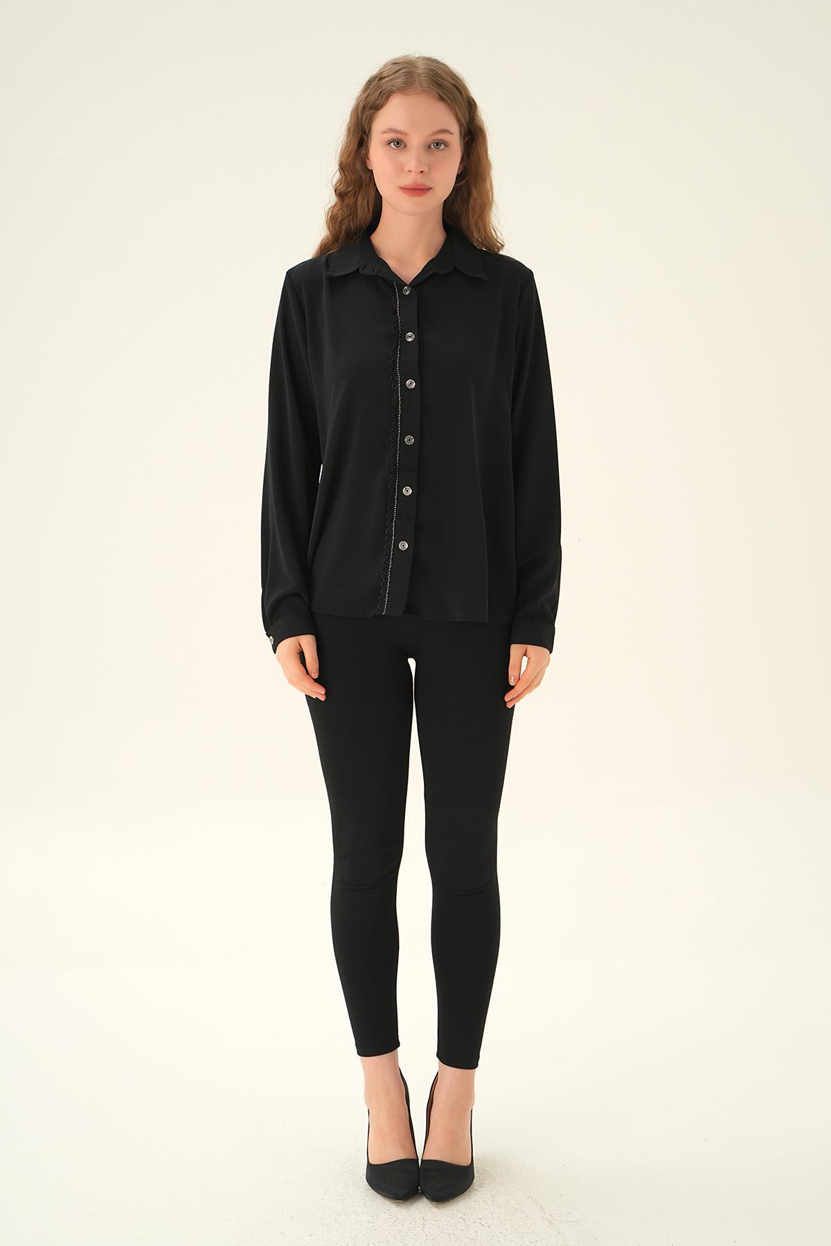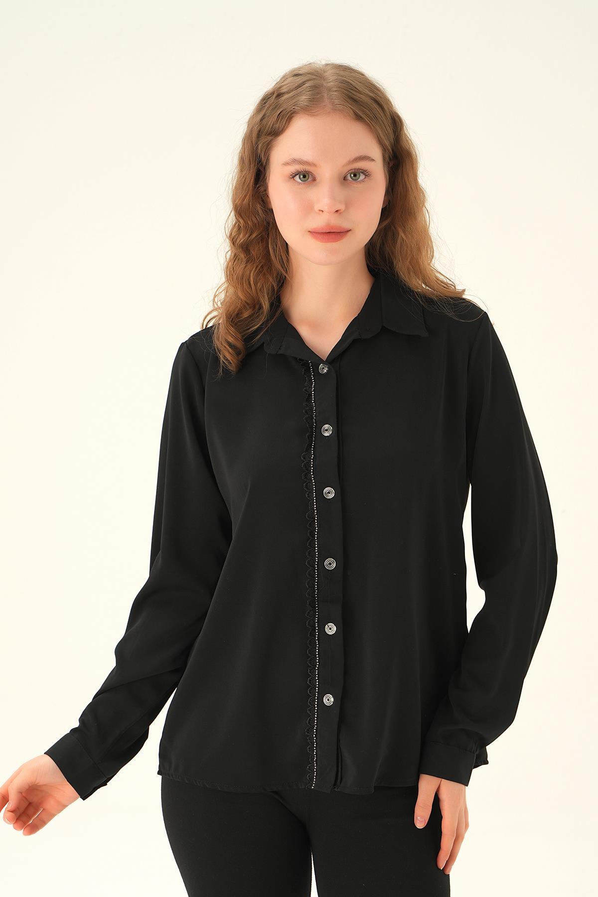 Siyah Dantel Detay Klasik Gömlek 25545