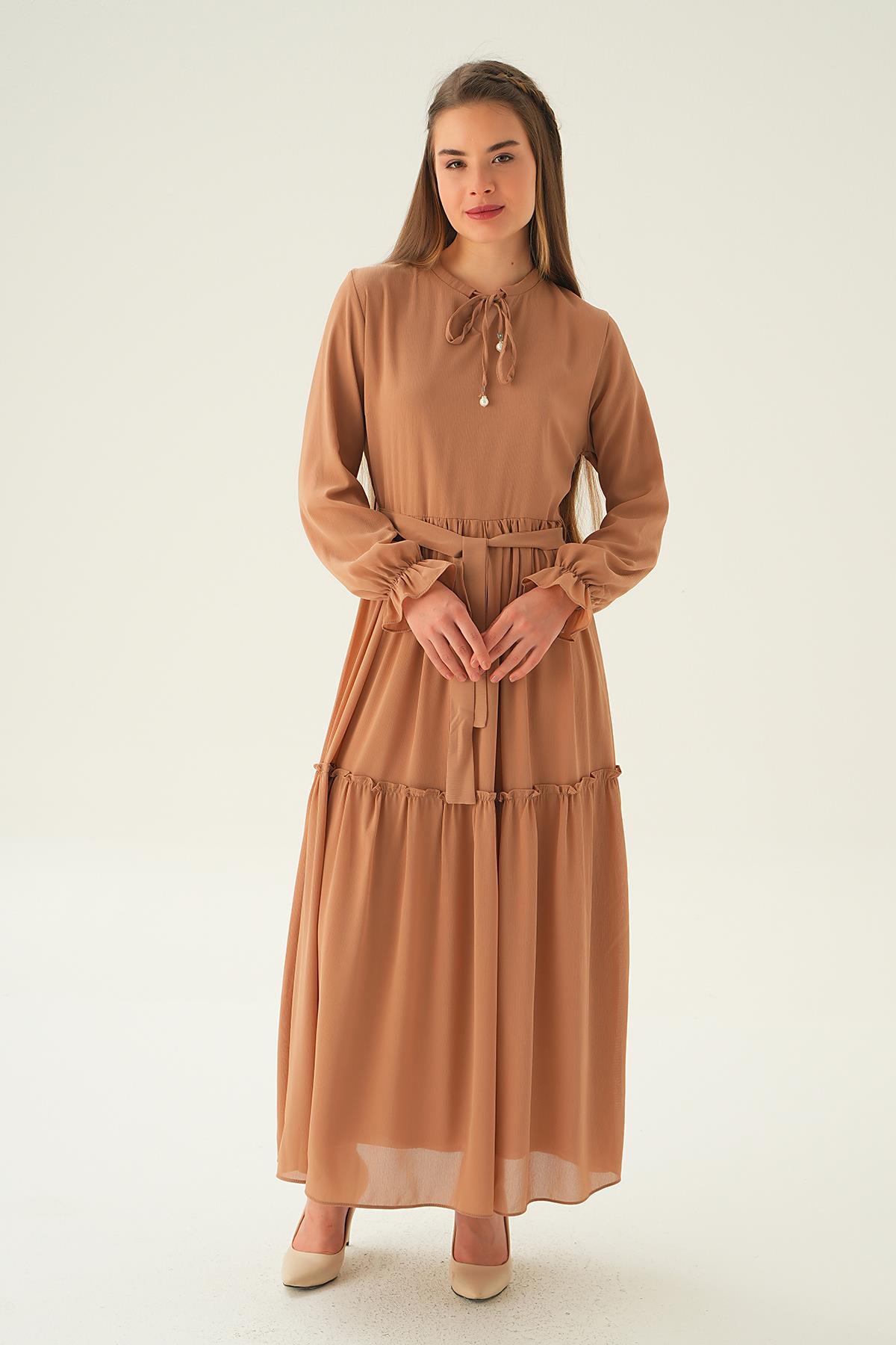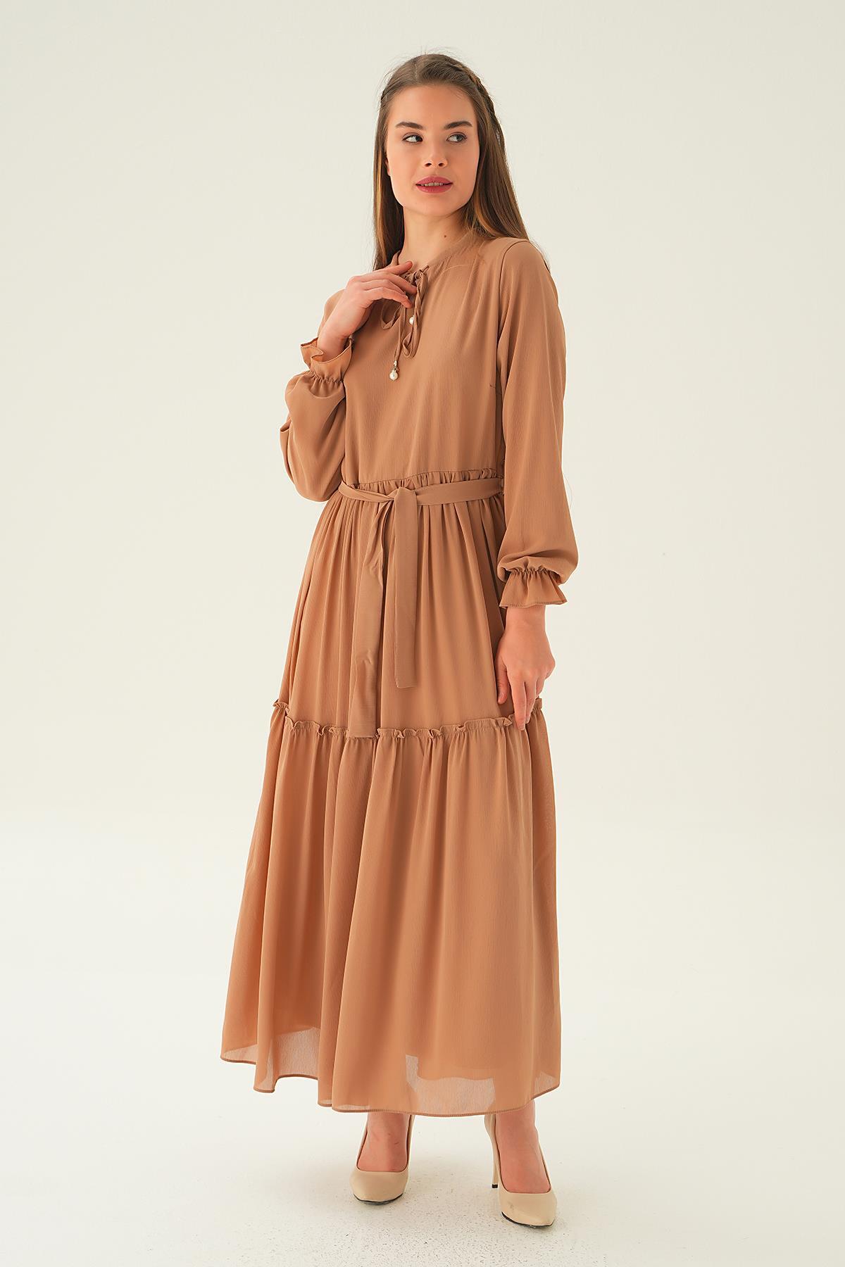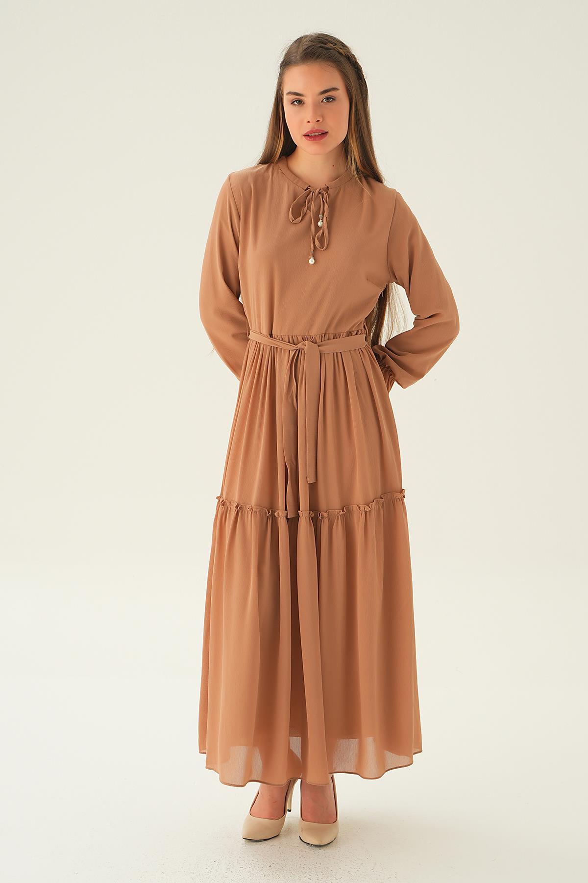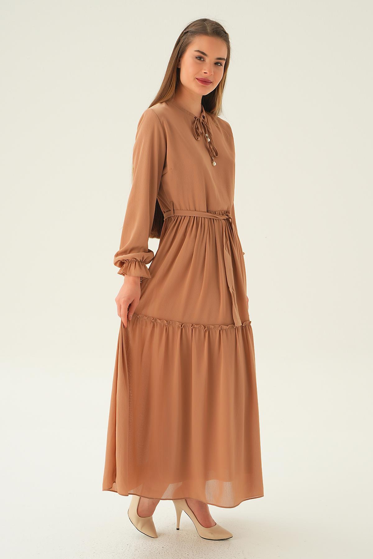 Kahve Düğmeli Kat Kat Elbise 2817 - RAYS Kahve Düğmeli Kat Kat Elbise 2817 - RAYS (1)