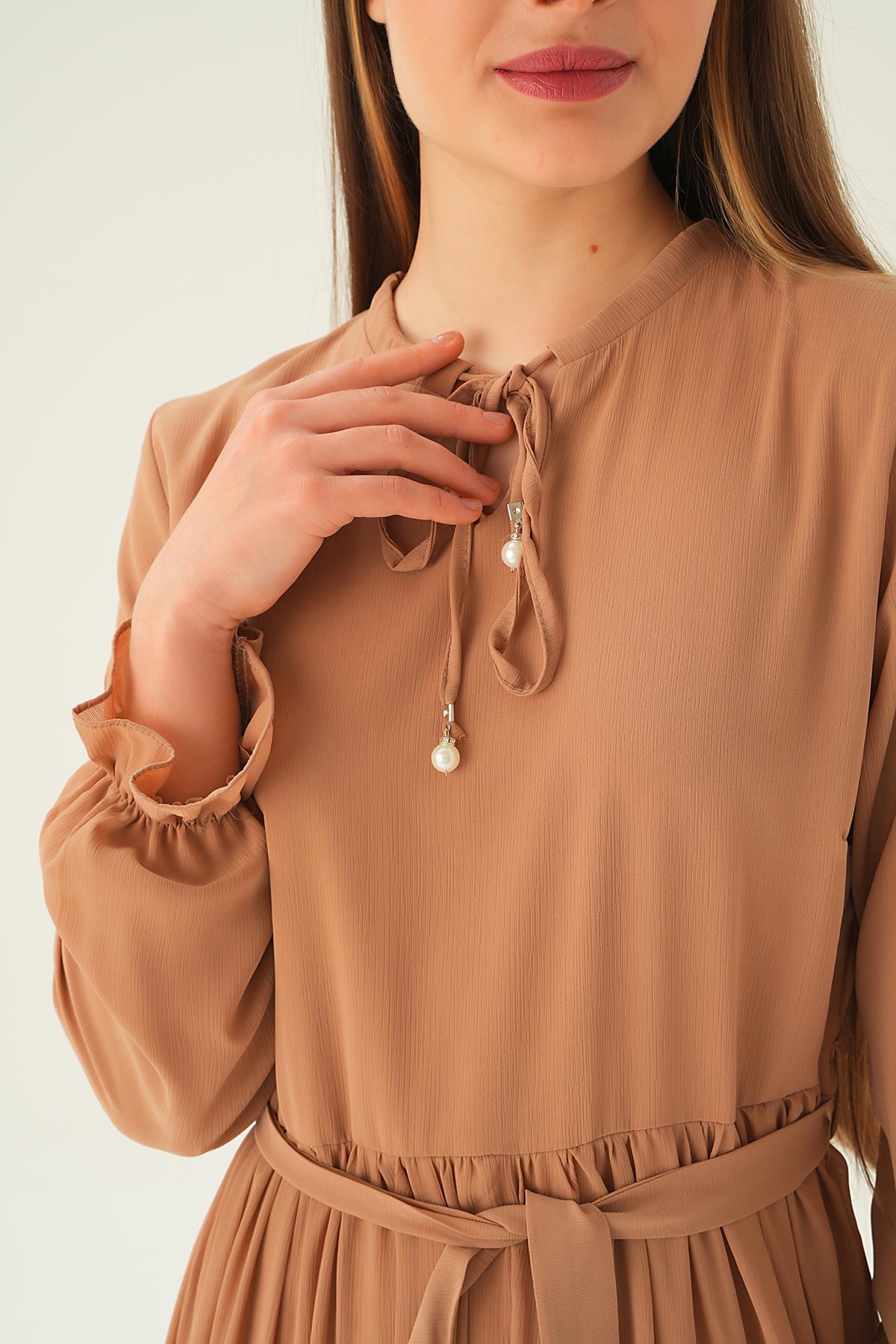Kahve Desenli Bel Bağlama Elbise 2808 - RAYS Kahve Desenli Bel Bağlama Elbise 2808 - RAYS (1)