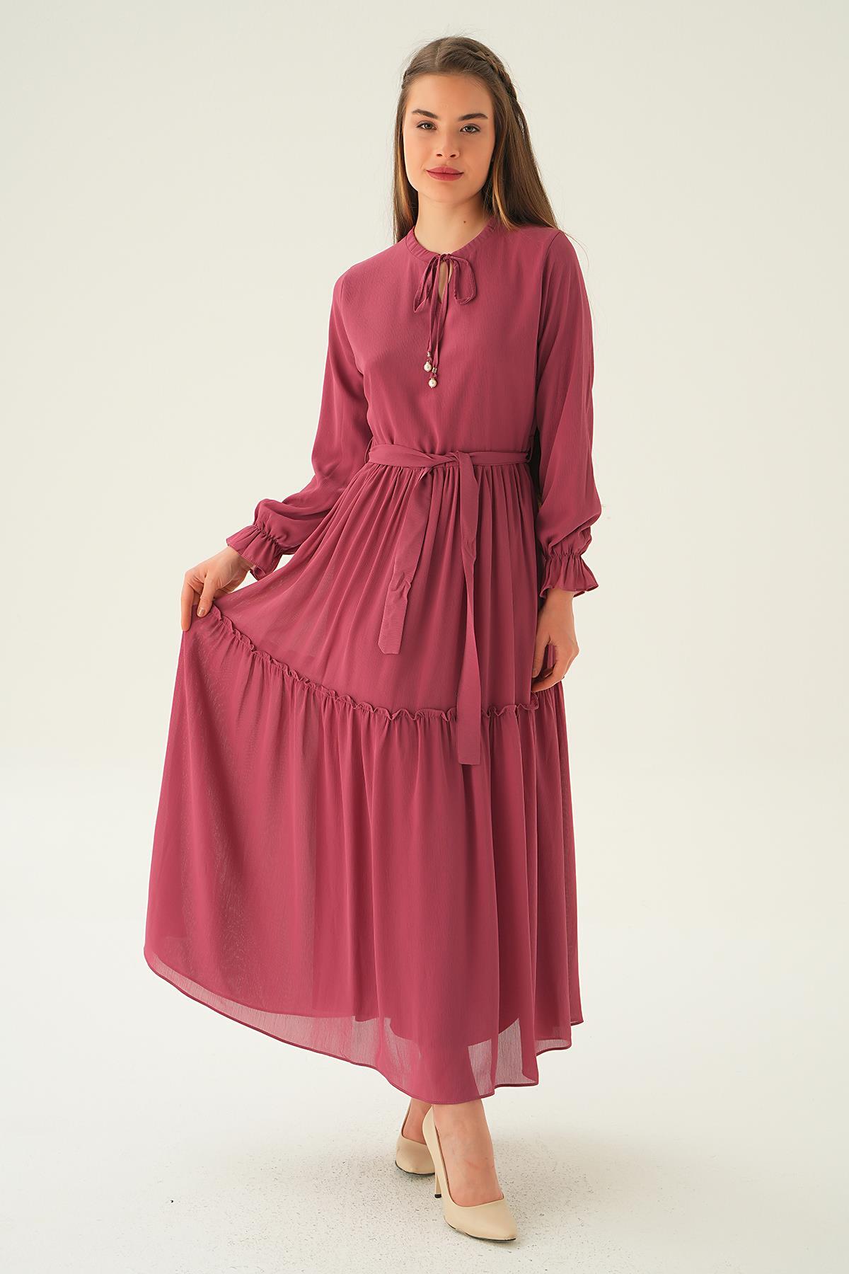 4470A Yan Bağlamalı Uzun Elbise Fuşya - RAYS