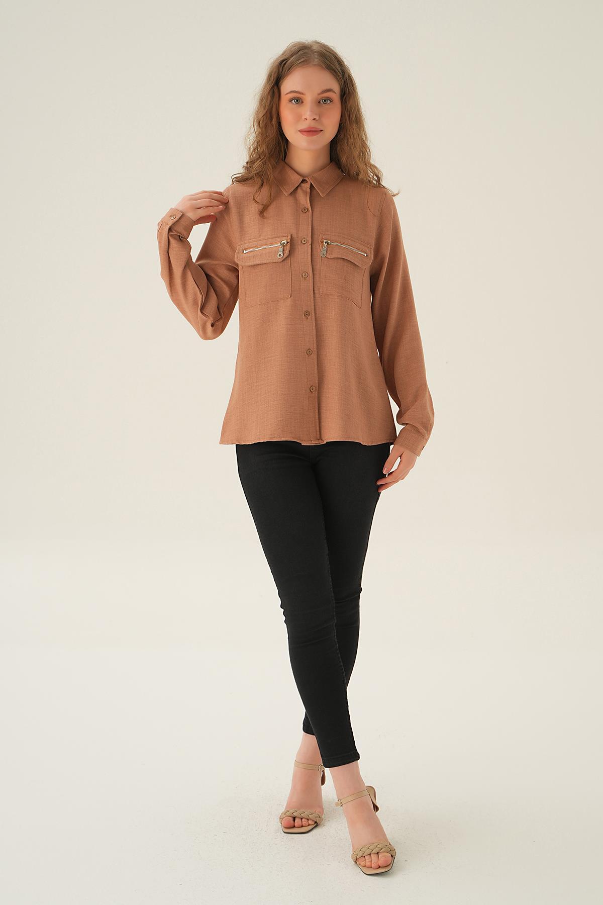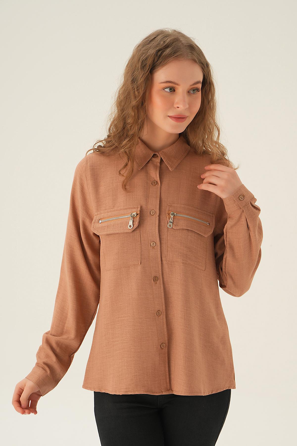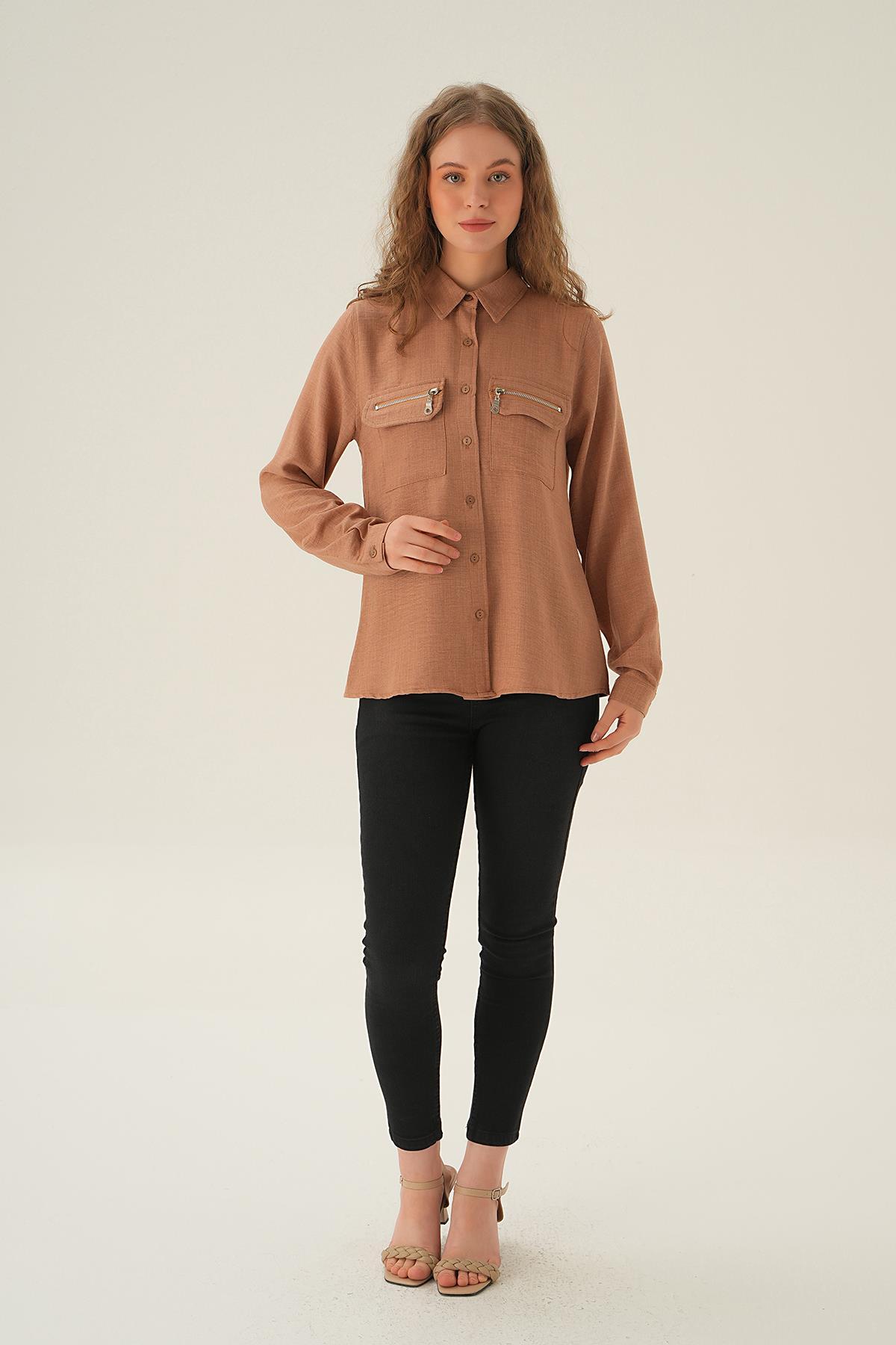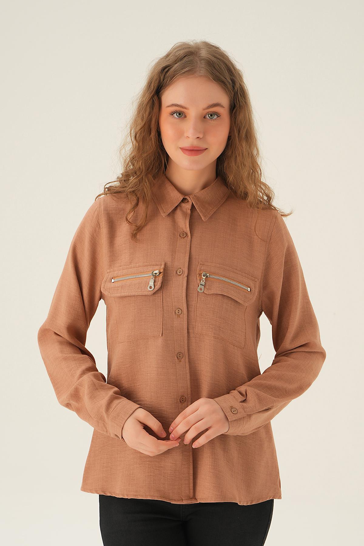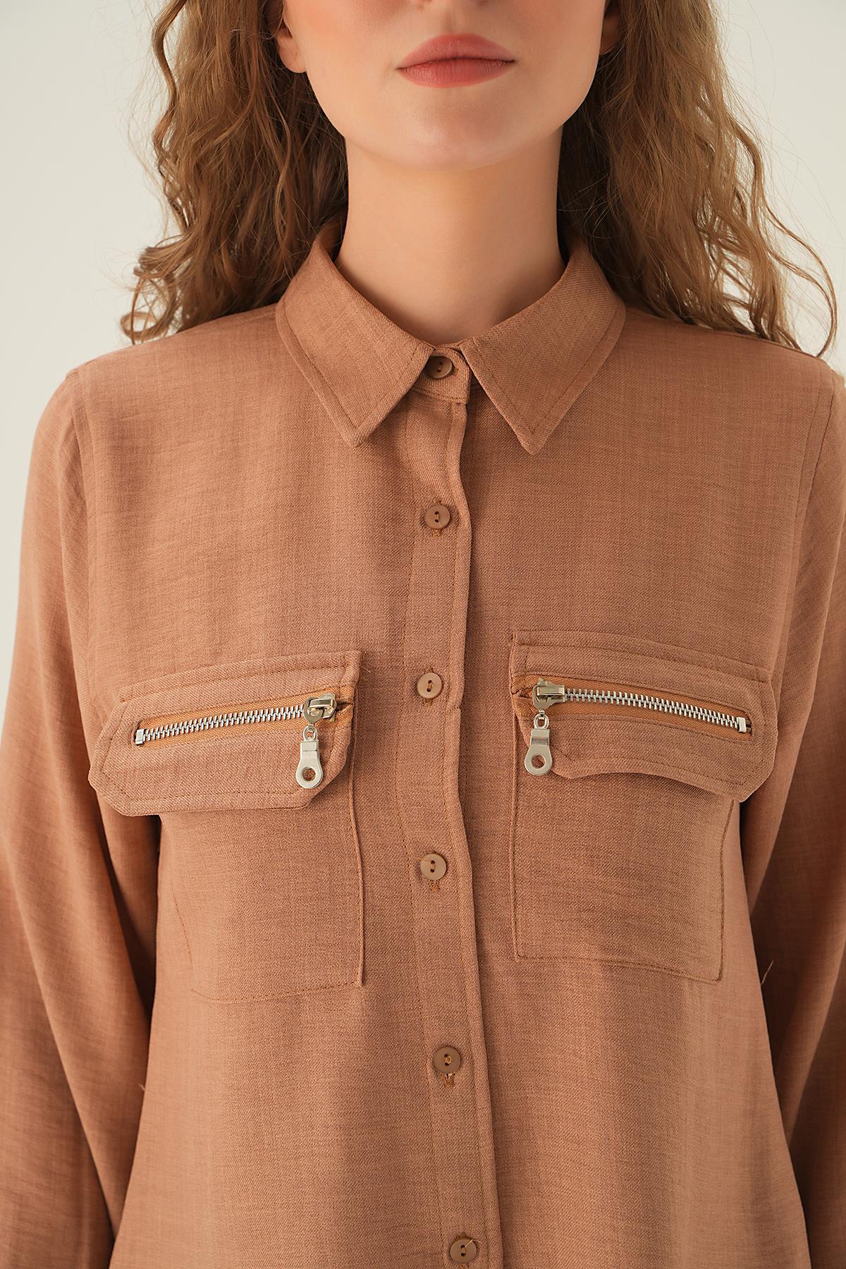 Kahve Çizgili Oversize Gömlek 5460 - RAYS Kahve Çizgili Oversize Gömlek 5460 - RAYS (1)