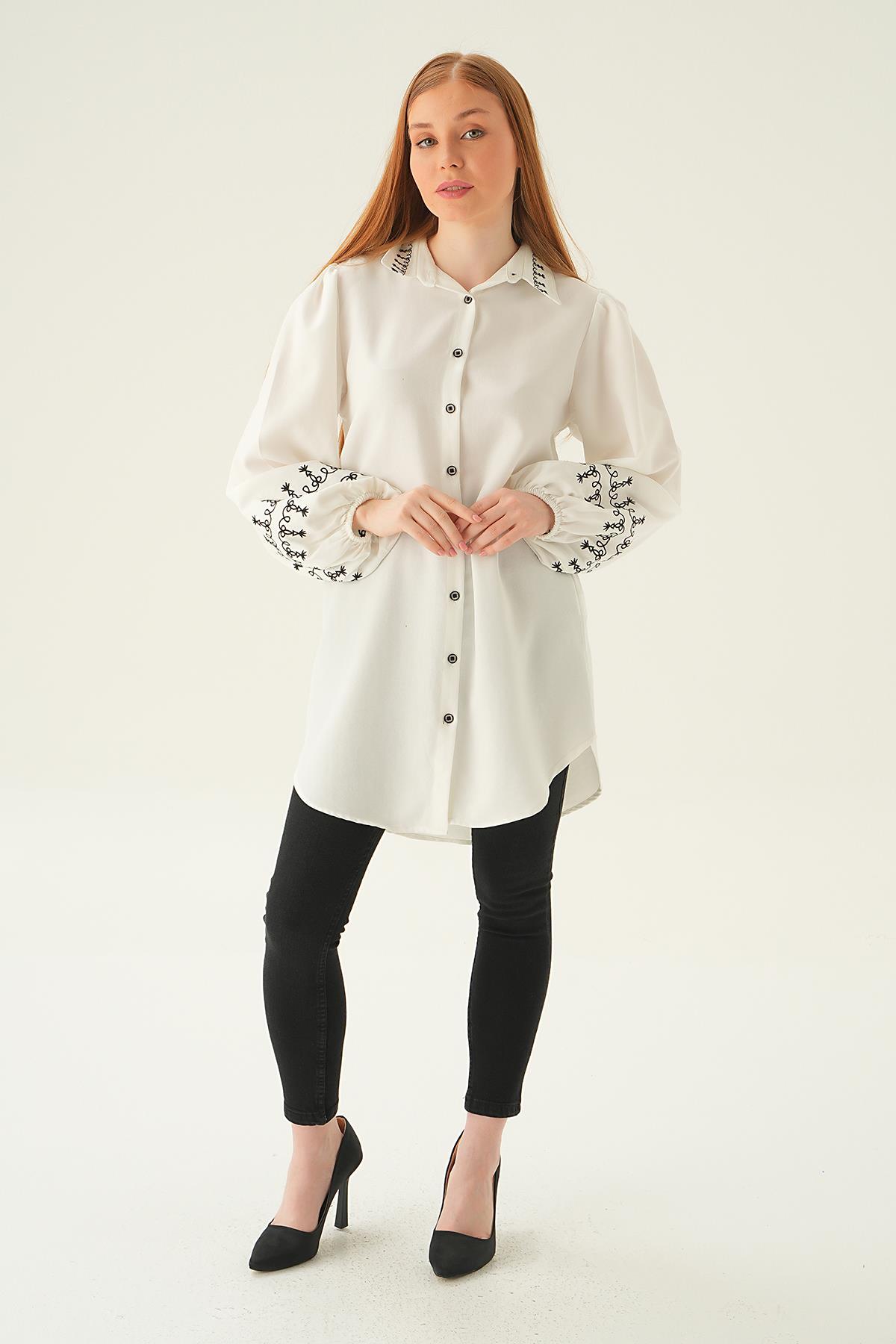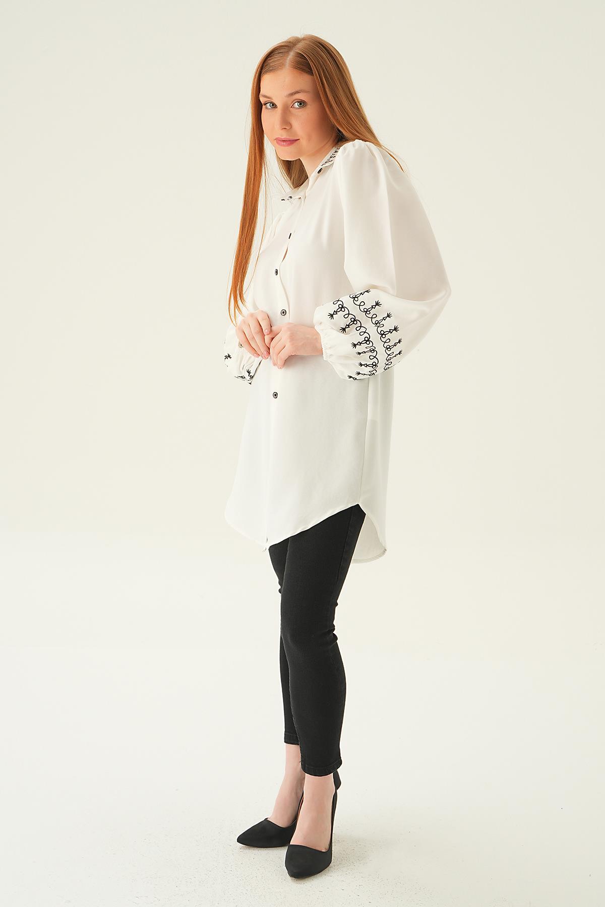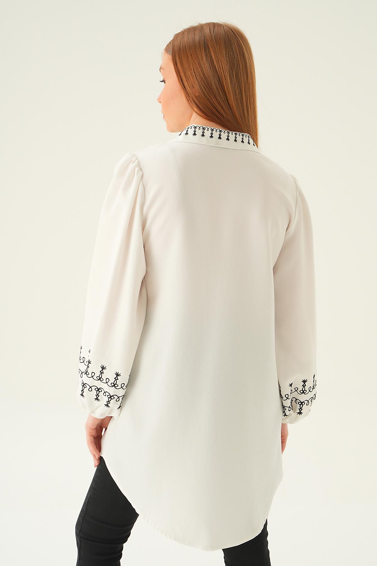 Krem Balon Kol Nakış Detay Tunik 26024