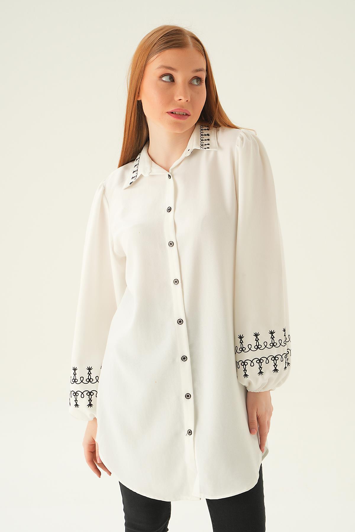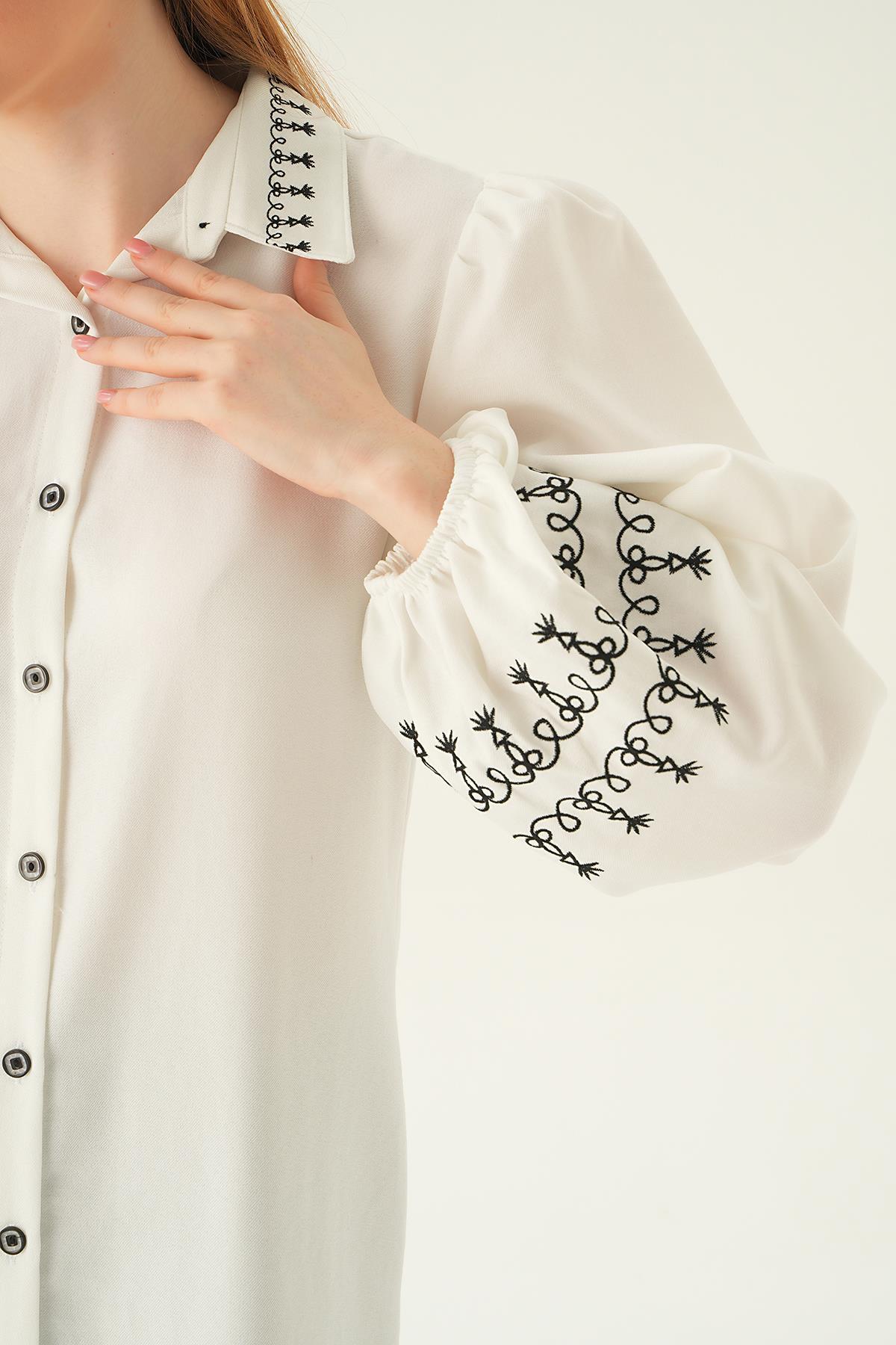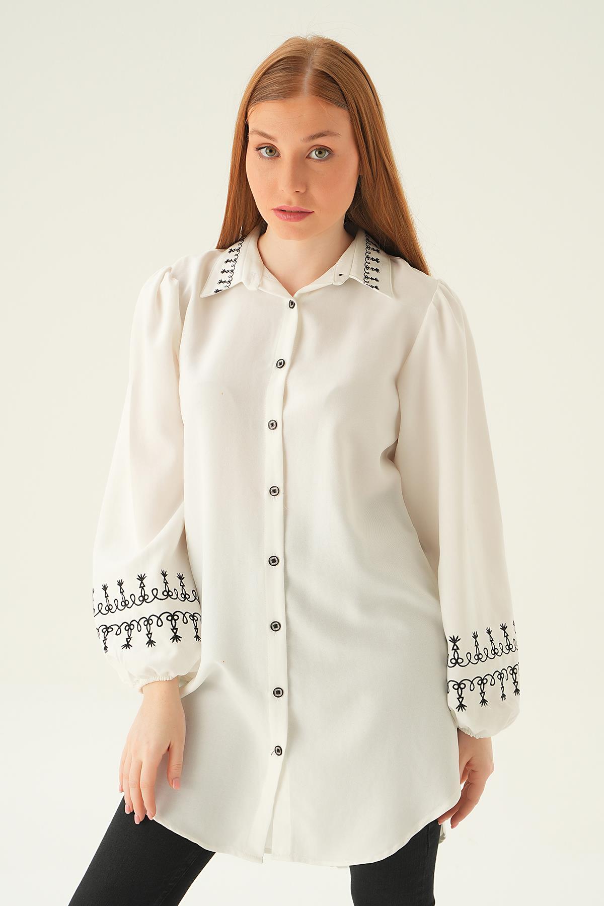 Krem Balon Kol Nakış Detay Tunik 26024