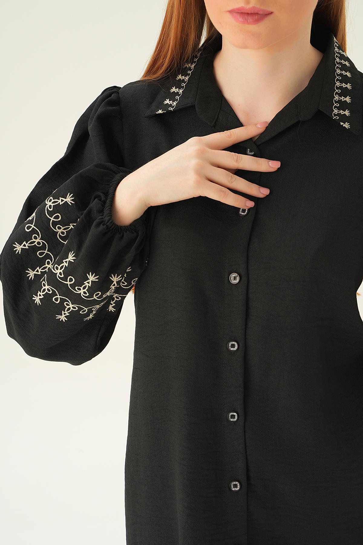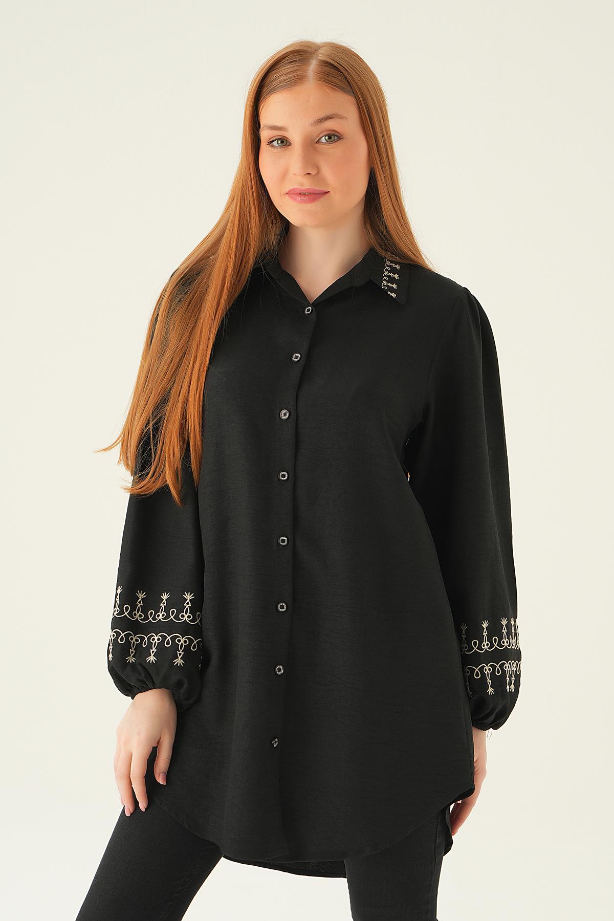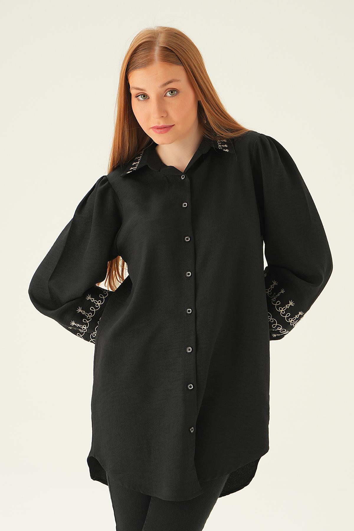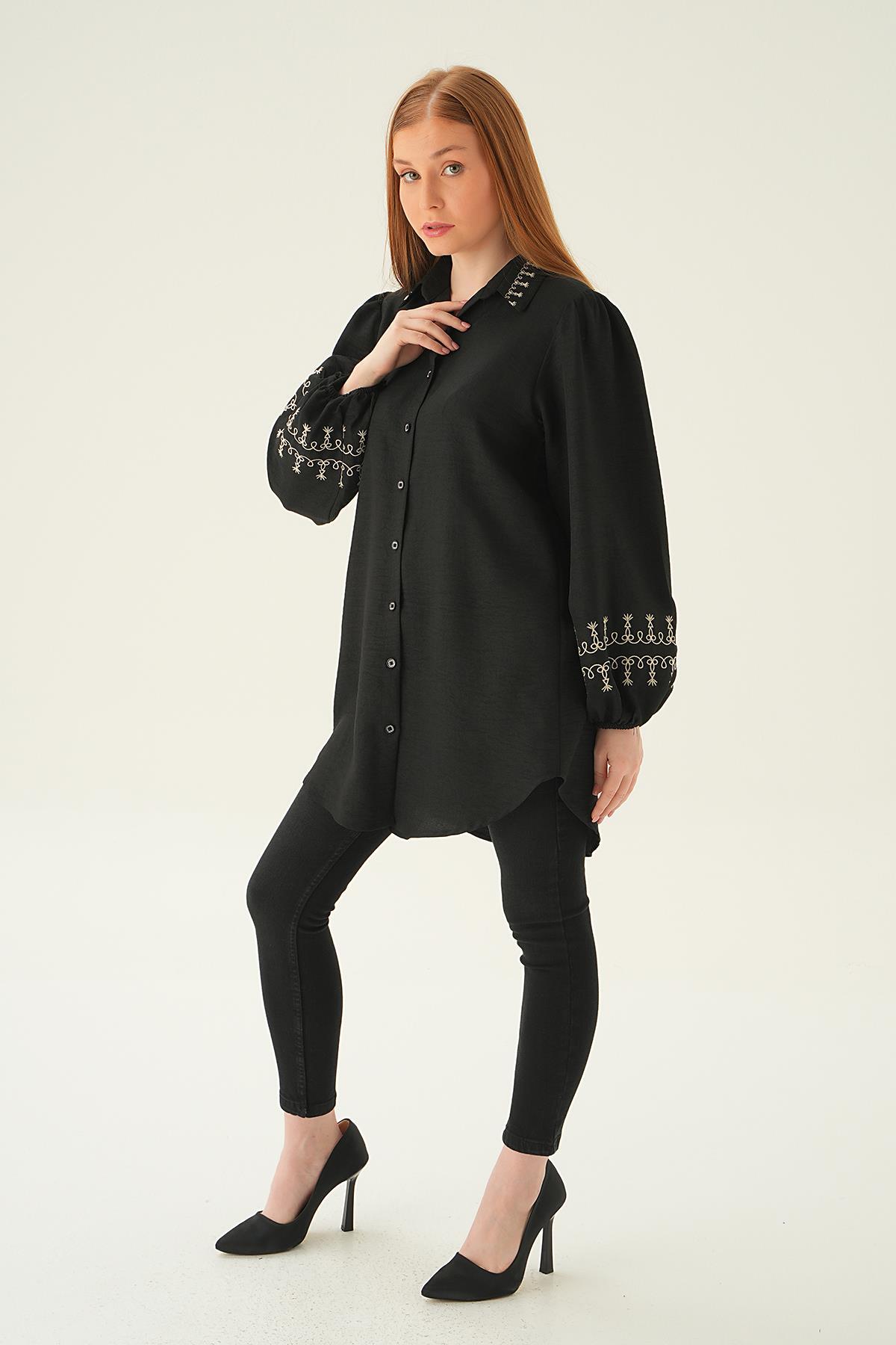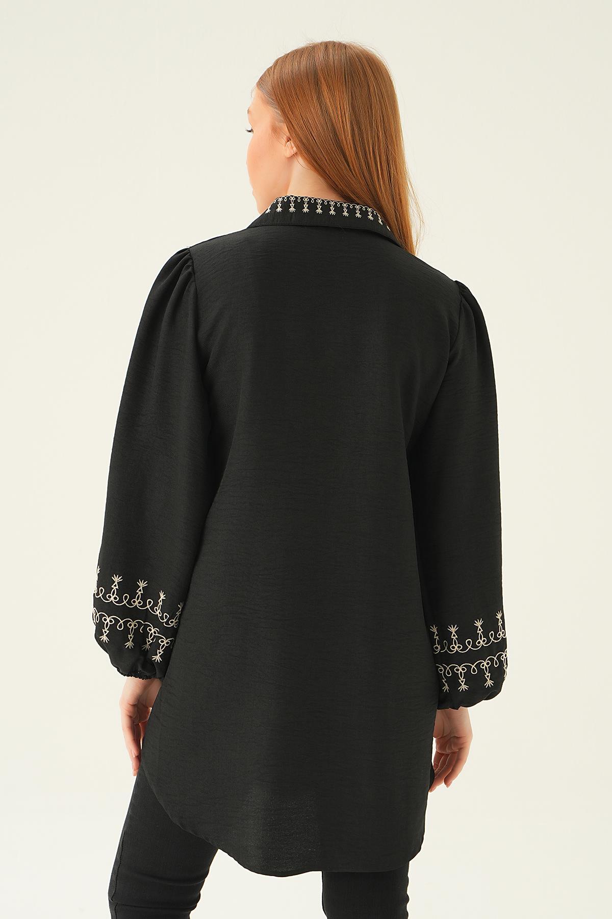 Siyah Balon Kol Nakış Detay Tunik 26024