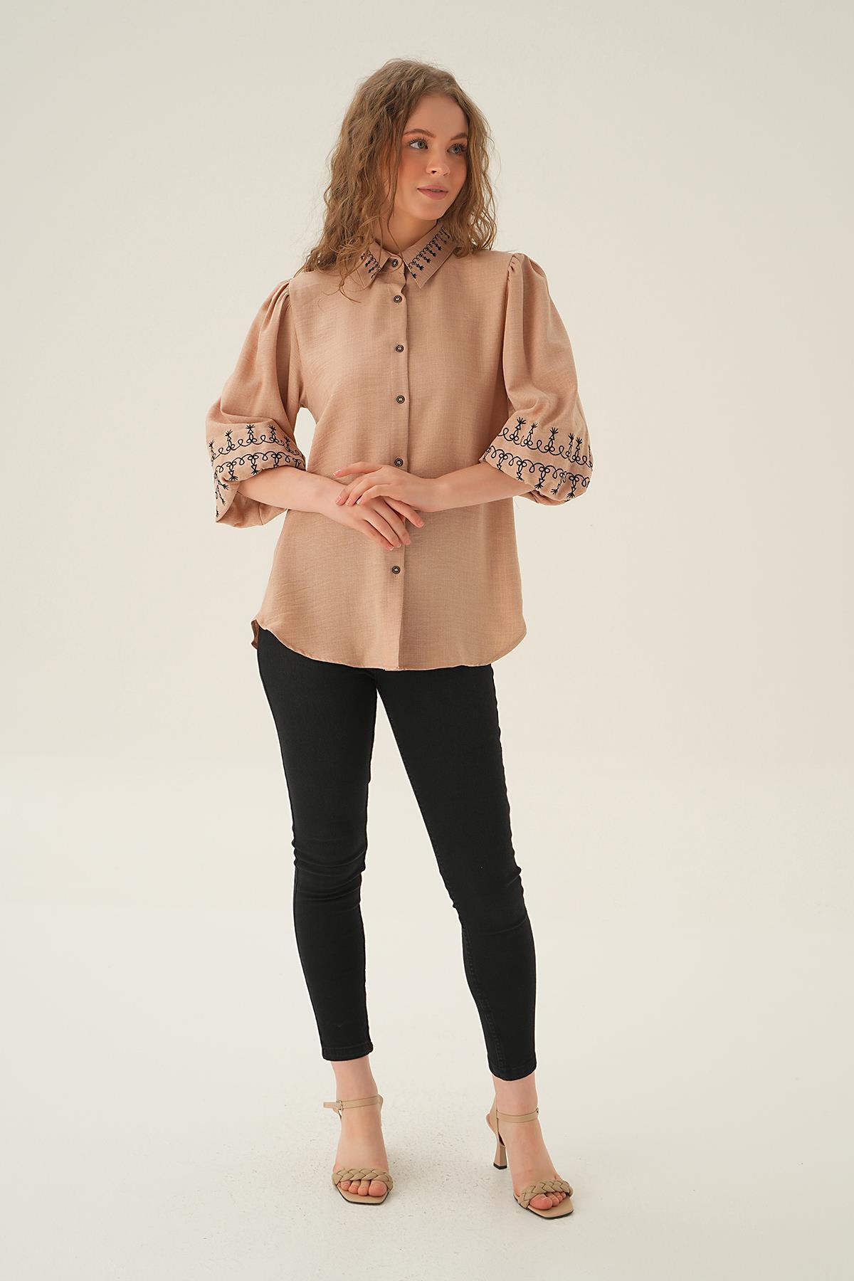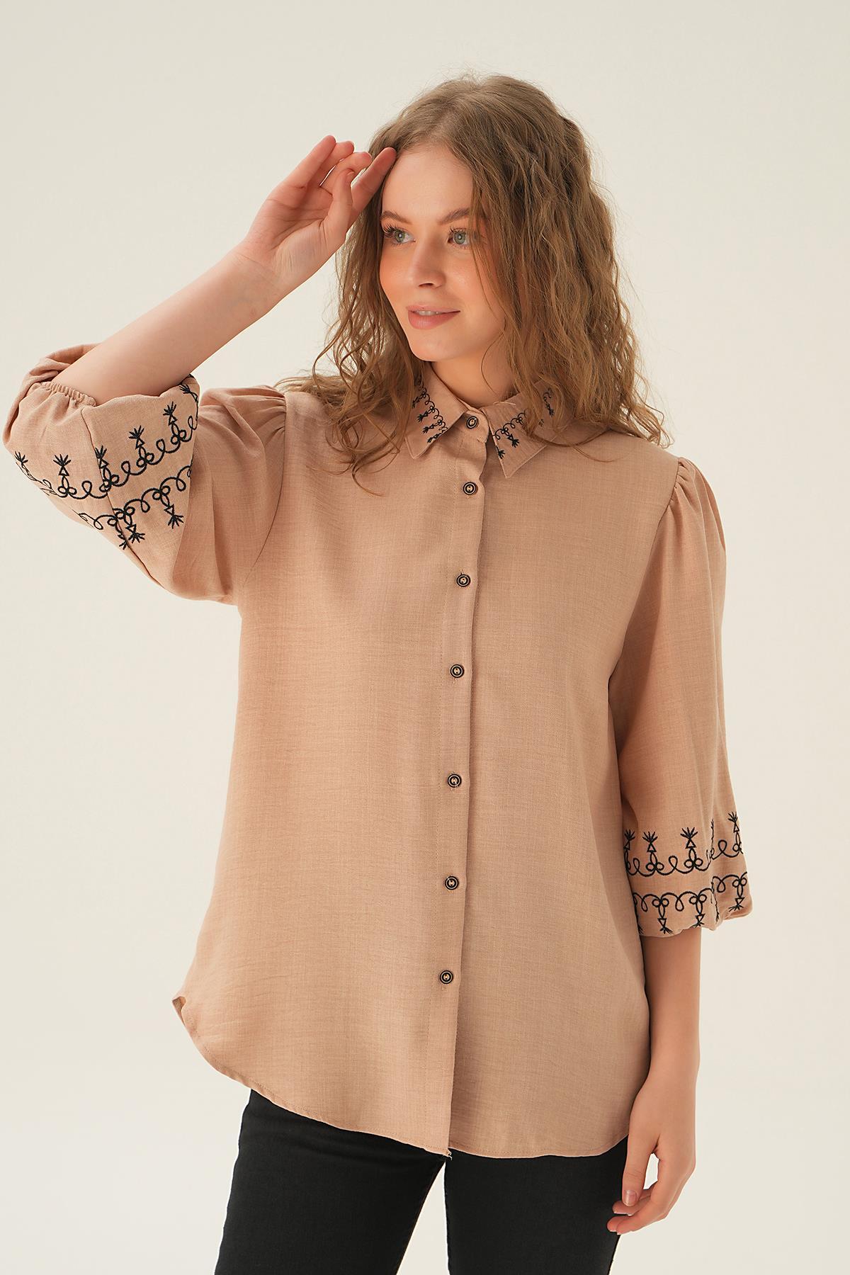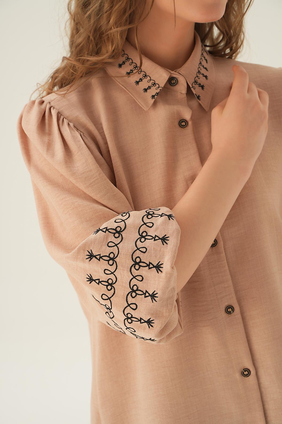 Bej Nakış Detay Gömlek 26033