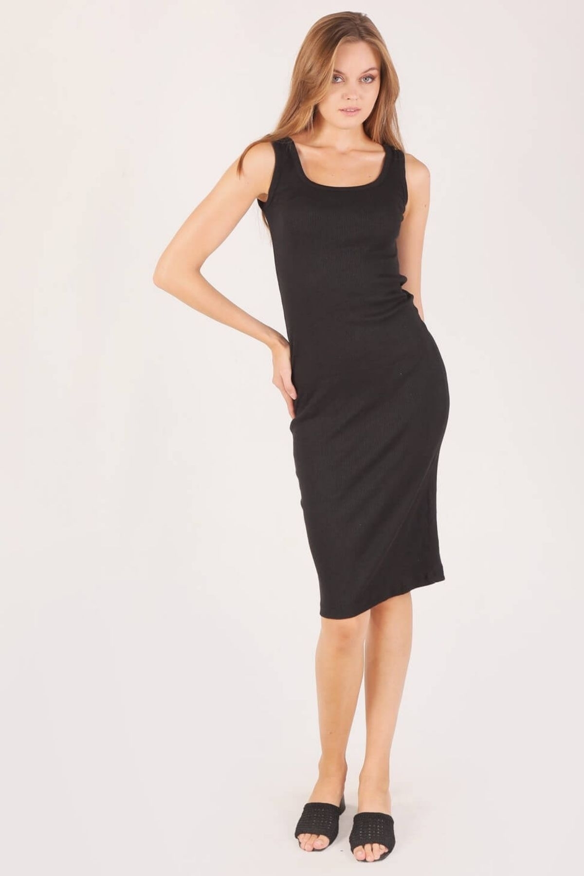 Siyah Kare Yaka Kaşkorse Elbise 2614