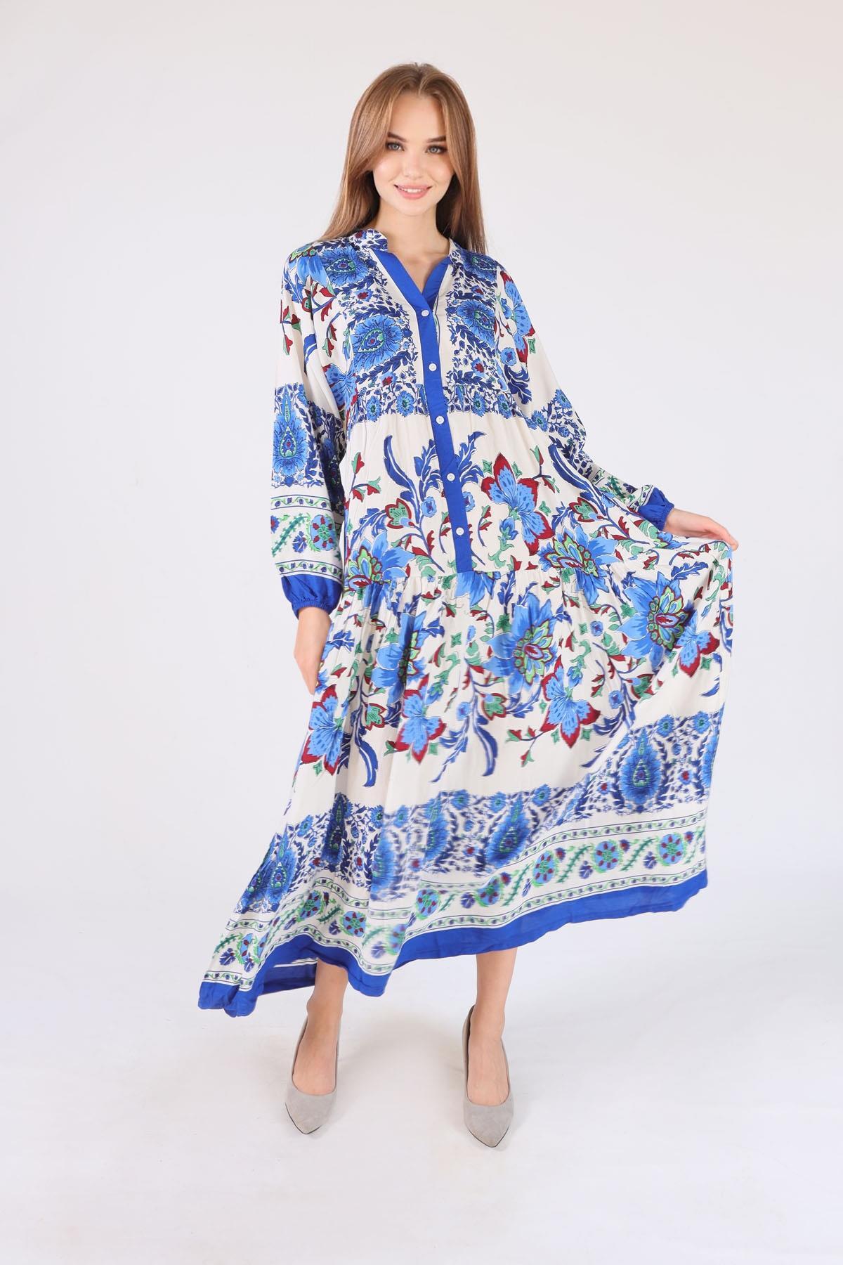 Saks Uzun Desenli Elbise 2627