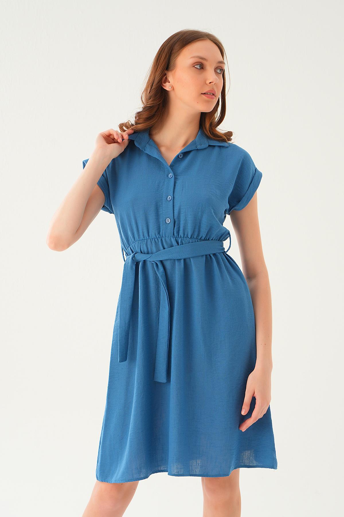 Laci Ekose Desenli Kemerli Elbise 35555 - RAYS