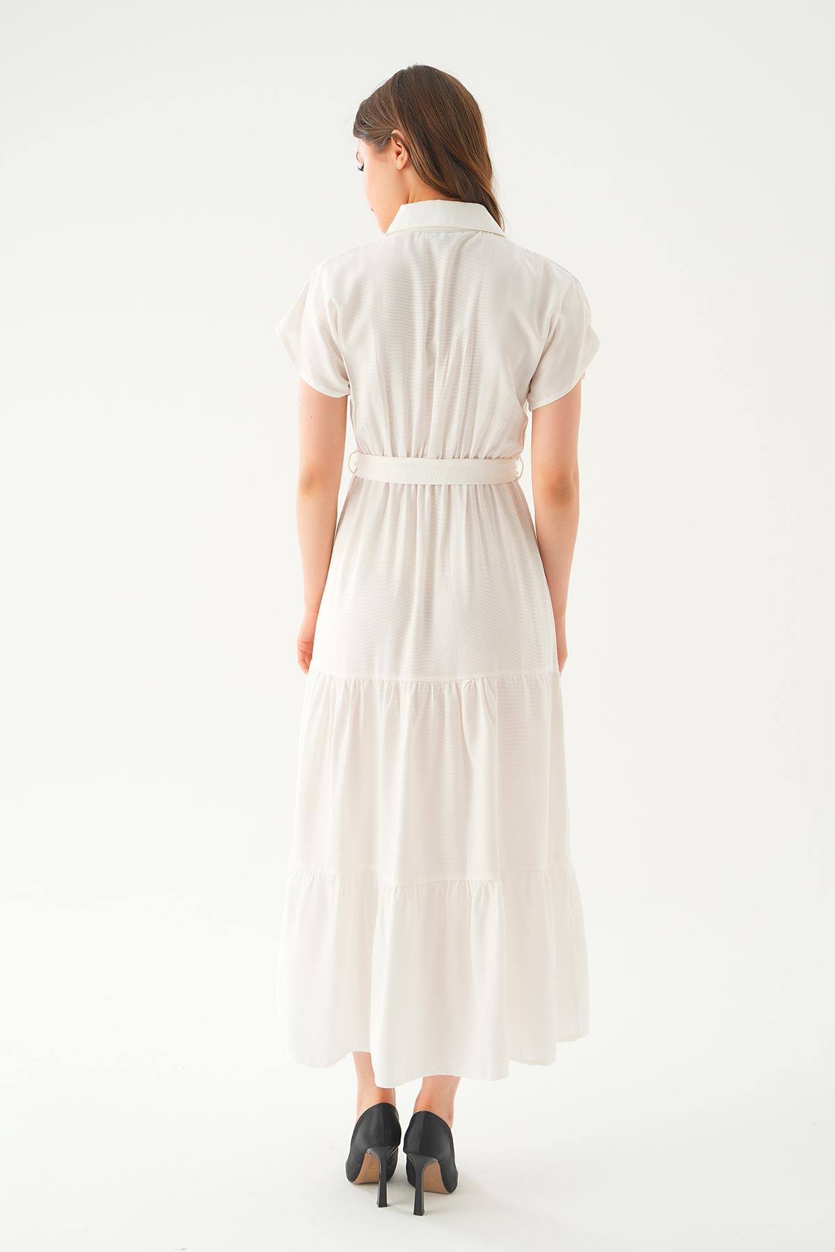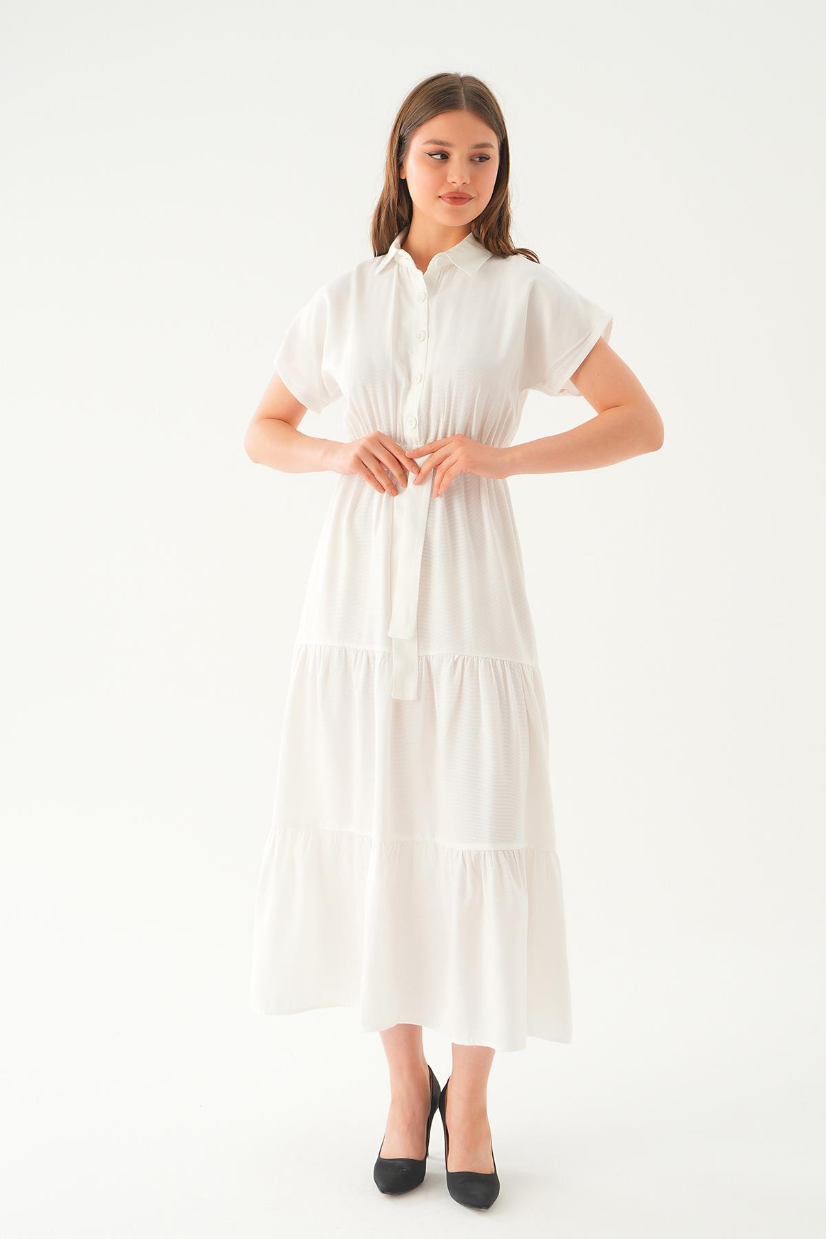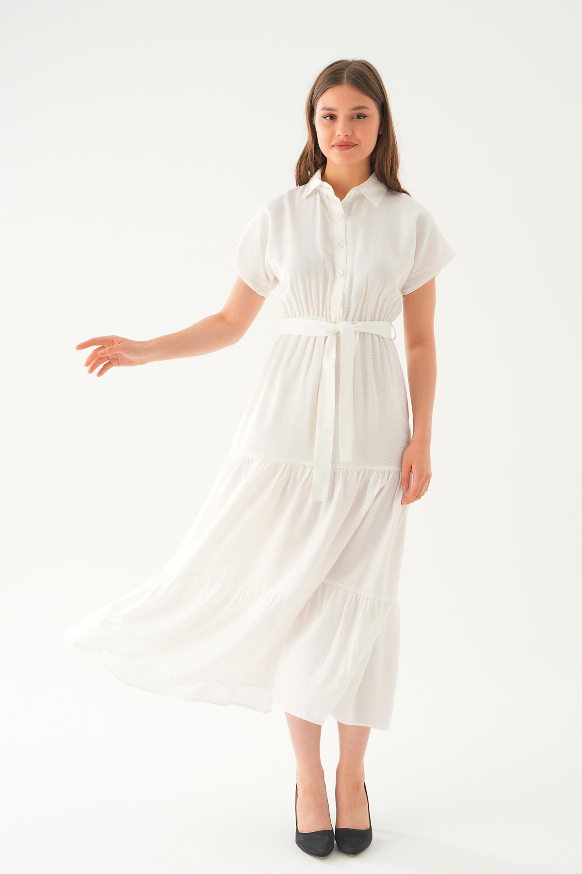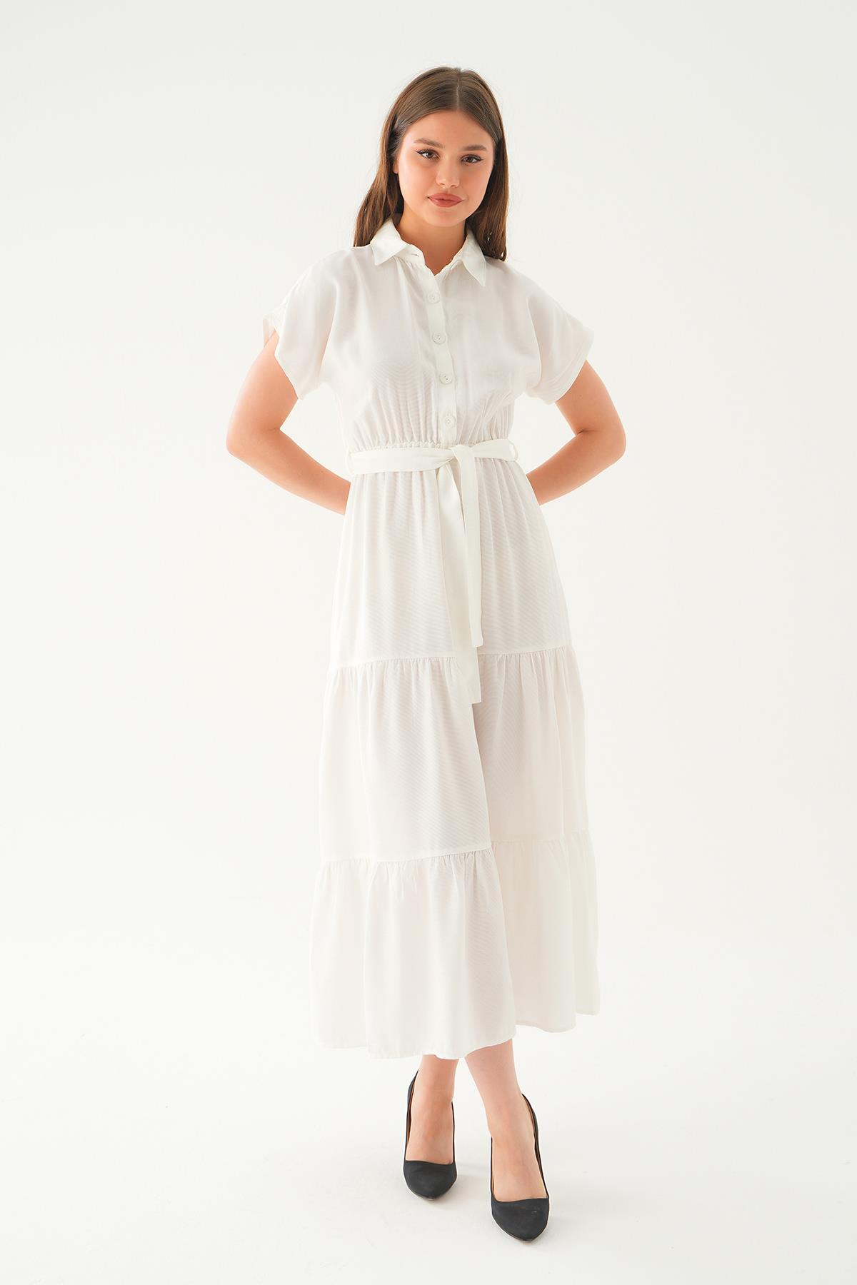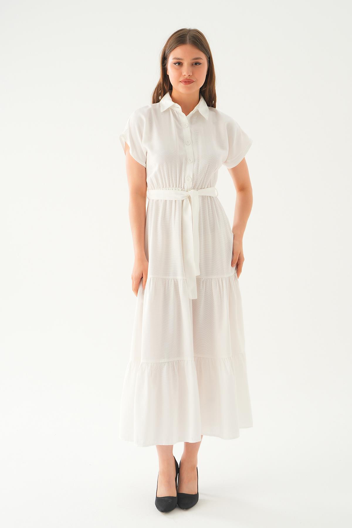 Beyaz Bel Kuşak Detay Uzun Elbise 2630