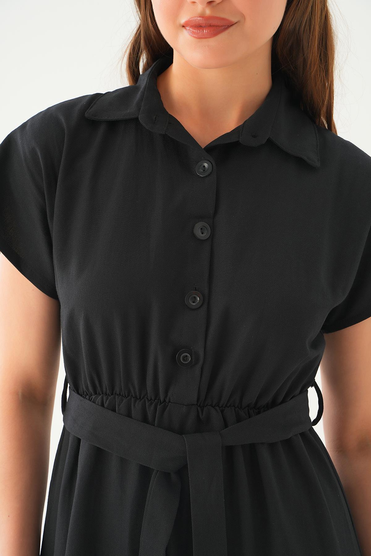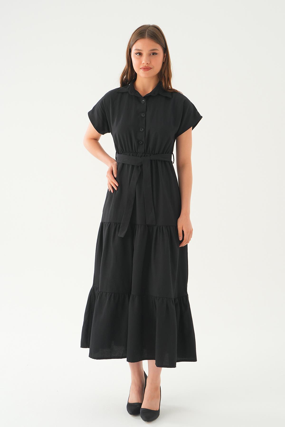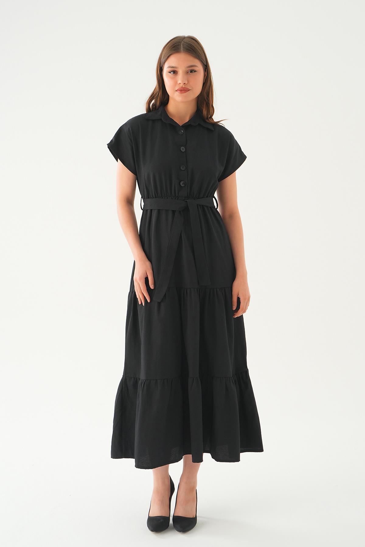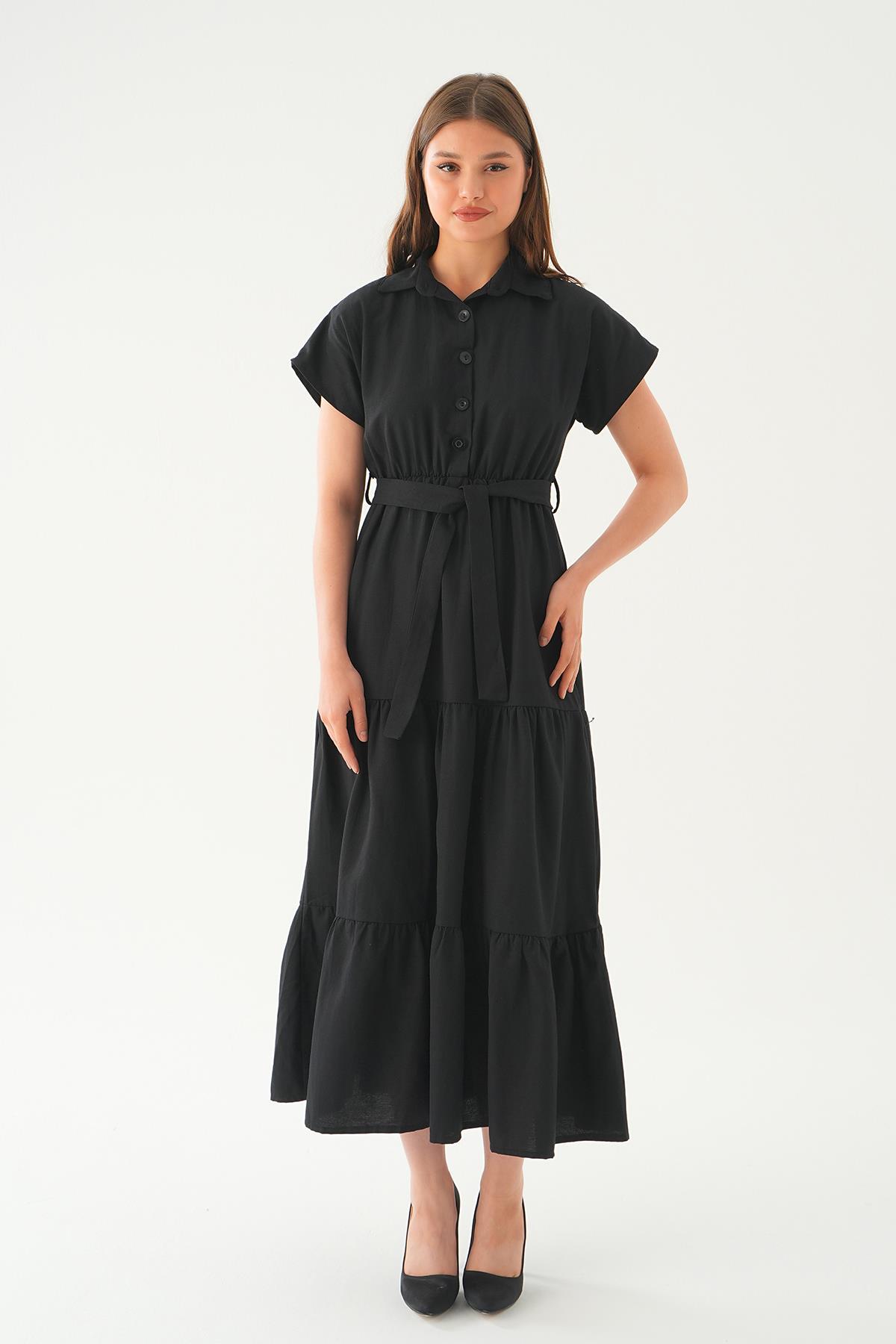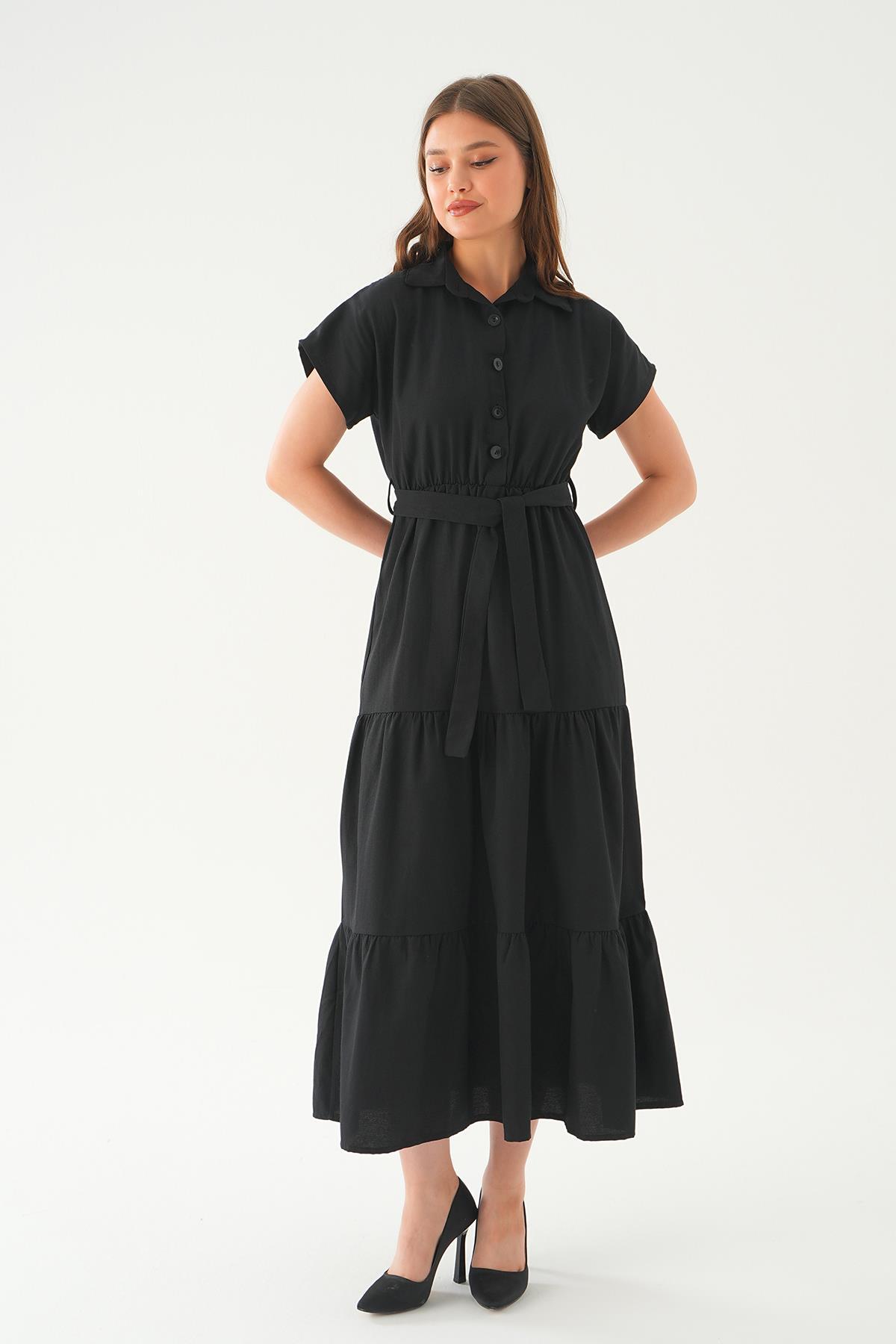 Siyah Düğmeli Kat Kat Elbise 2817 - RAYS Siyah Düğmeli Kat Kat Elbise 2817 - RAYS (1)