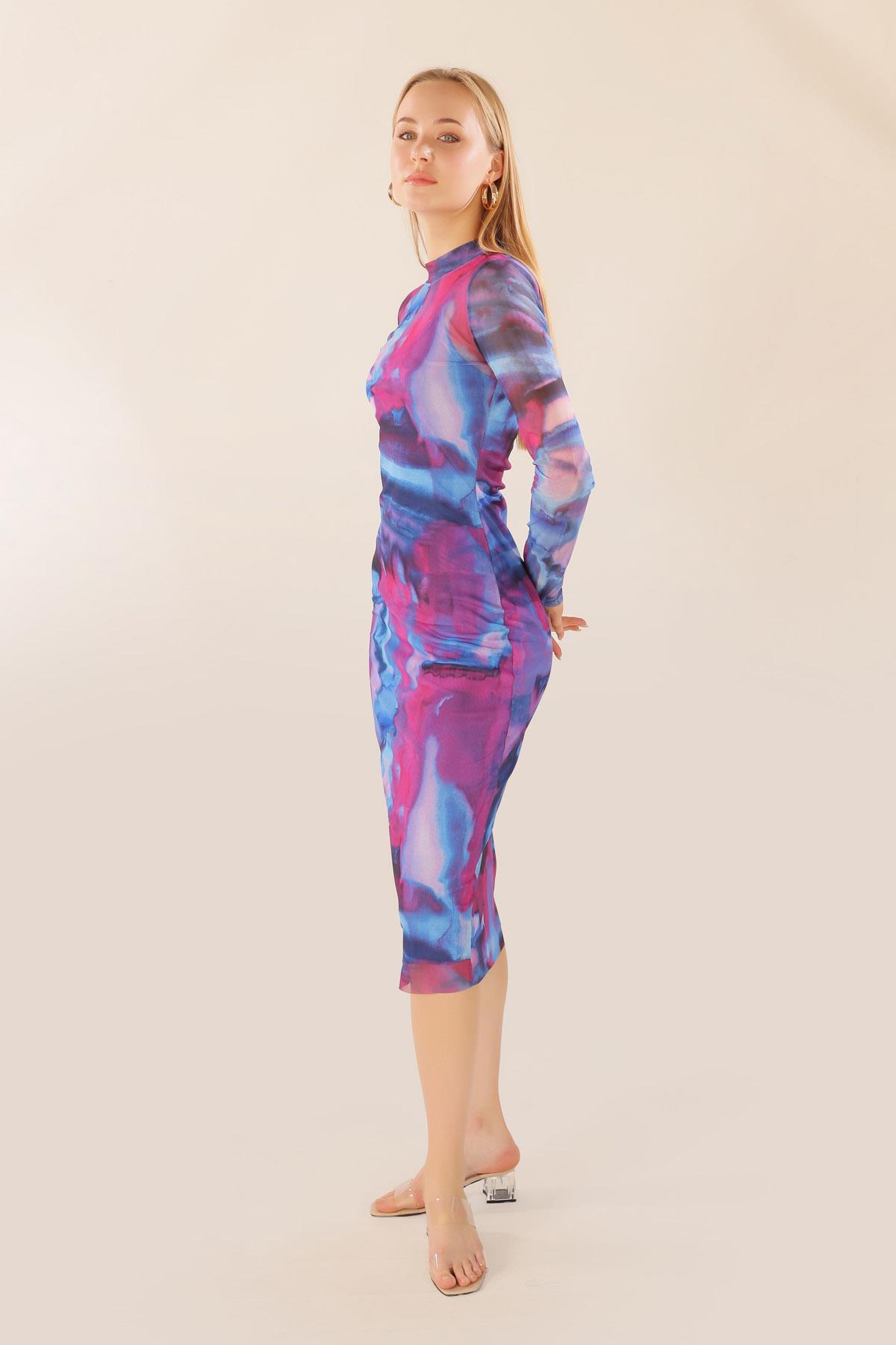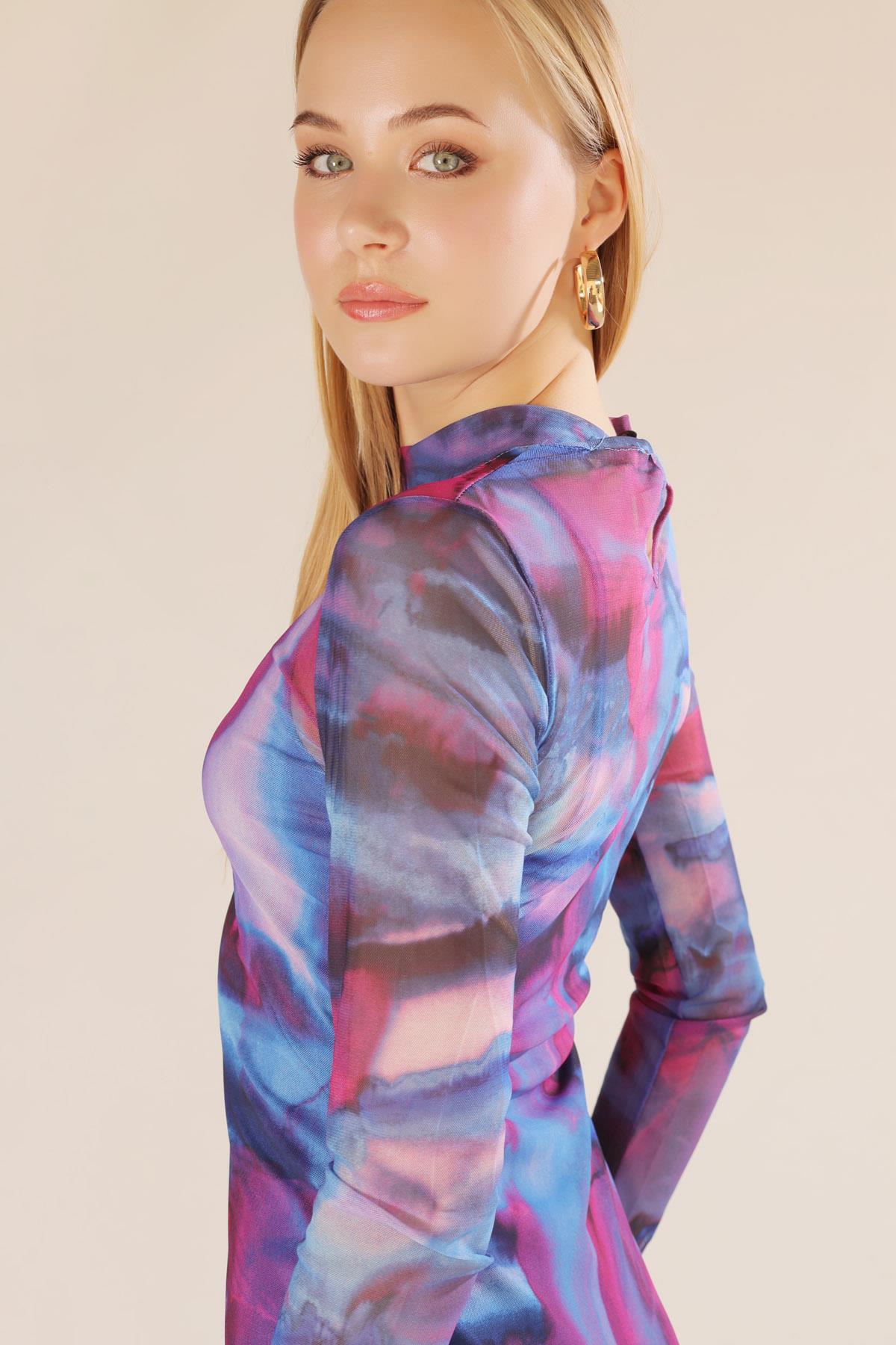 Mor Dijital Baskı Elbise 101151