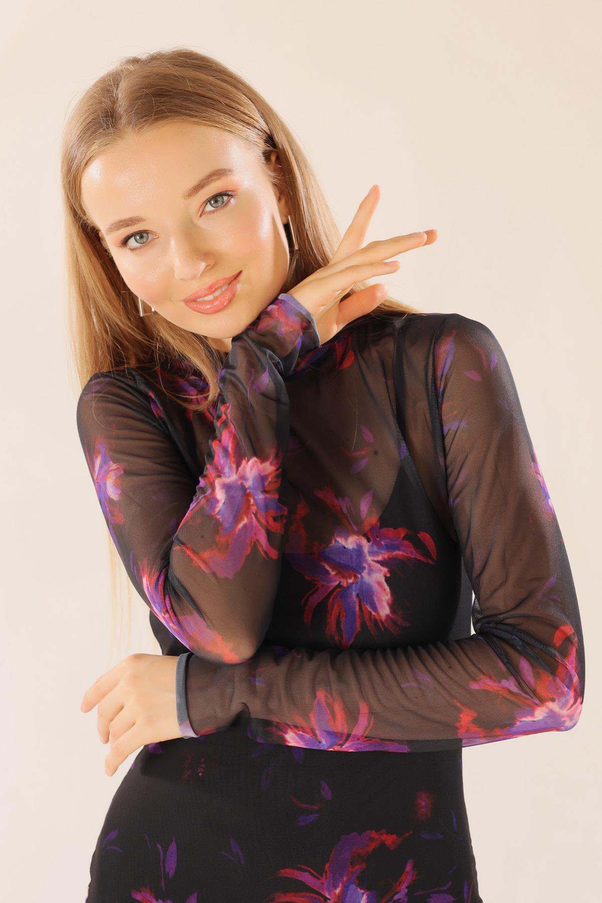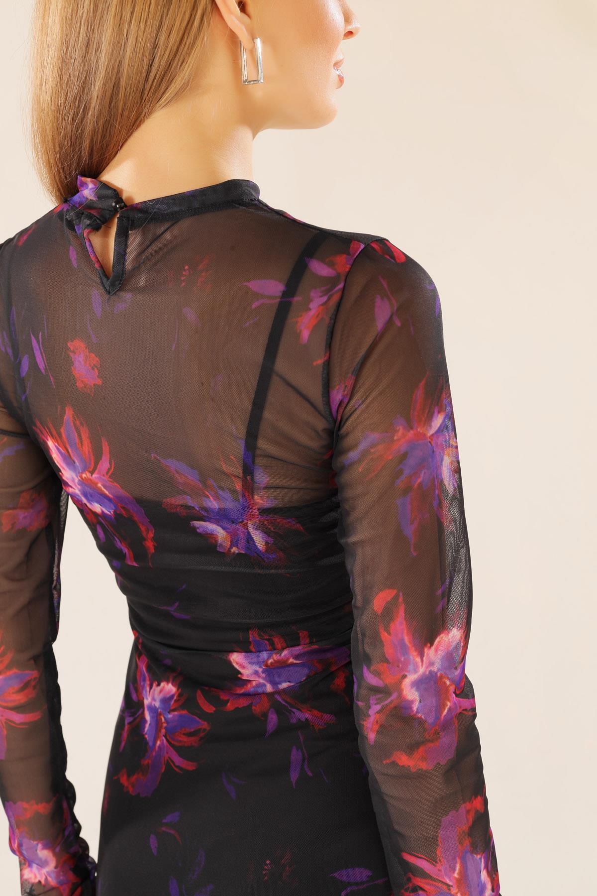 Siyah Dijital Baskı Elbise 101151