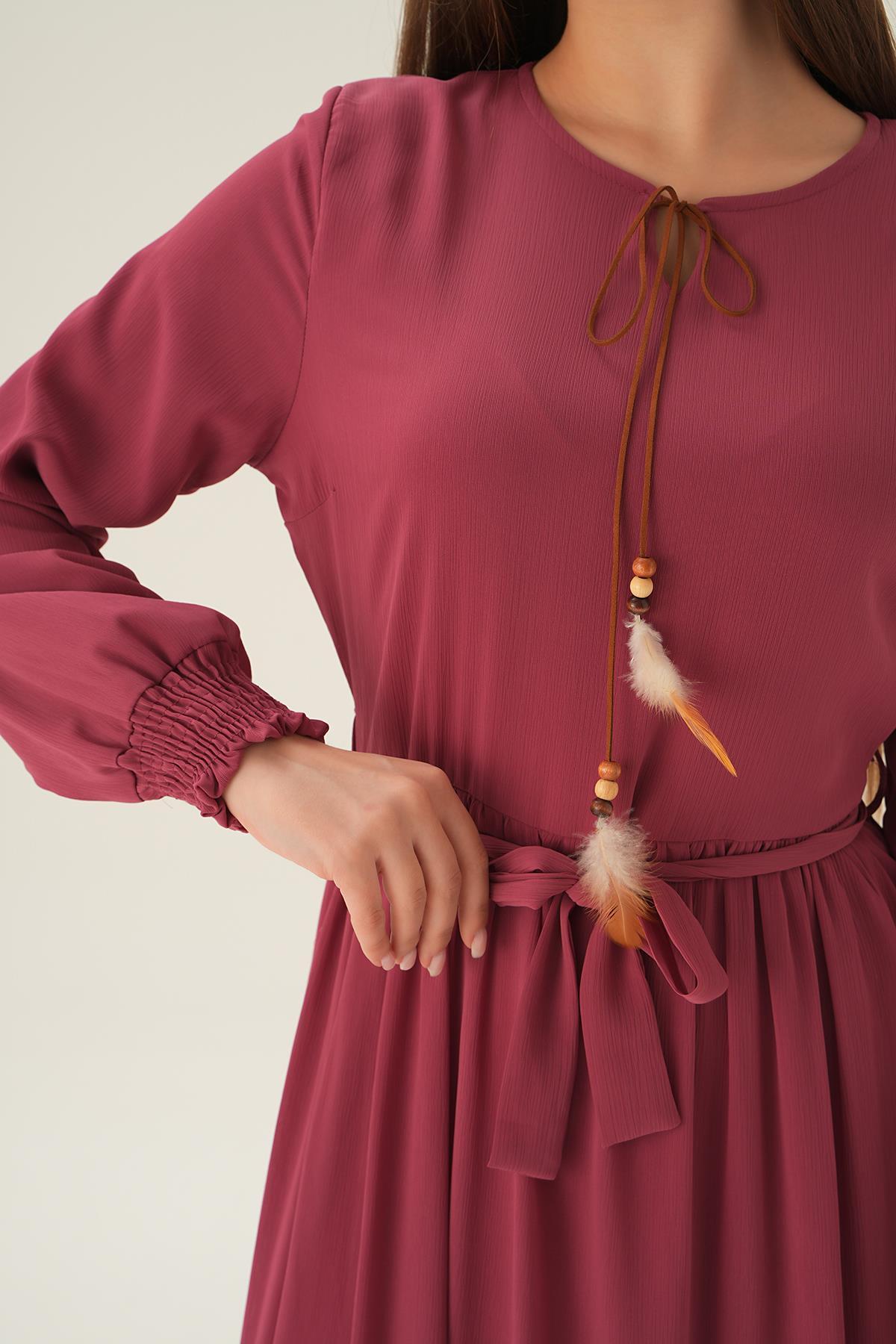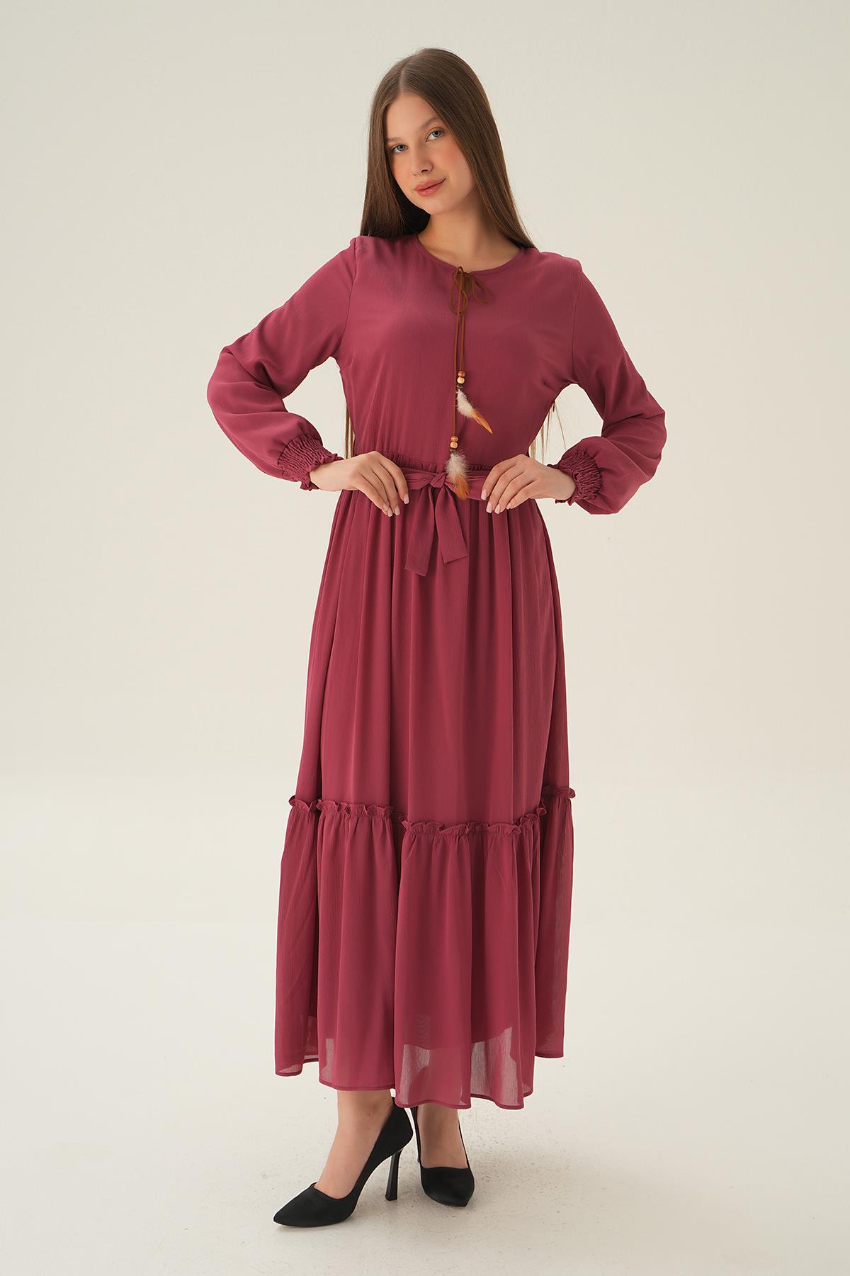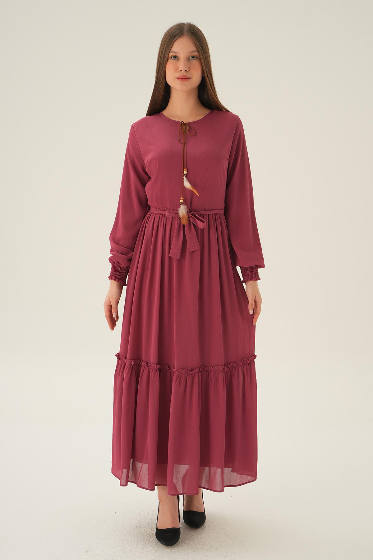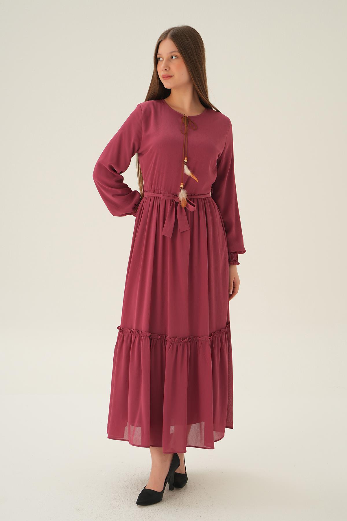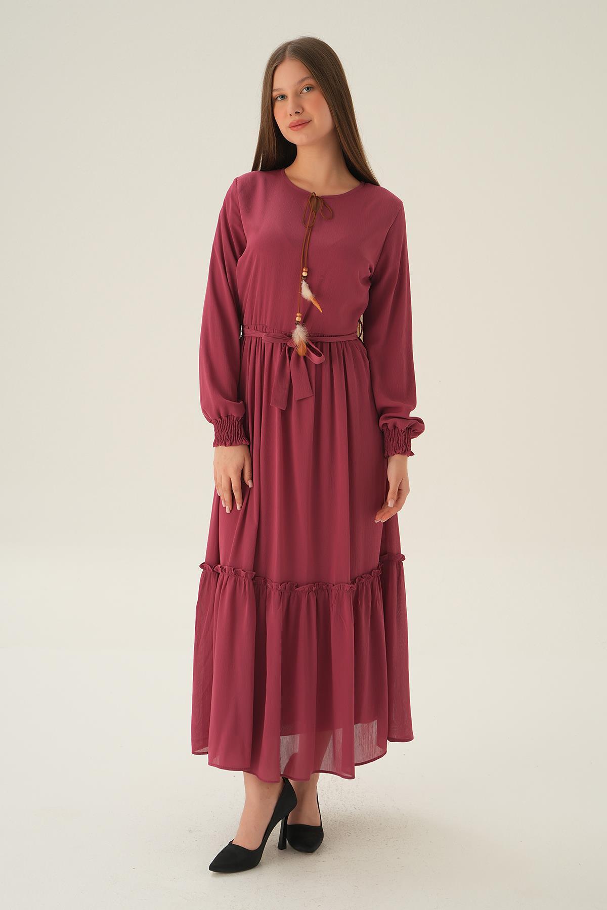 Kahve Etnik Desenli Kemerli Elbise 35560 - RAYS Kahve Etnik Desenli Kemerli Elbise 35560 - RAYS (1)