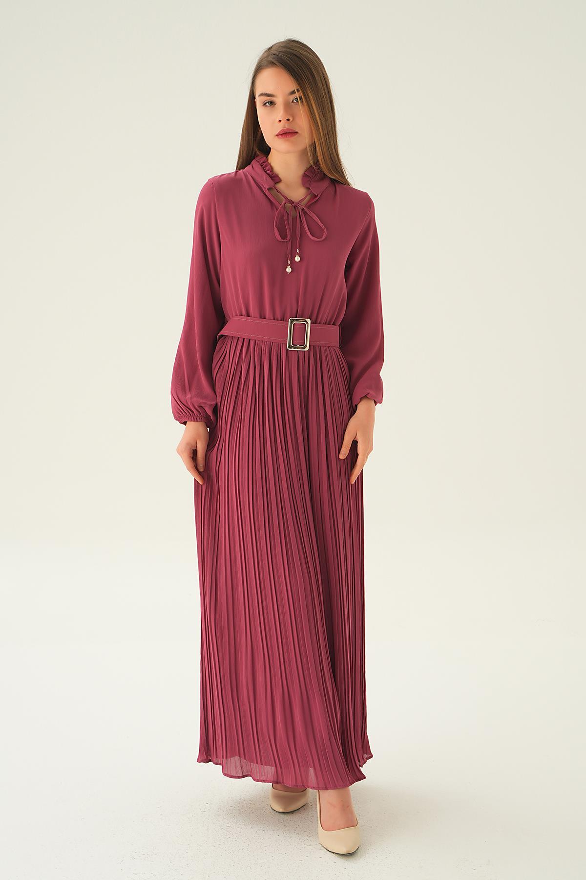 Laci Ekose Desenli Kemerli Elbise 35555 - RAYS