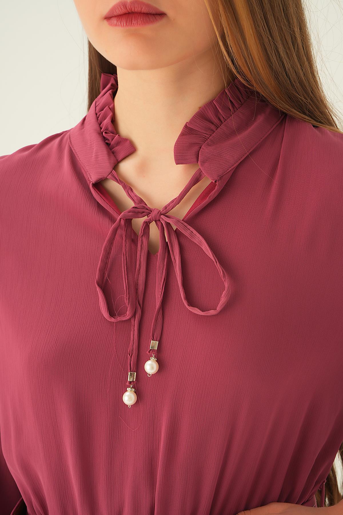 Kahve Etnik Desenli Kemerli Elbise 35560 - RAYS Kahve Etnik Desenli Kemerli Elbise 35560 - RAYS (1)