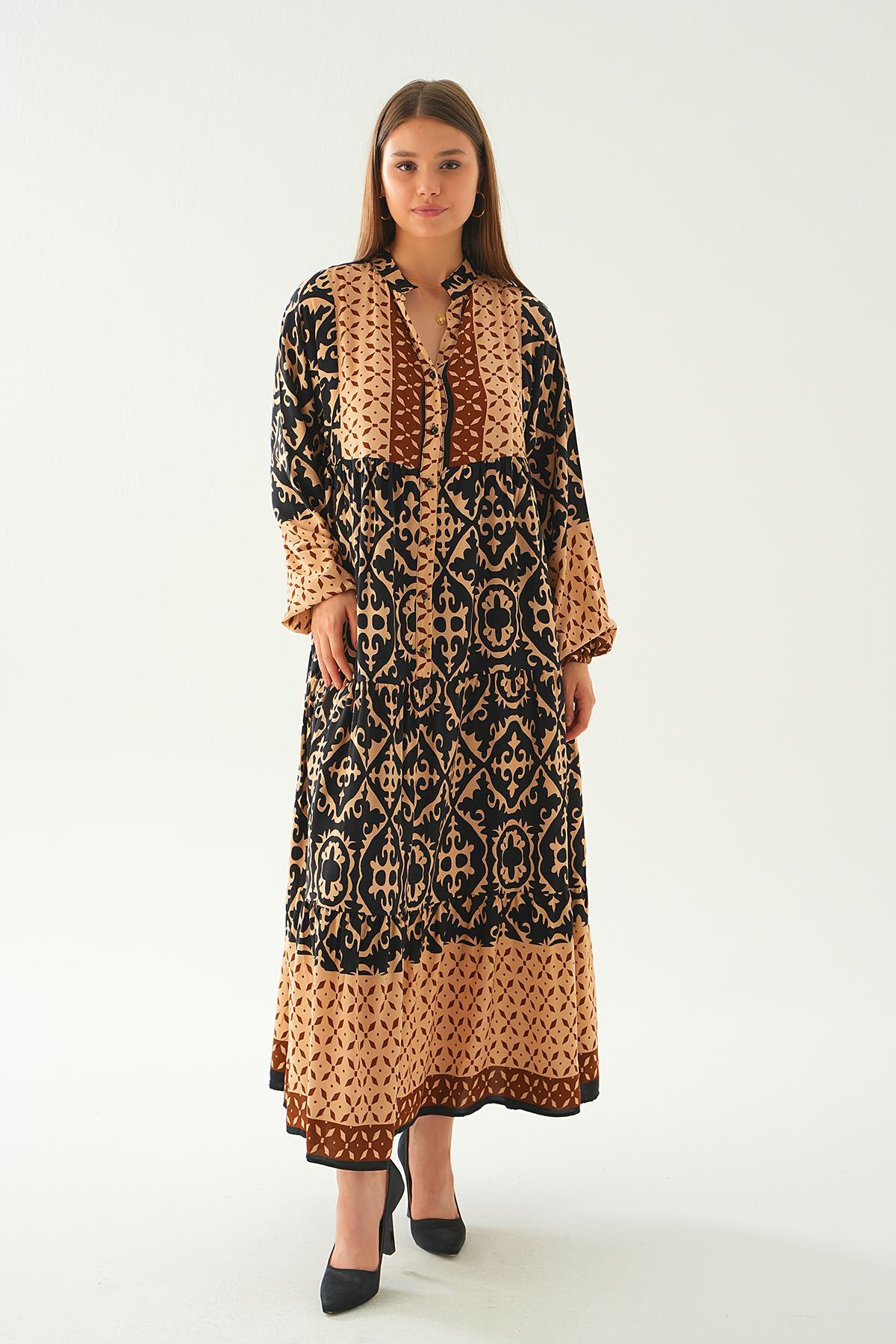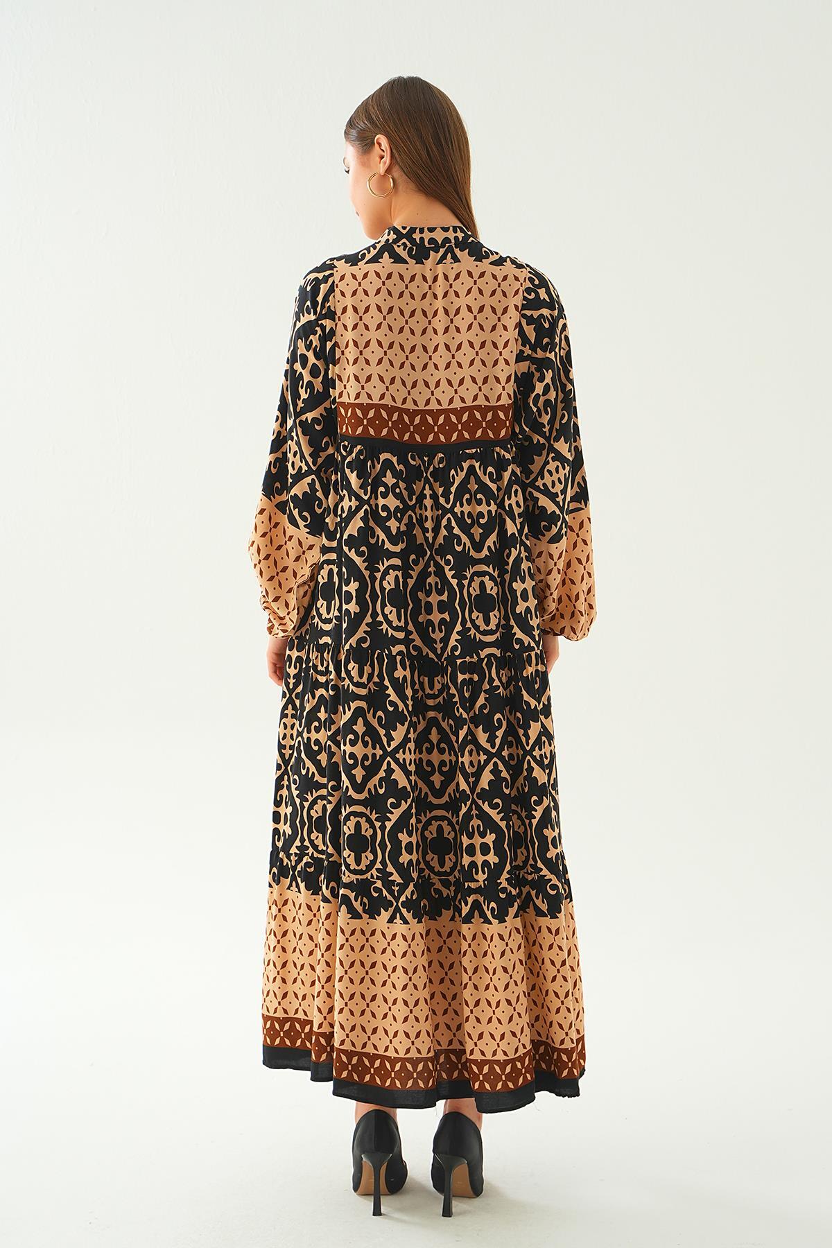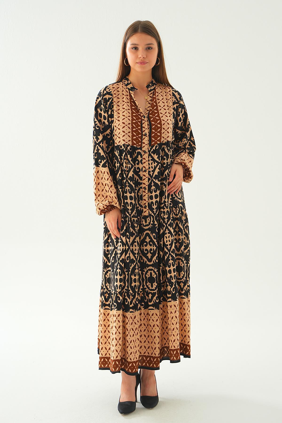 Kahve Etnik Desenli Kemerli Elbise 35560 - RAYS Kahve Etnik Desenli Kemerli Elbise 35560 - RAYS (1)