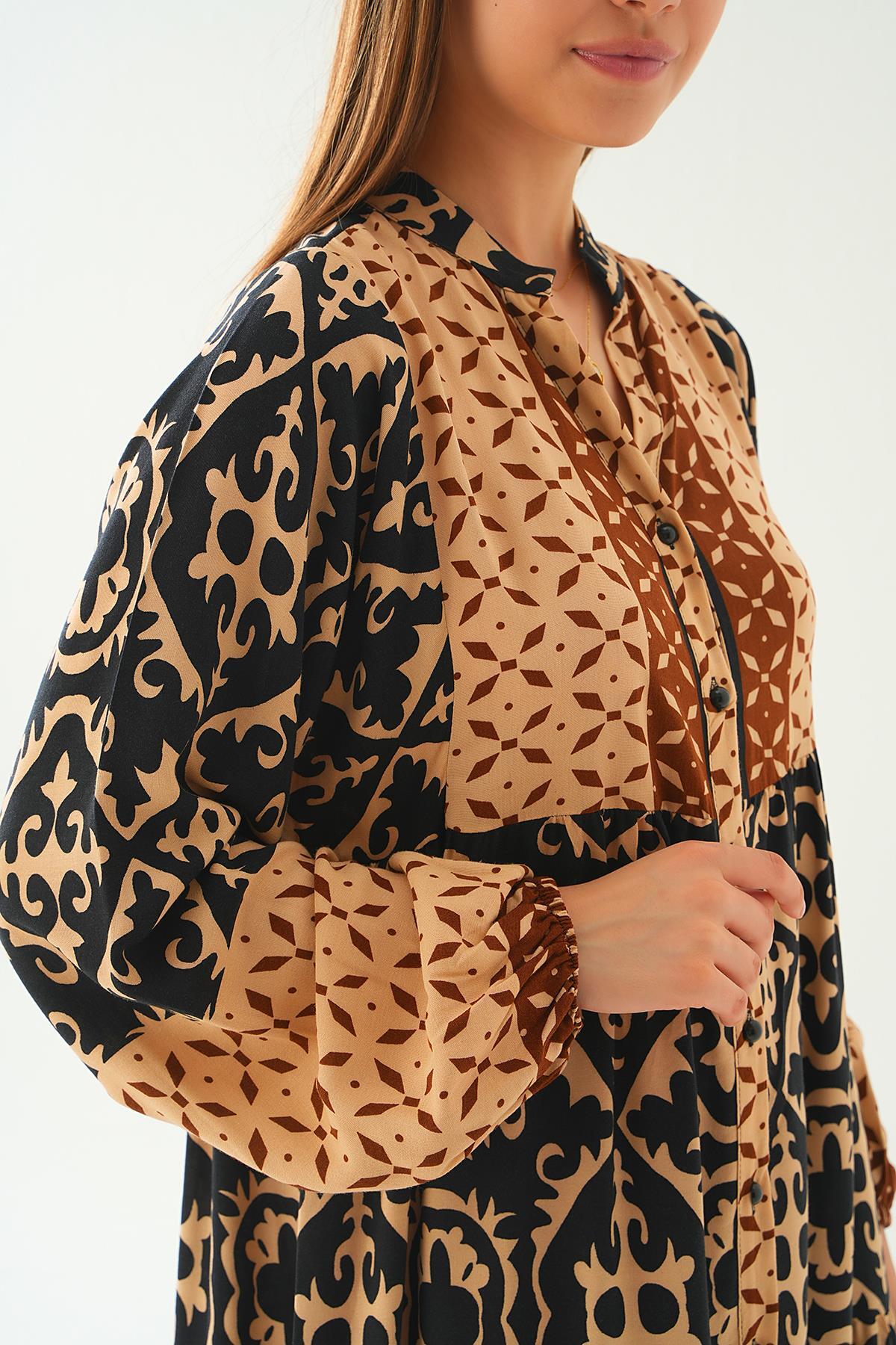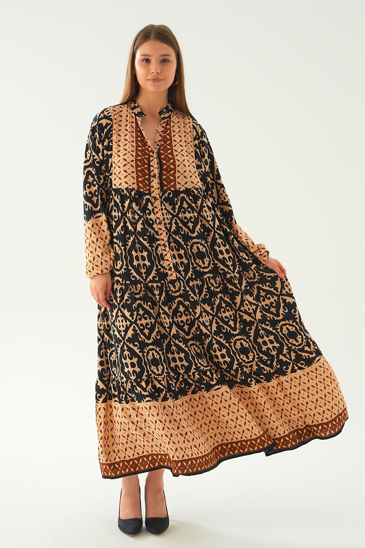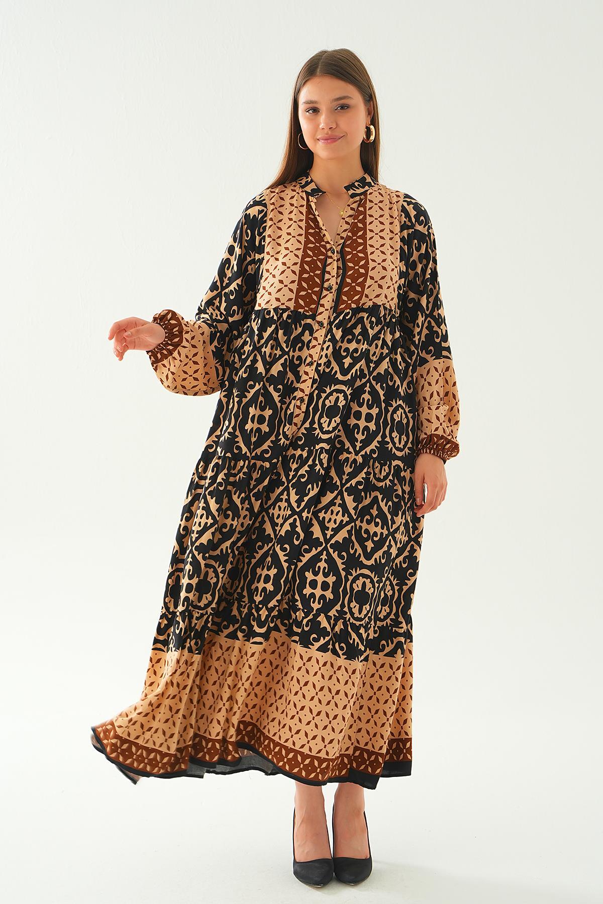 Kahve Etnik Desenli Kemerli Elbise 35560 - RAYS Kahve Etnik Desenli Kemerli Elbise 35560 - RAYS (1)