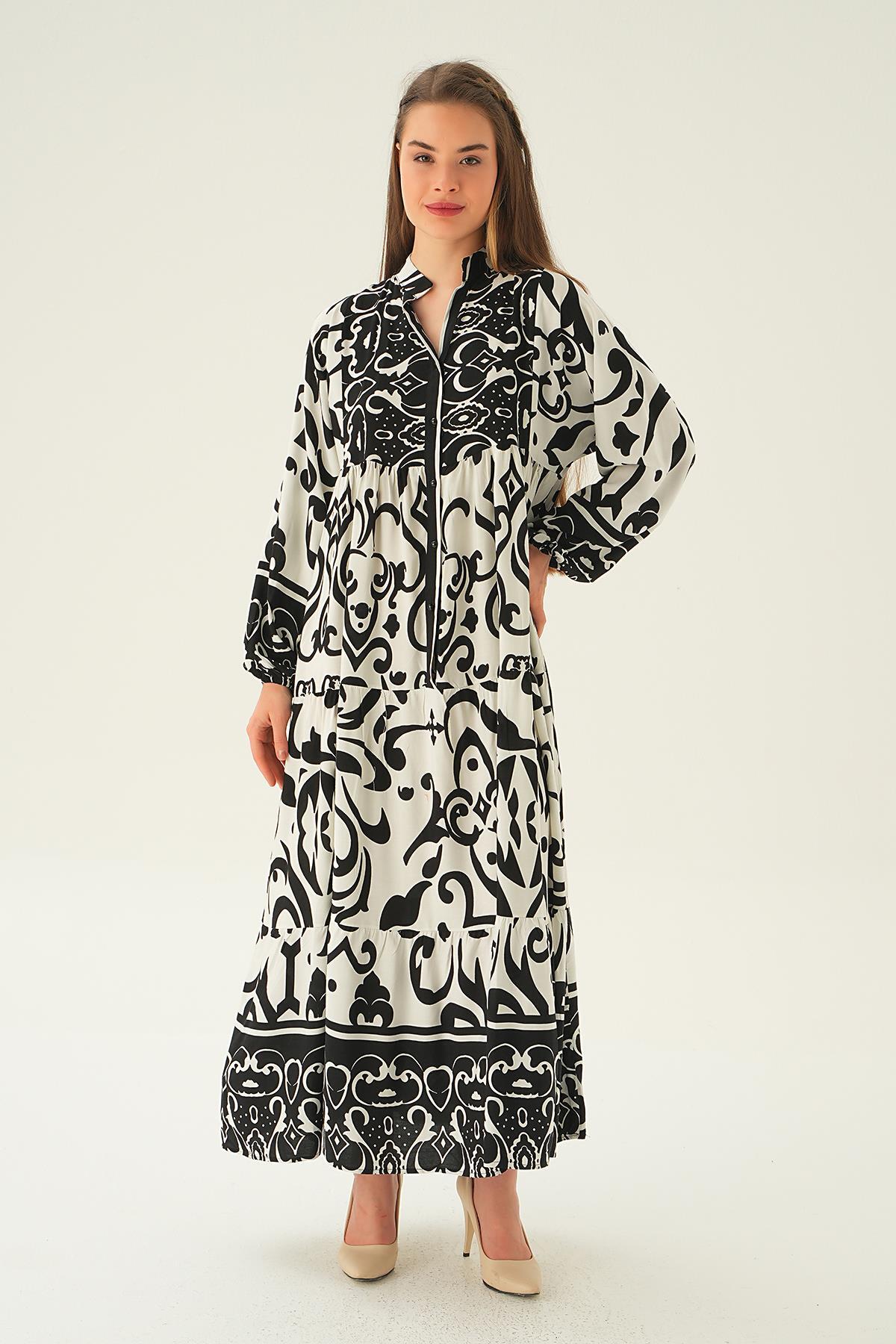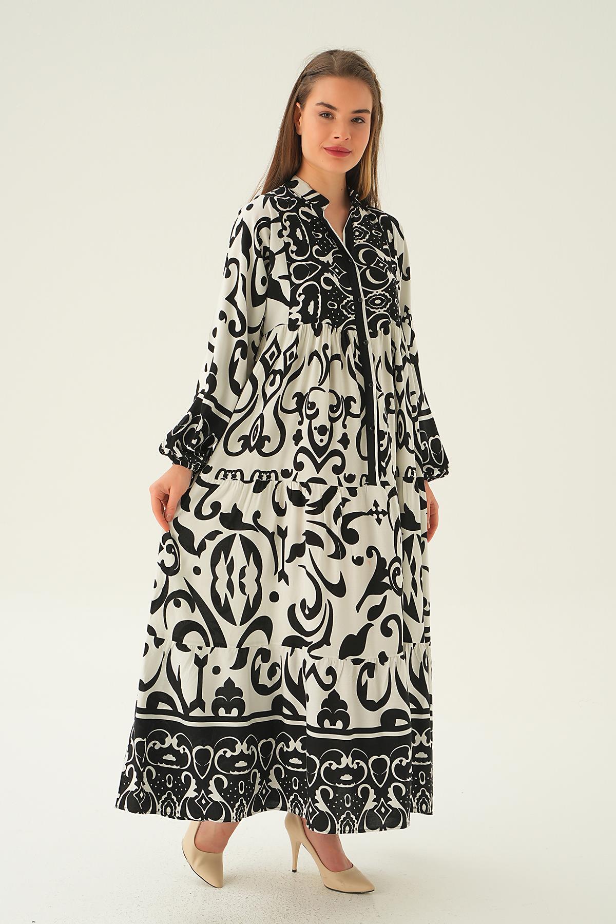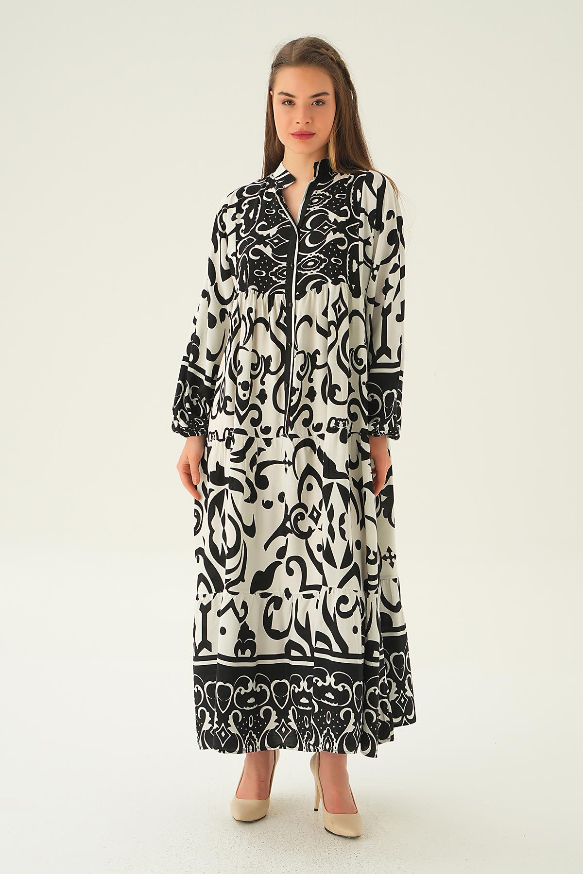 Siyah Düğmeli Kat Kat Elbise 2817