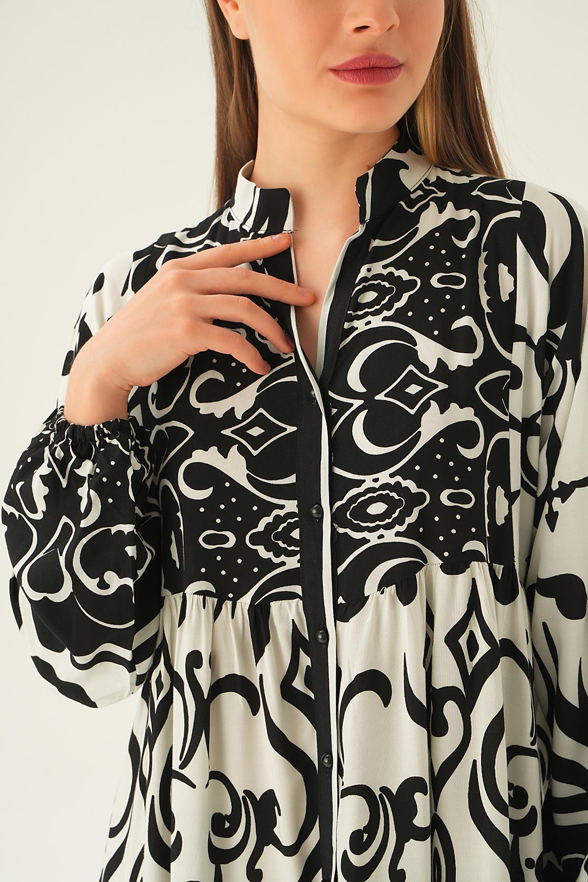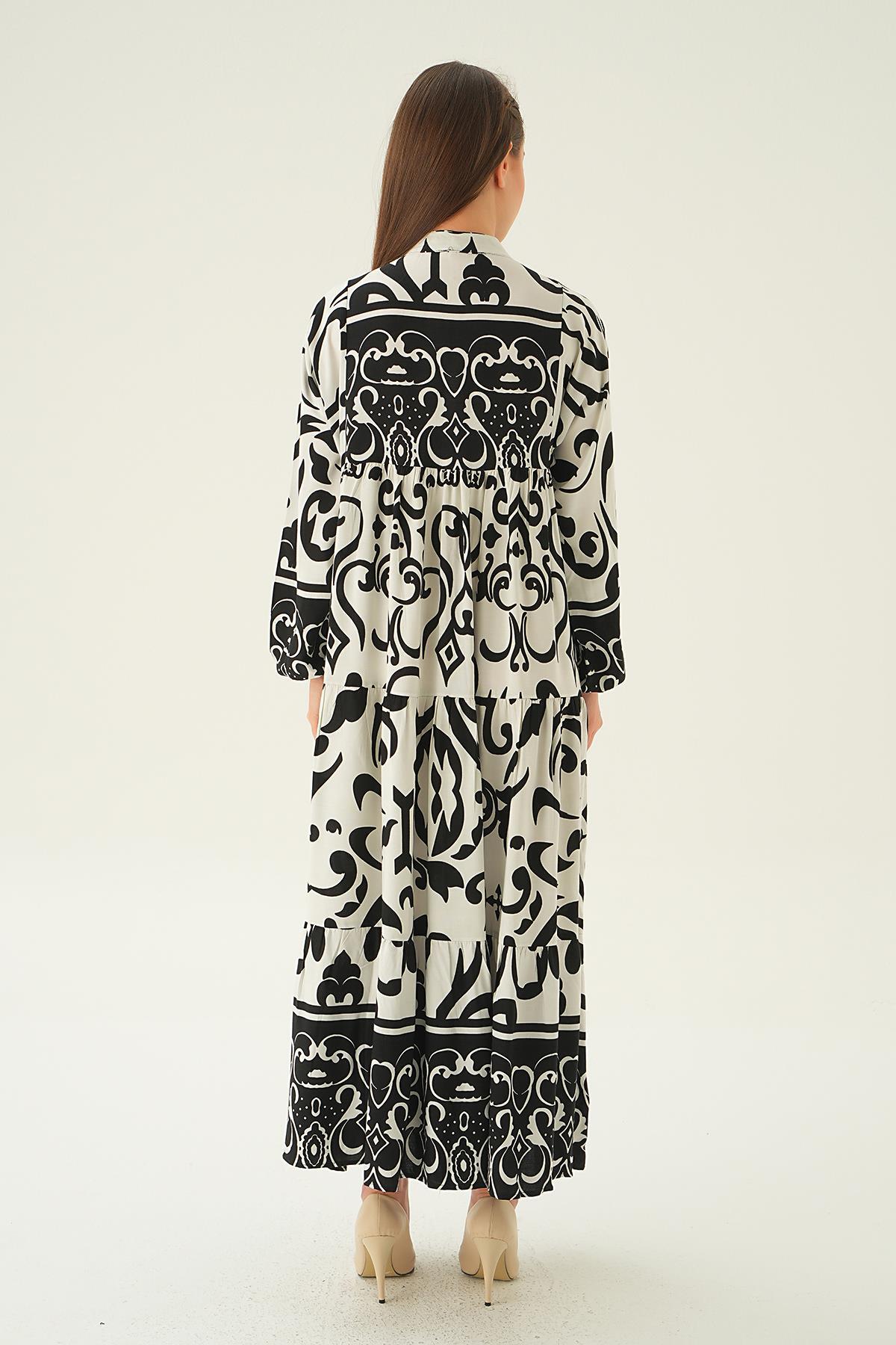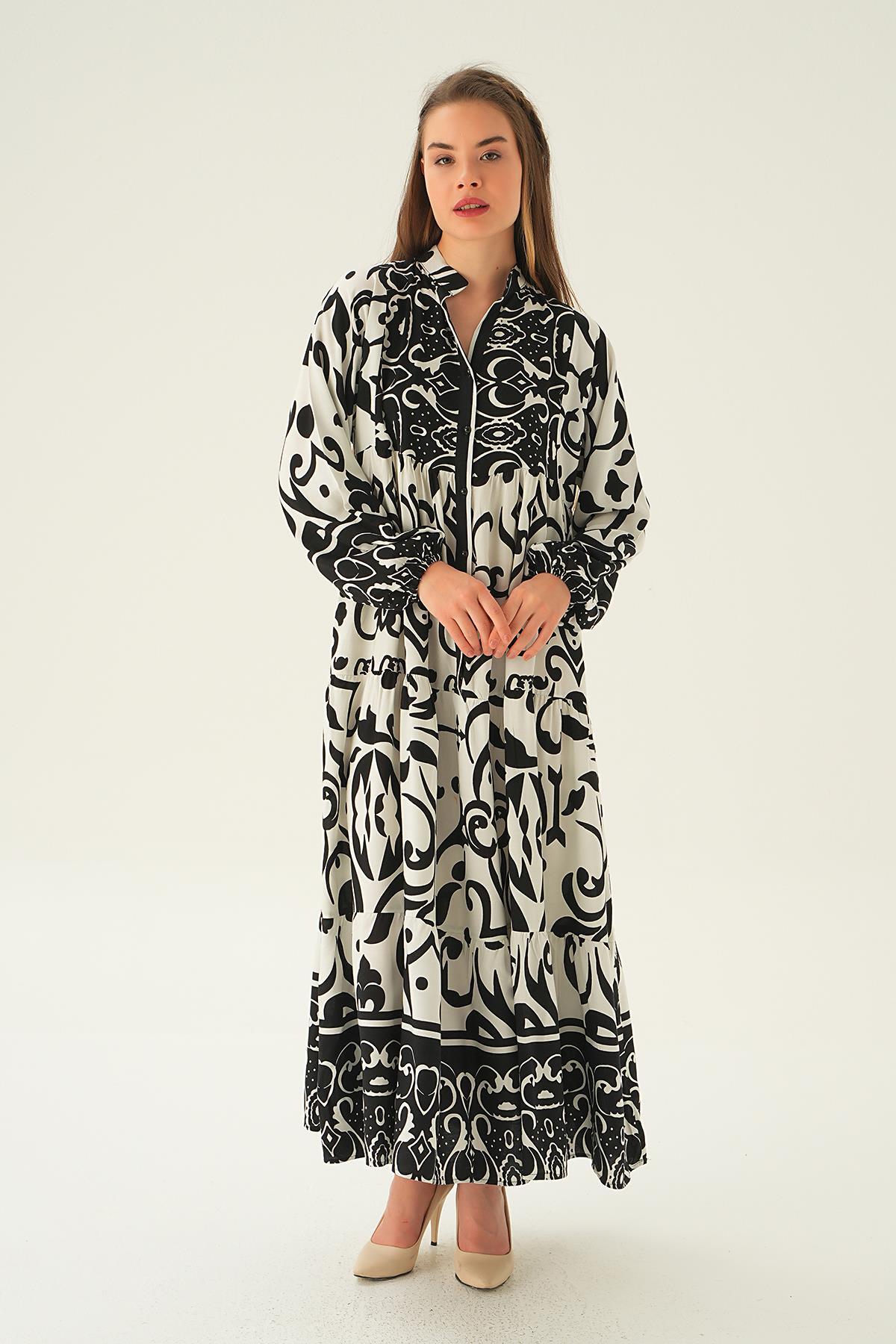 Siyah Düğmeli Kat Kat Elbise 2817