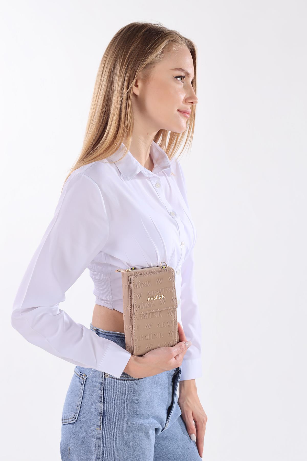9229 Göz Detay Omuz Çantası Vizon