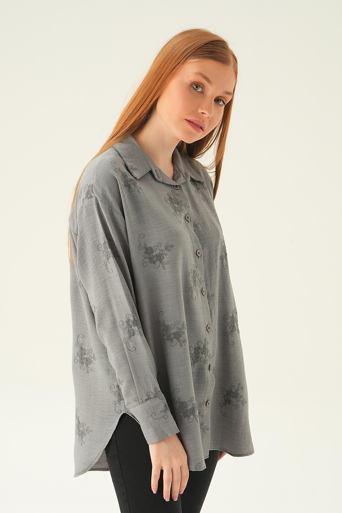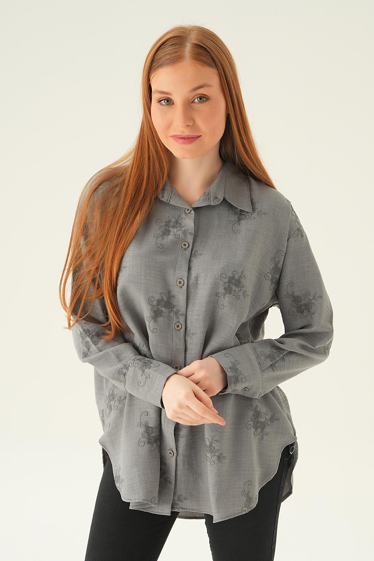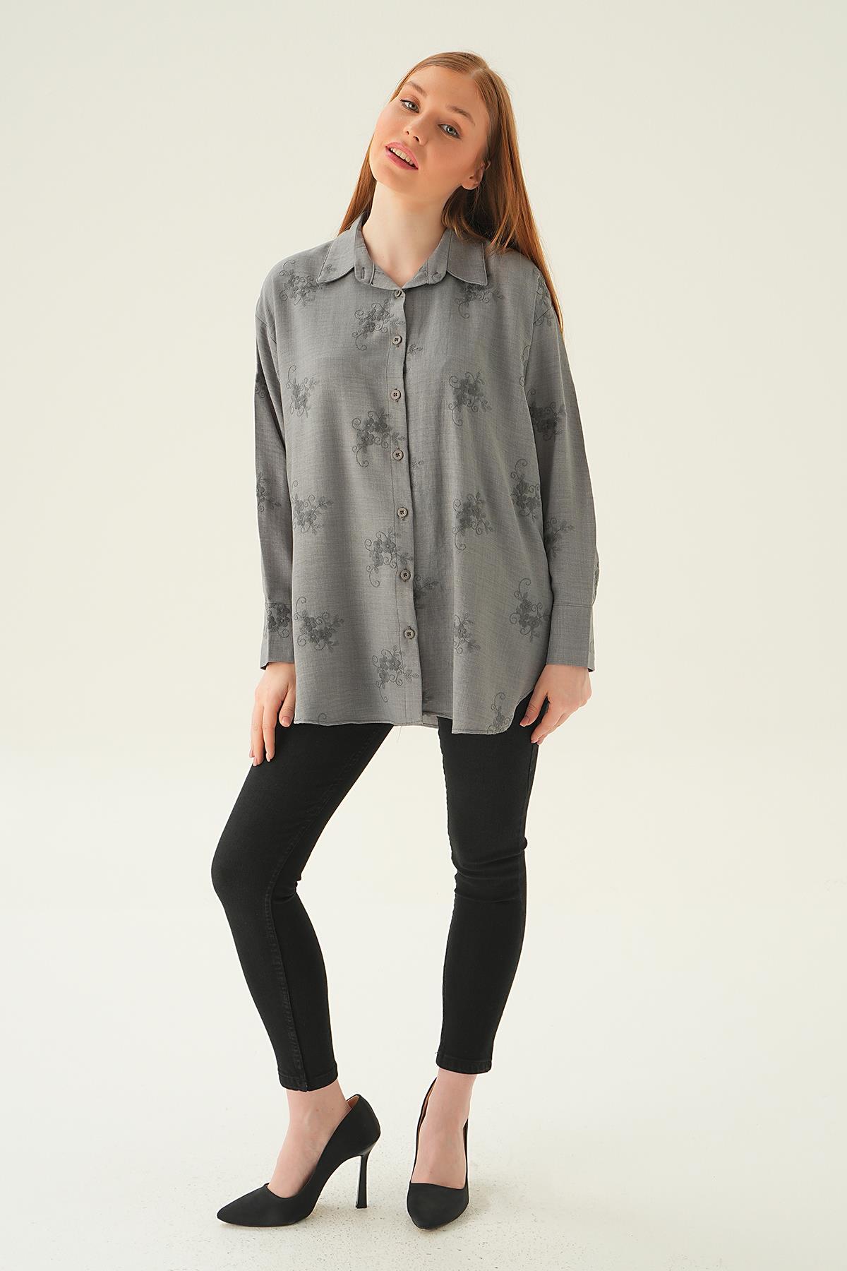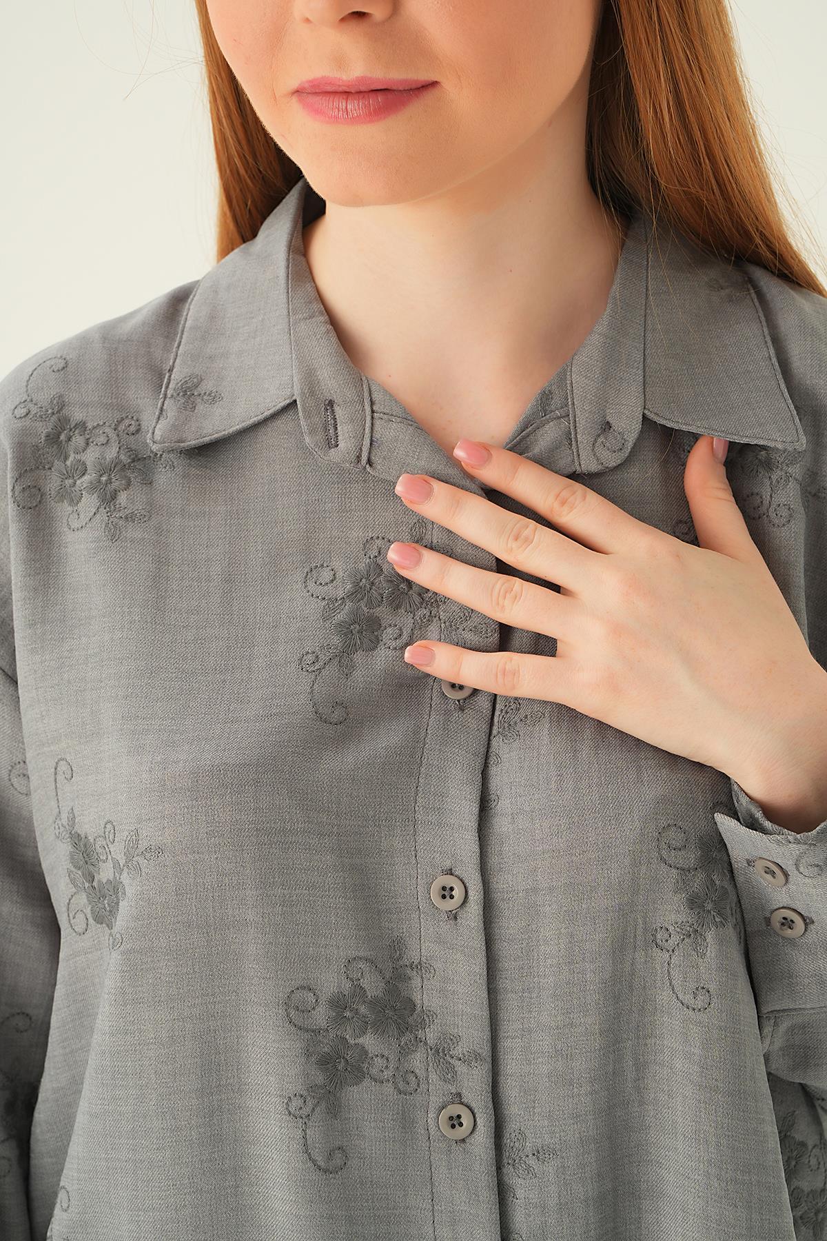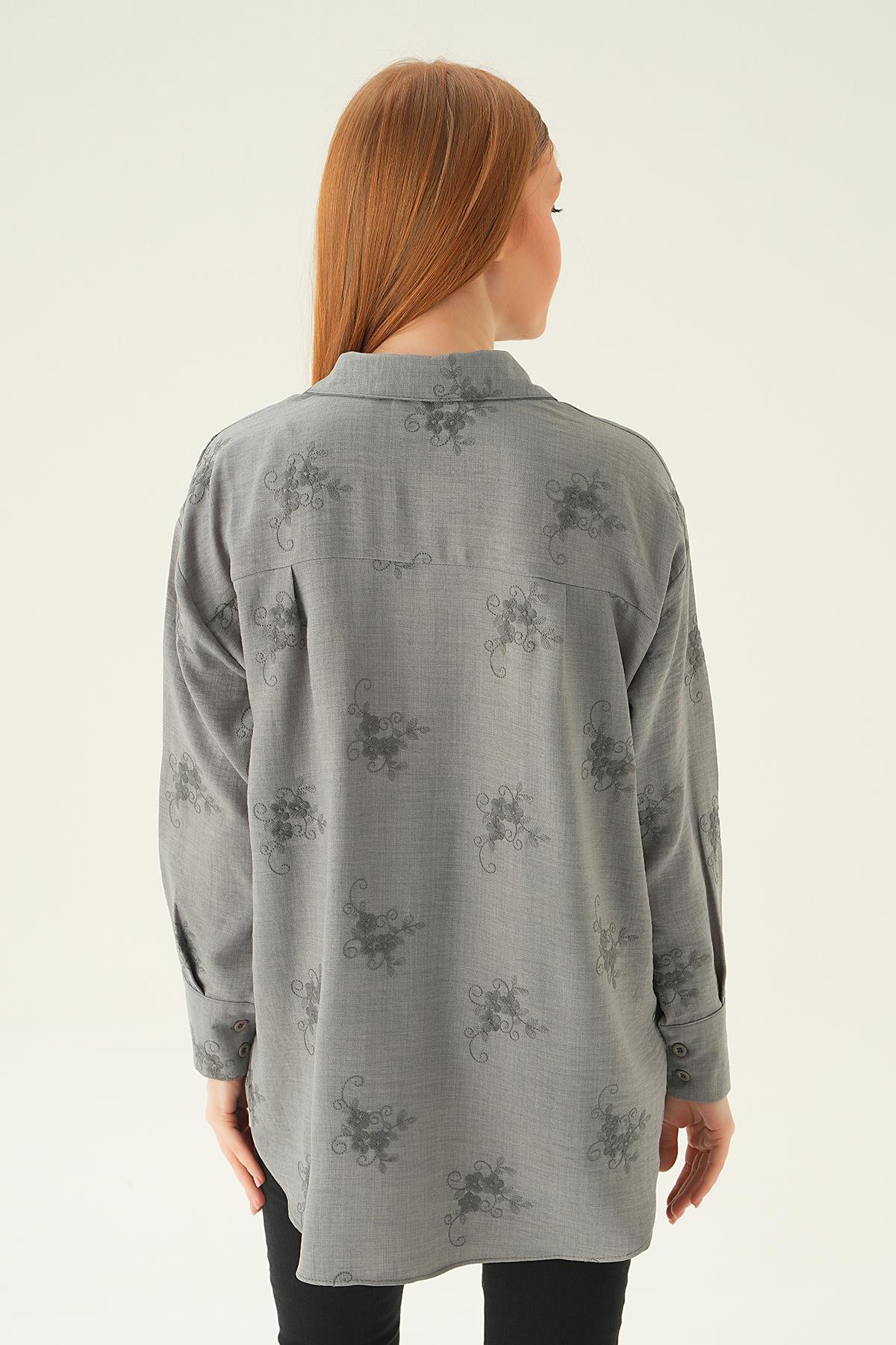 Gri Nakışlı Gömlek 26528