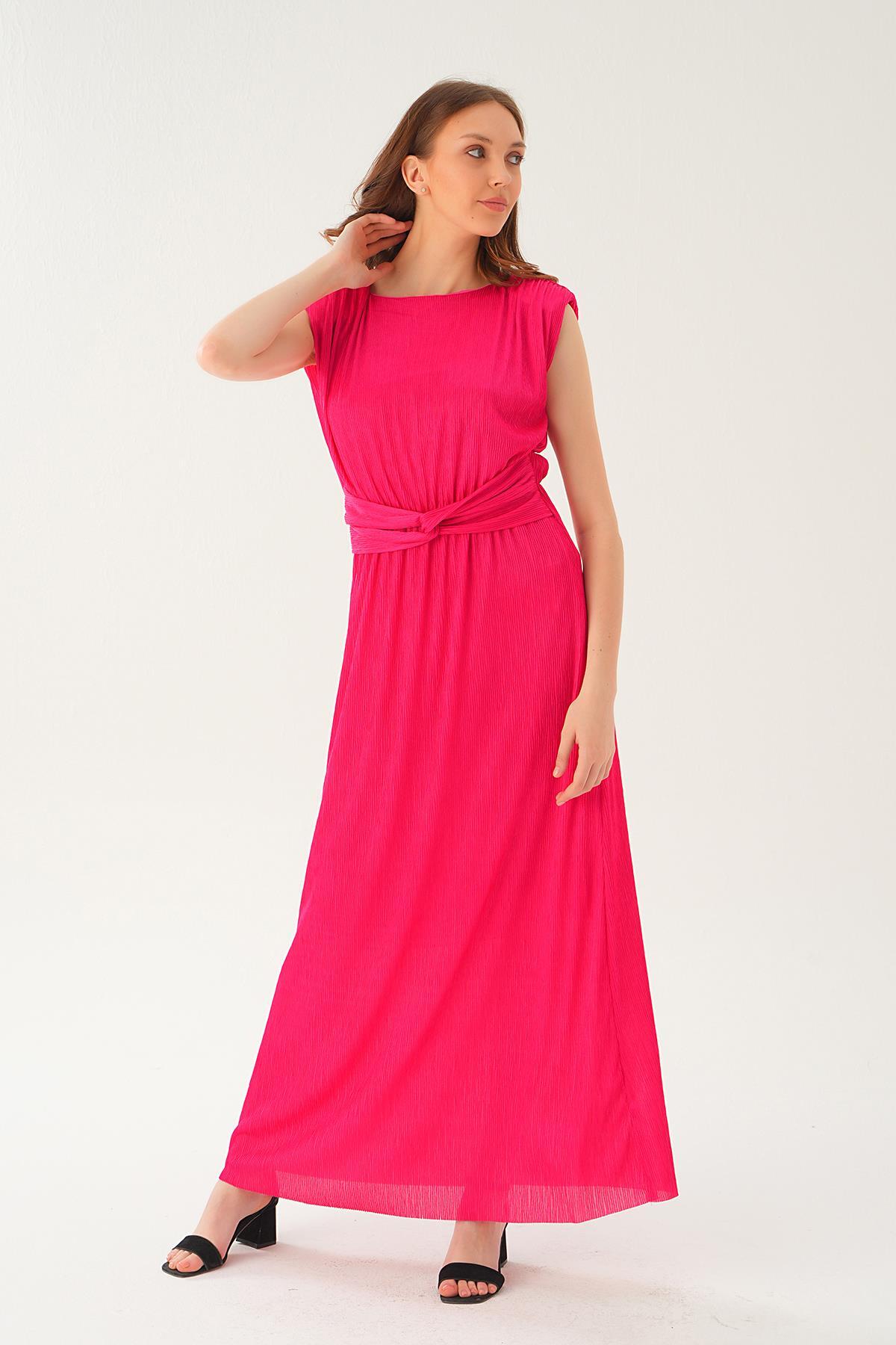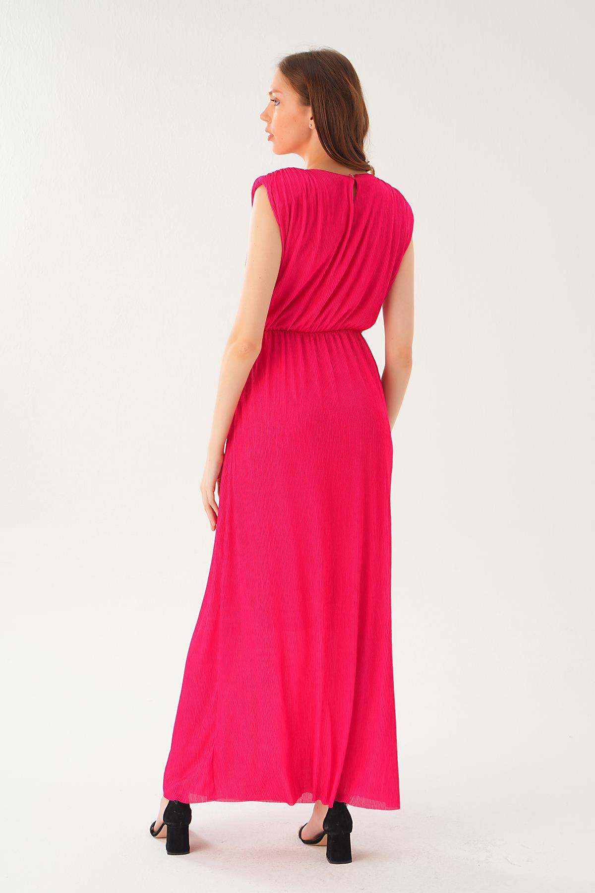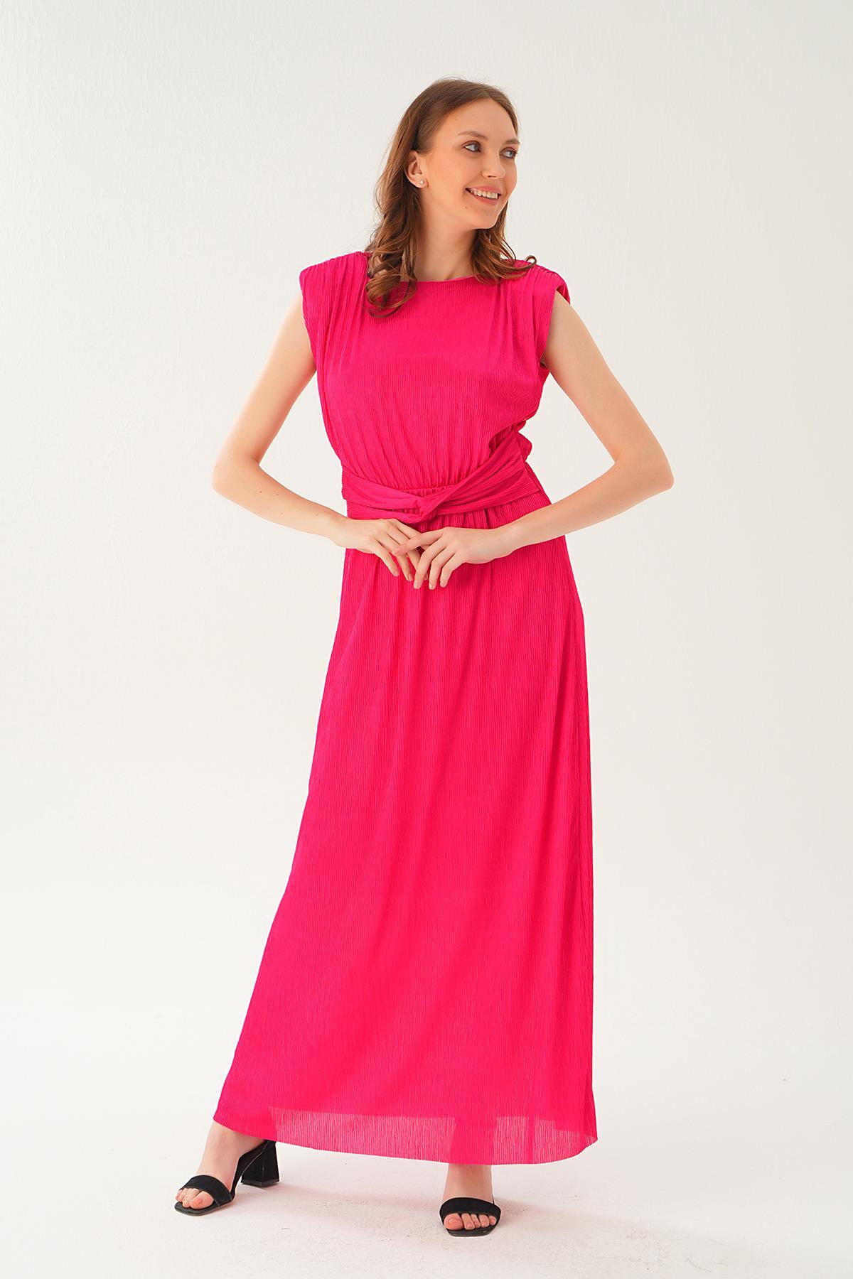 Fuşya Vatka Detay Uzun Elbise 2693