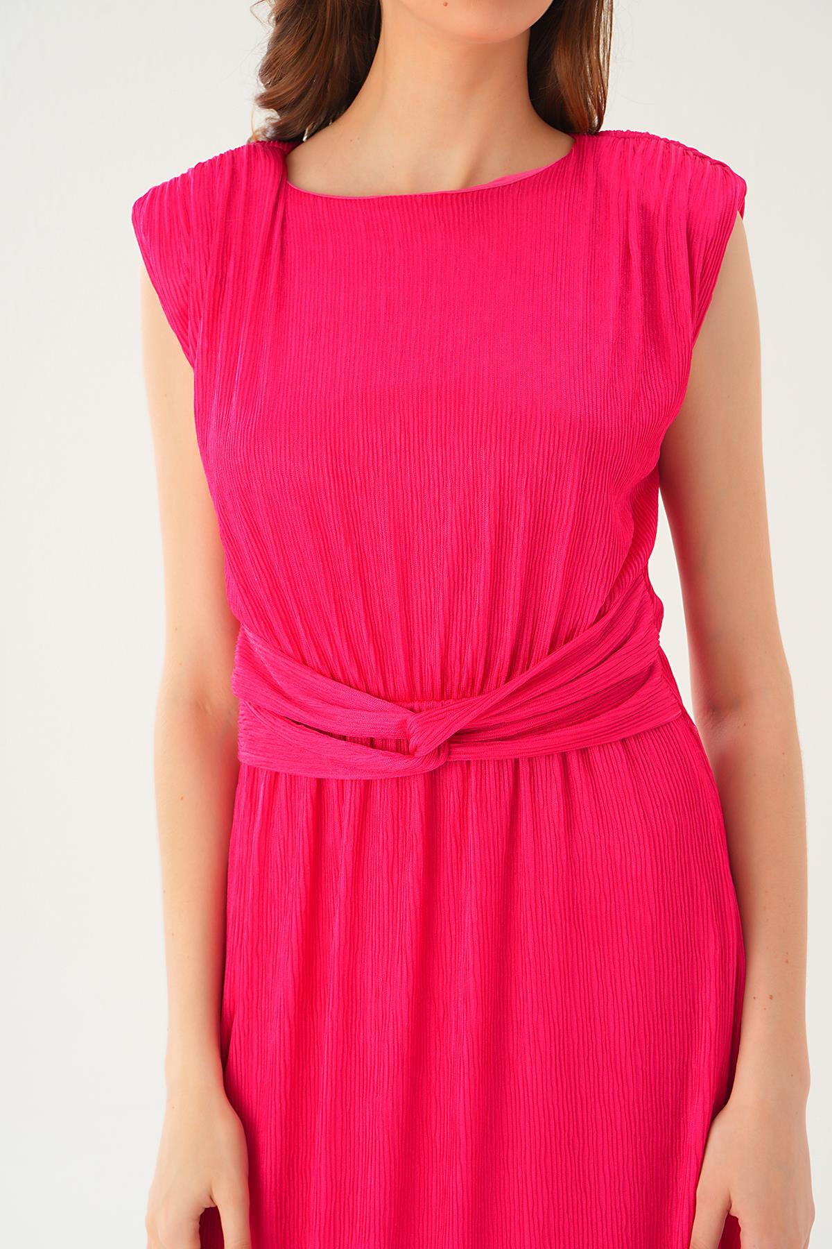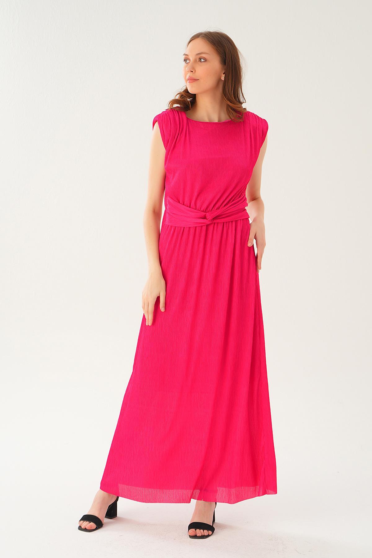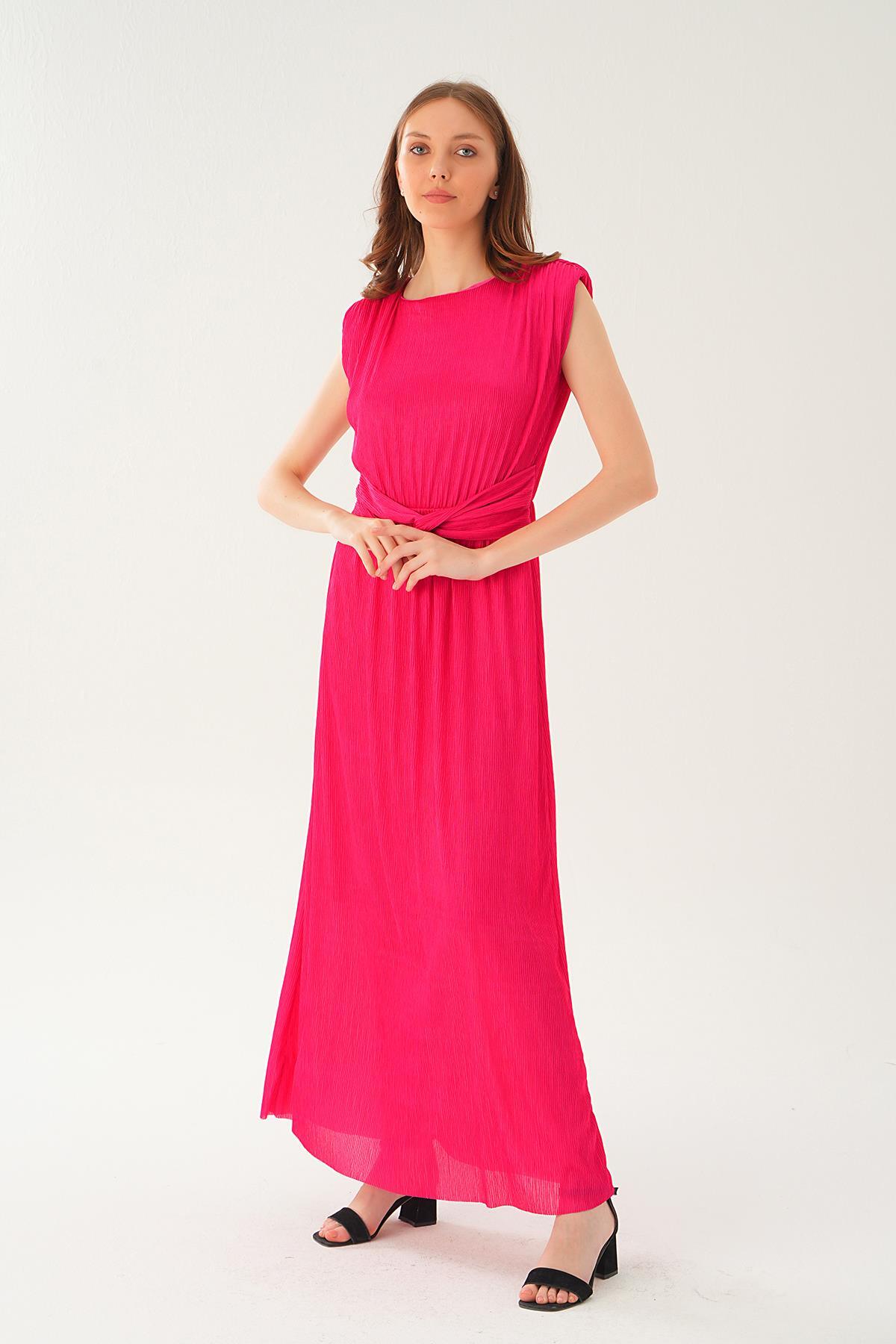 Fuşya Vatka Detay Uzun Elbise 2693
