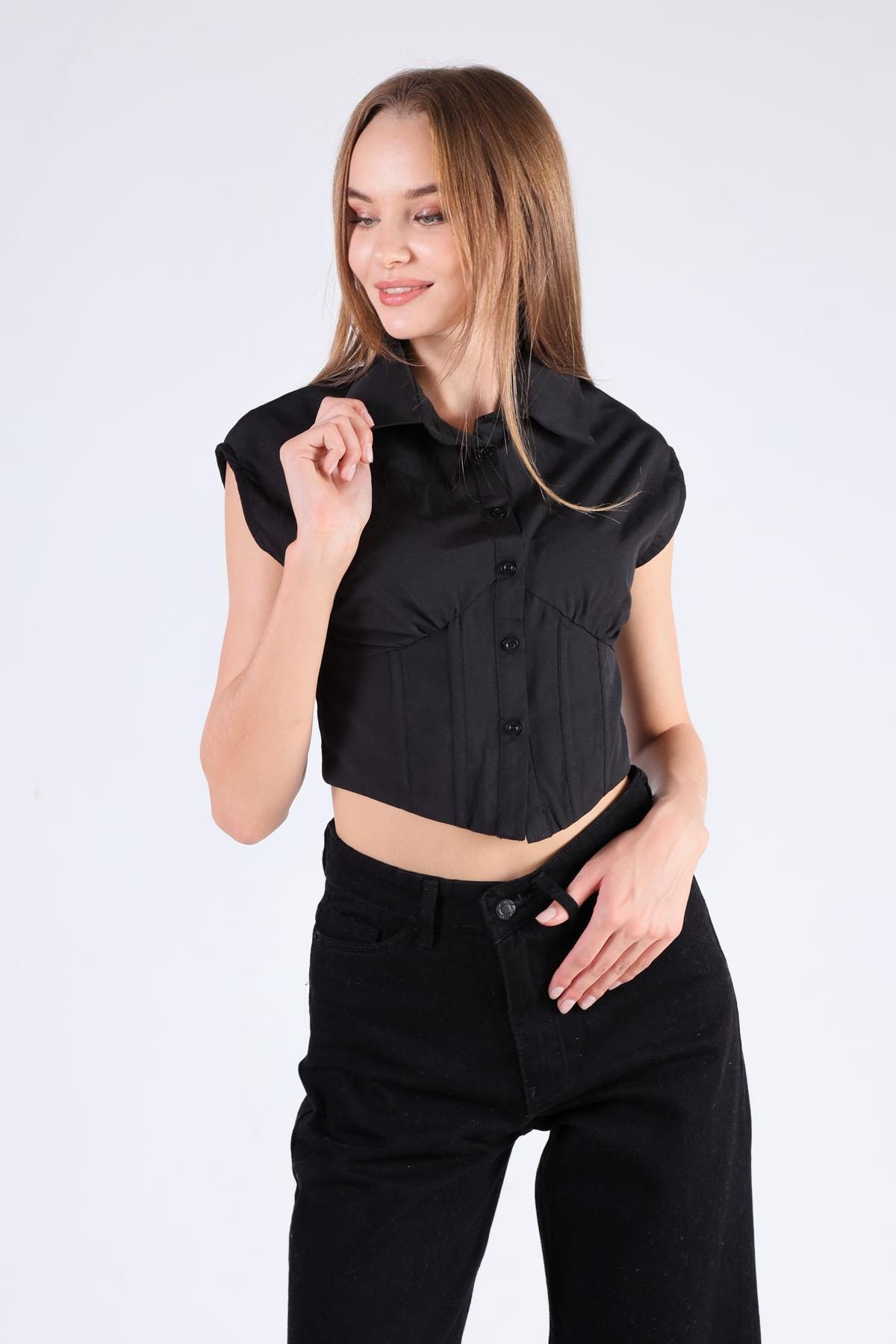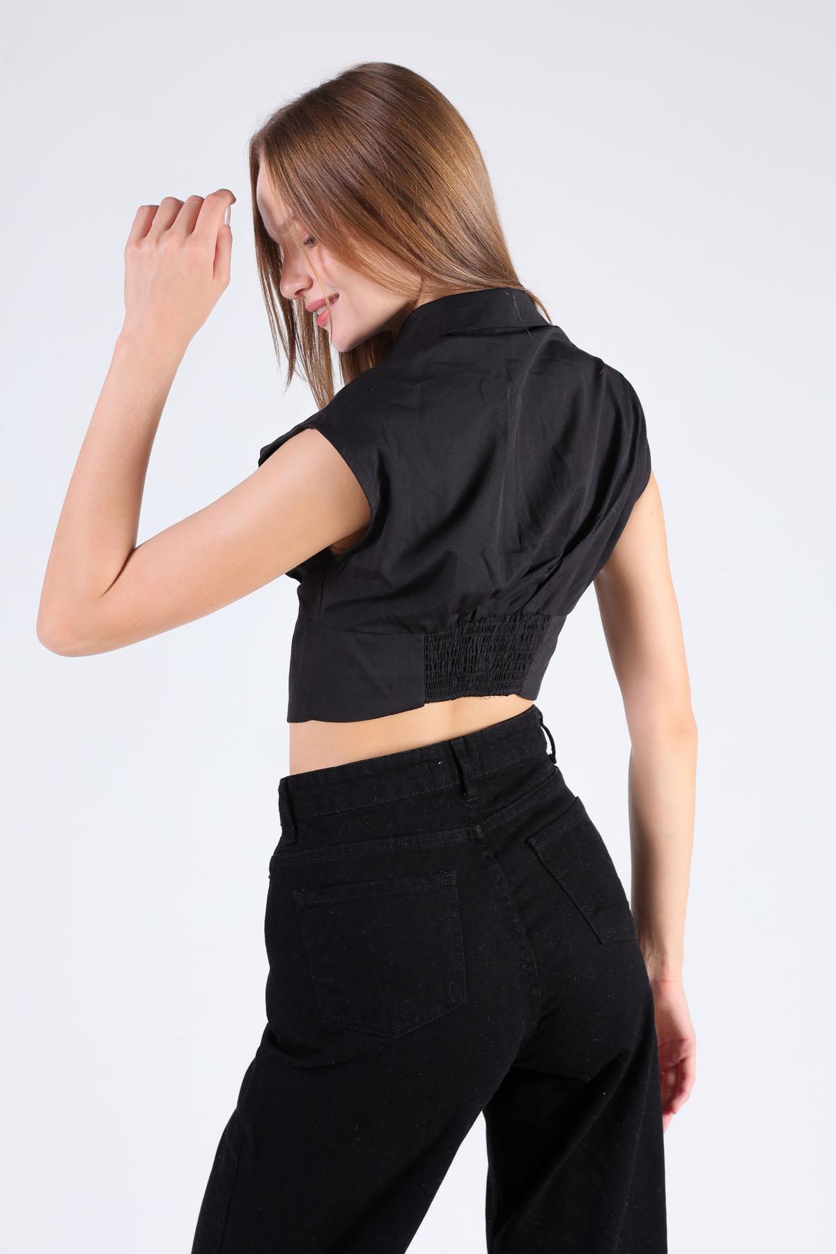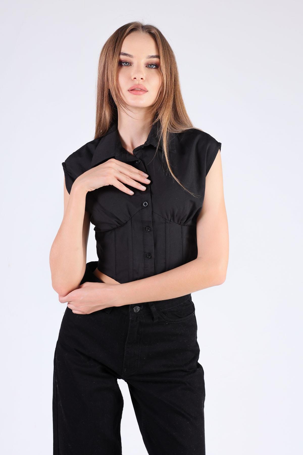 Siyah Balenli Sıfır Kol Gömlek 2742