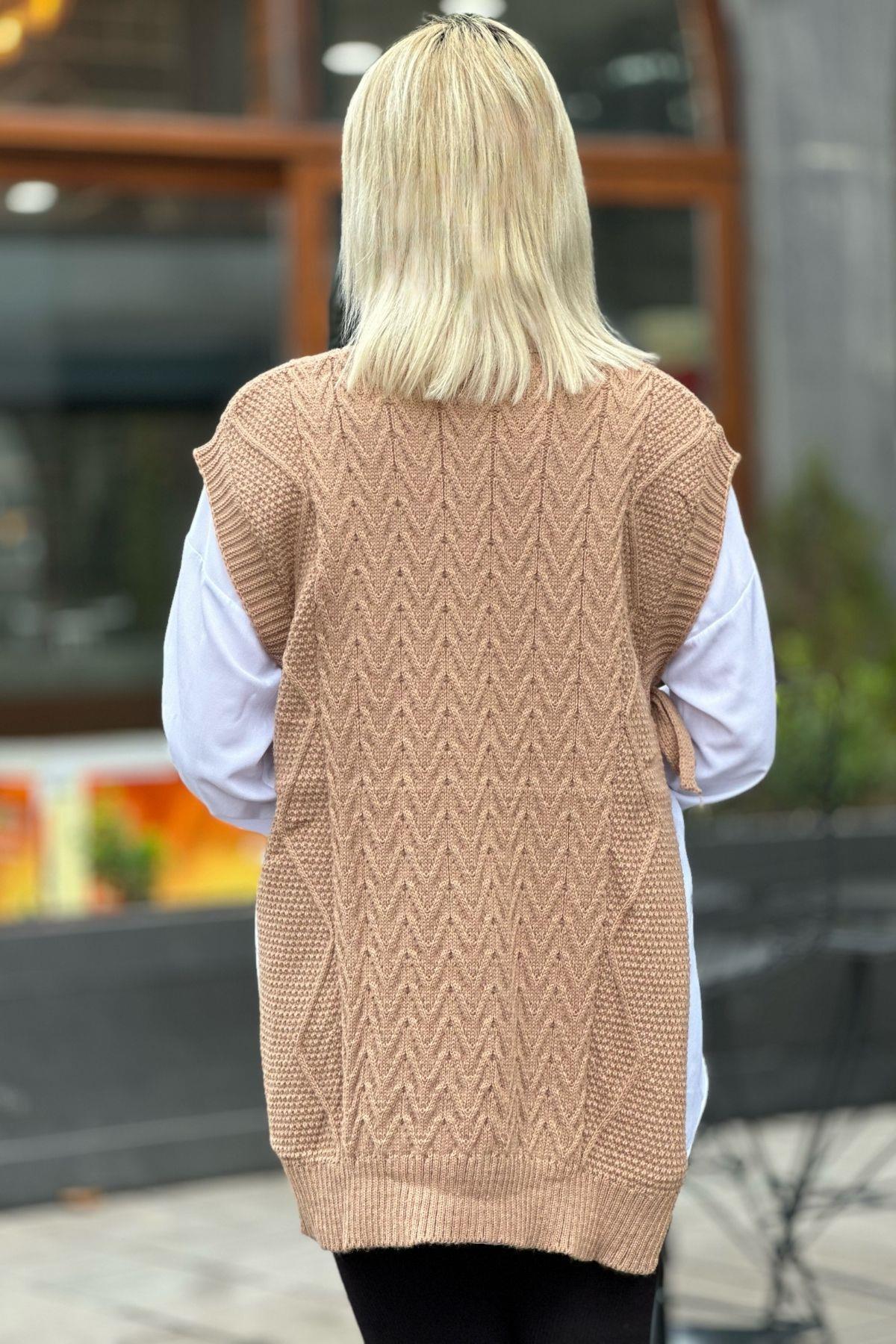 Camel Yan Bağlamalı Örgü Detay Süveter 280